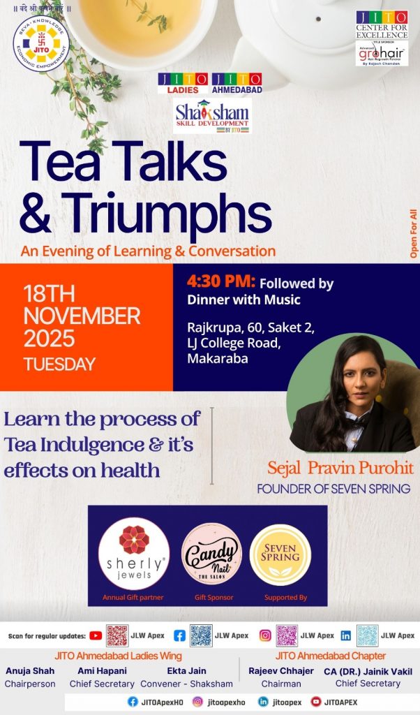 Tea Talks & Triumphs [Speaker – Sejal Pravin Purohit (Founder – Seven Spring)]- [by JLW]