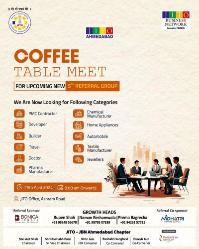 Any Jain who is entrepreneur- businessmen and interested to join JBN are welcome to the coffee table meet.