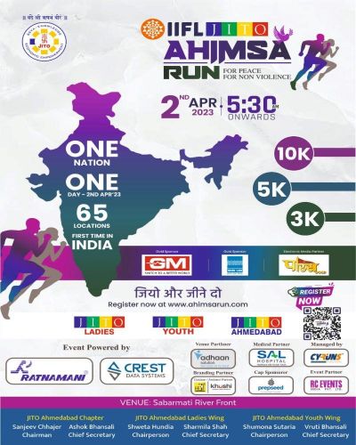 The most happening day of 2023 is here, Sunday 2nd April , the day of the much awaited “AHIMSA RUN” which is organised by JITO pan India and is open for all.