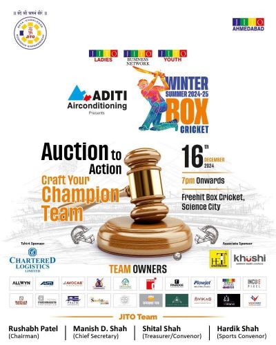 Get ready with all the excitement to take the action to witness the energetic auction of more than 200 players for the most awaited JITO AHMEDABAD BOX CRICKET LEAGUE 2024-25 WINTER EDITION🏏🏆