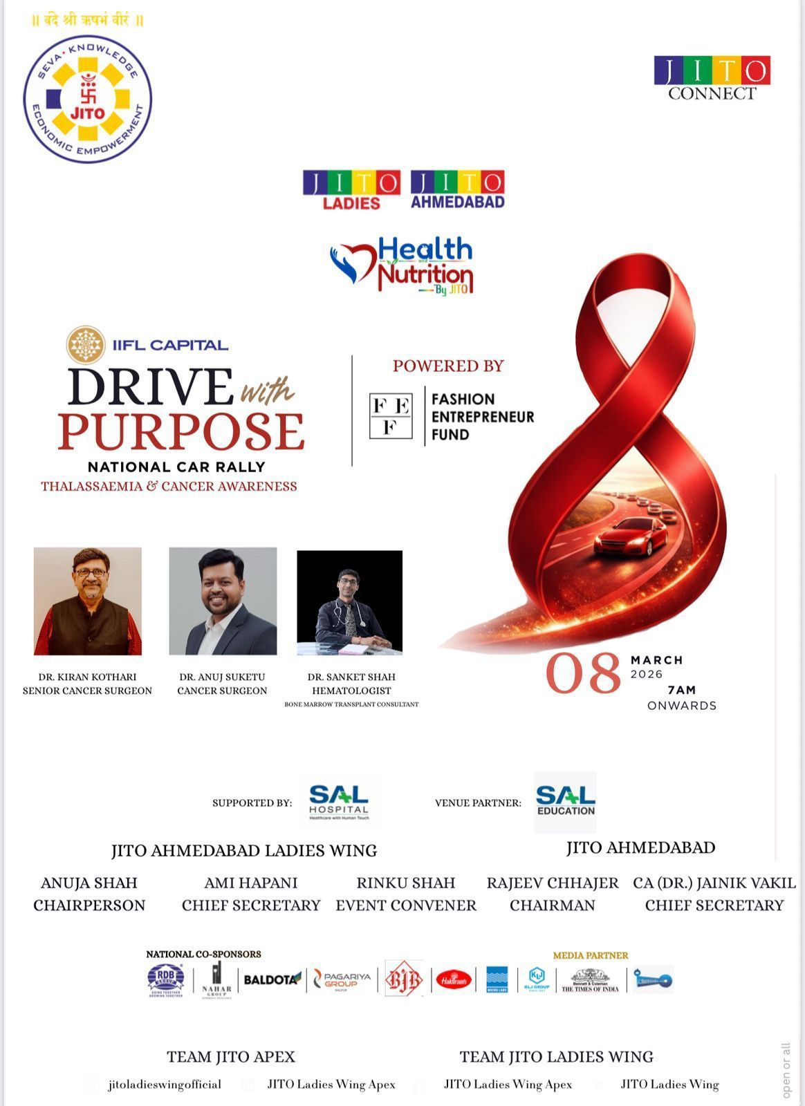 JITO Ahmedabad proudly presents Drive with Purpose, a National Car Rally dedicated to spreading awareness about Thalassaemia and Cancer. This meaningful initiative brings together compassionate hearts and responsible citizens to drive for a cause that truly matters.