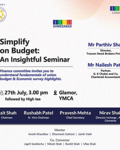 An insightful seminar on ‘Simplify on Budget’ by experts Mr. Parthiv Shah Director, Trackom Stock Brokers and Mr. Nailesh Patel Partner, G. K. Choksi & Co.