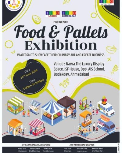 🛍️✨ Join us for the Food & Pallets Exhibition by our JLW members, on June 22nd from 1:00 PM to 8:00 PM at Nayra The Luxury Display Space, Bodakdev, Ahmedabad! Let’s celebrate culinary art and business together! 🌟🥘