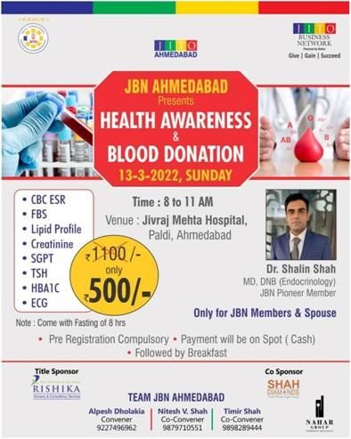 Full body Check up with Blood Donation JBN Ahmedabad takes the initiative of Full Body Check and supports social cause of Blood donation for members of it’s both Chapters Pioneer and Dreamers..!