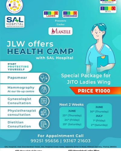 JITO Ladies wing & SAL hospital offers special health package @ Rs. 1000 including ,