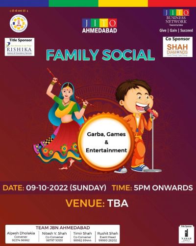 It’s time for Fun , Games & Garba. Yes we are having a family social with whole JBN Family on 9/10/2022 (Sunday) @5PM.