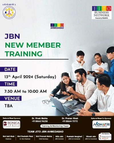 Gain insights into providing authentic testimonials, passing genuine references, distinguishing between outside and inside references, and much more! Date: 13th April Time: 7:30 am onwards Venue: Radisson blue, Panchvati Secure your spot now! This training is essential for new members (who have joined in last 9-10 months), providing an optimal environment for cross-chapter networking opportunities. Let’s unite and ignite the spirit of JBN together! Warm regards, Training & Mentoring Heads