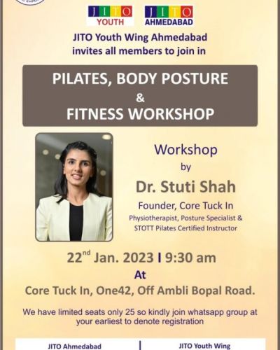 Members are cordially invited to a lively Pilates, Body Posture & Fitness Workshop by Dr. Stuti Shah! 💪🏼 🥳