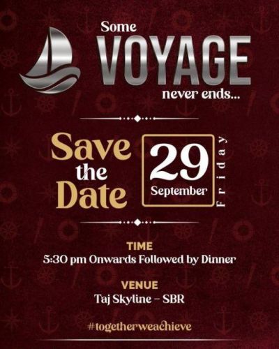 Get ready for an unforgettable evening at the luxurious Taj Skyline as we set sail on the “VOYAGE” of appreciation and camaraderie!