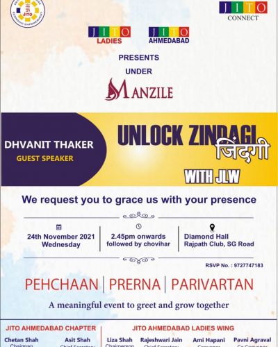 Jito Ladies Wing feels delighted to invite you for a grand rendezvous on the 24th November 2021 at 2:45 noon to spend time meeting, greeting and bonding with co-members and sharing the spotlight with none other than our favourite Dhvanit 🎶