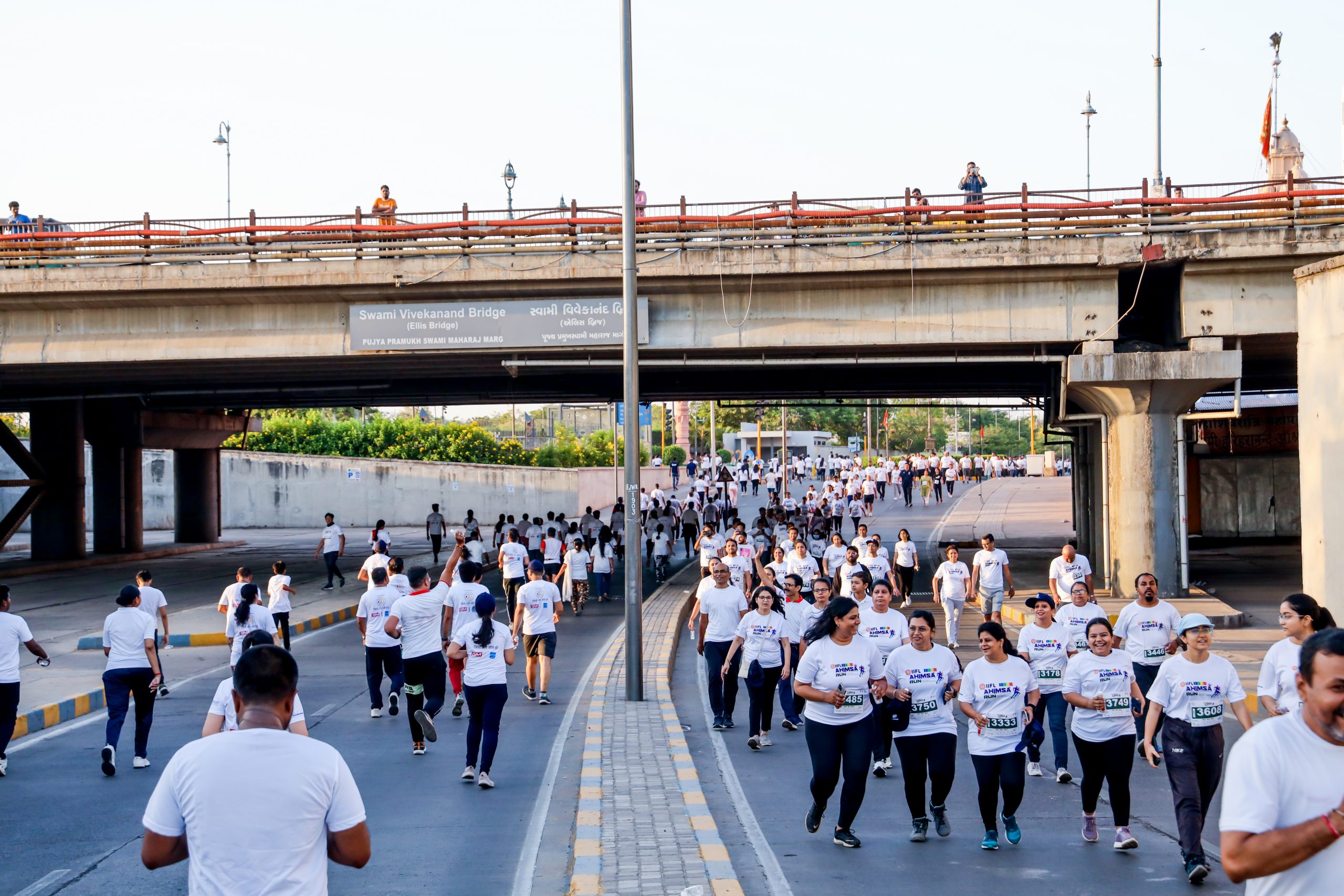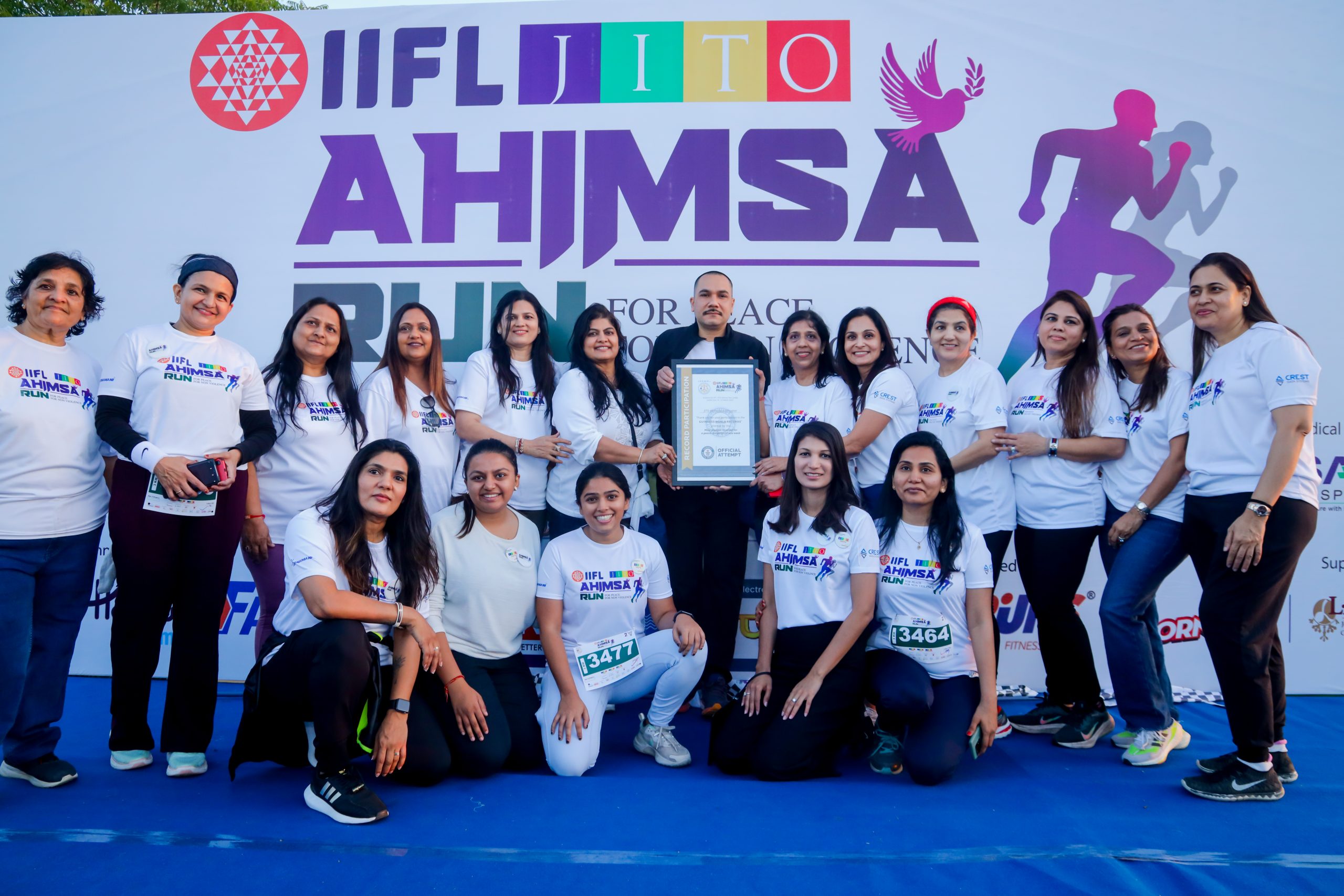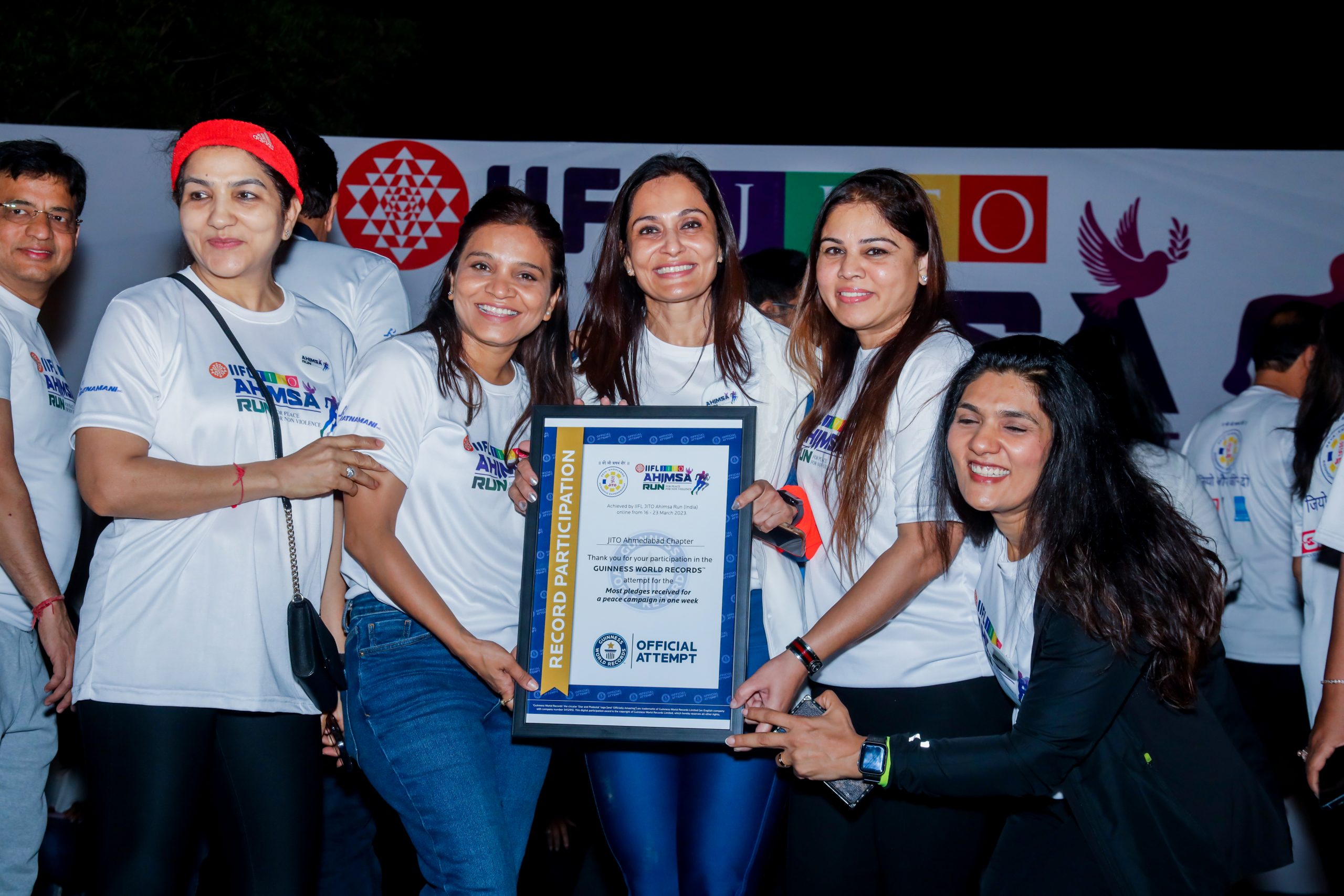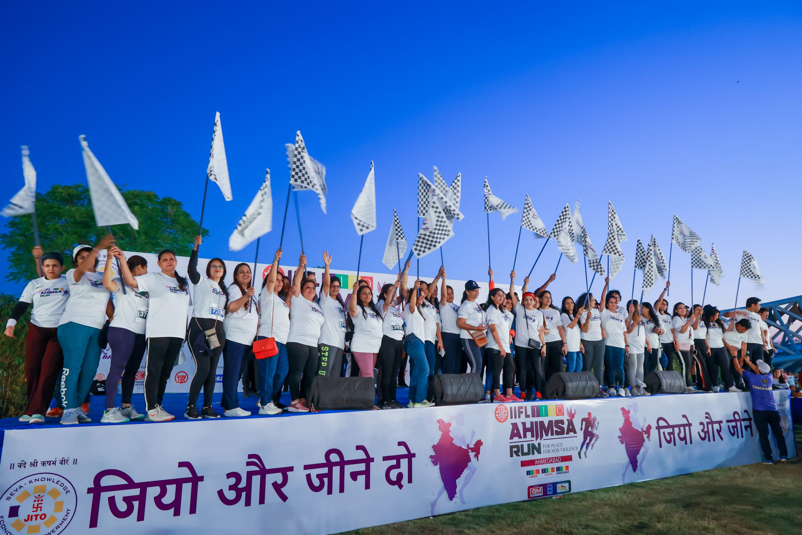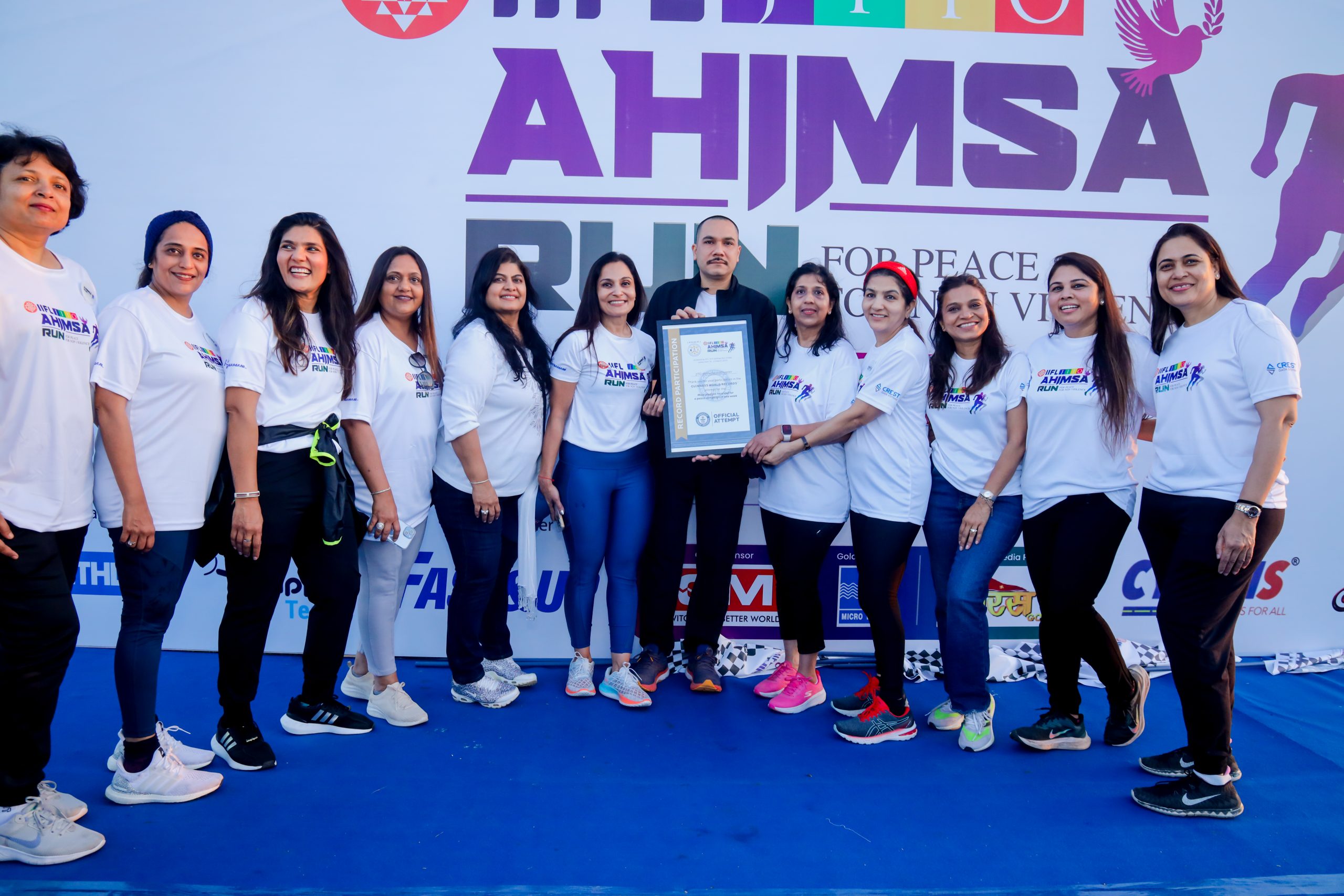Ahimsa run was organised by JITO PAN INDIA. Ahimsa run was held on 2nd April at 5.30 a.m.by JITO Ladies Wing at Riverfront in Ahmedabad. 4200 people participated in this run in Ahmedabad chapter.The dignitaries present were Ganpatraj ji Chowdhary, Himanshubhai Shah, Hemantbhai Shah, Kushalji Bhansali, Amitji Jain, Jigishbhai Shah, Niravbhai Shah, Chetanbhai Shah, Sanjeev ji Chajjer, Asitbhai Shah, Ashokbhai Bhansali and Rajeev ji Chajjer.This run created history by creating a Guiness World record for the highest no of pledges taken in a week. There were 3 categories in the run -3, 5and 10 km run. The run started with warm up activities of Zumba and dancing to build up every one’s tempo and enthusiasm.Objective -The objective of this run was to create awareness for a better world by spreading the core message of nonviolence and peace which is the basis and crux of Jainism.Takeaway- To make a change one has to start from oneself and that’s what this run did by setting an example of unity, love, peace, harmony and respect for everyone by making a change for the better.