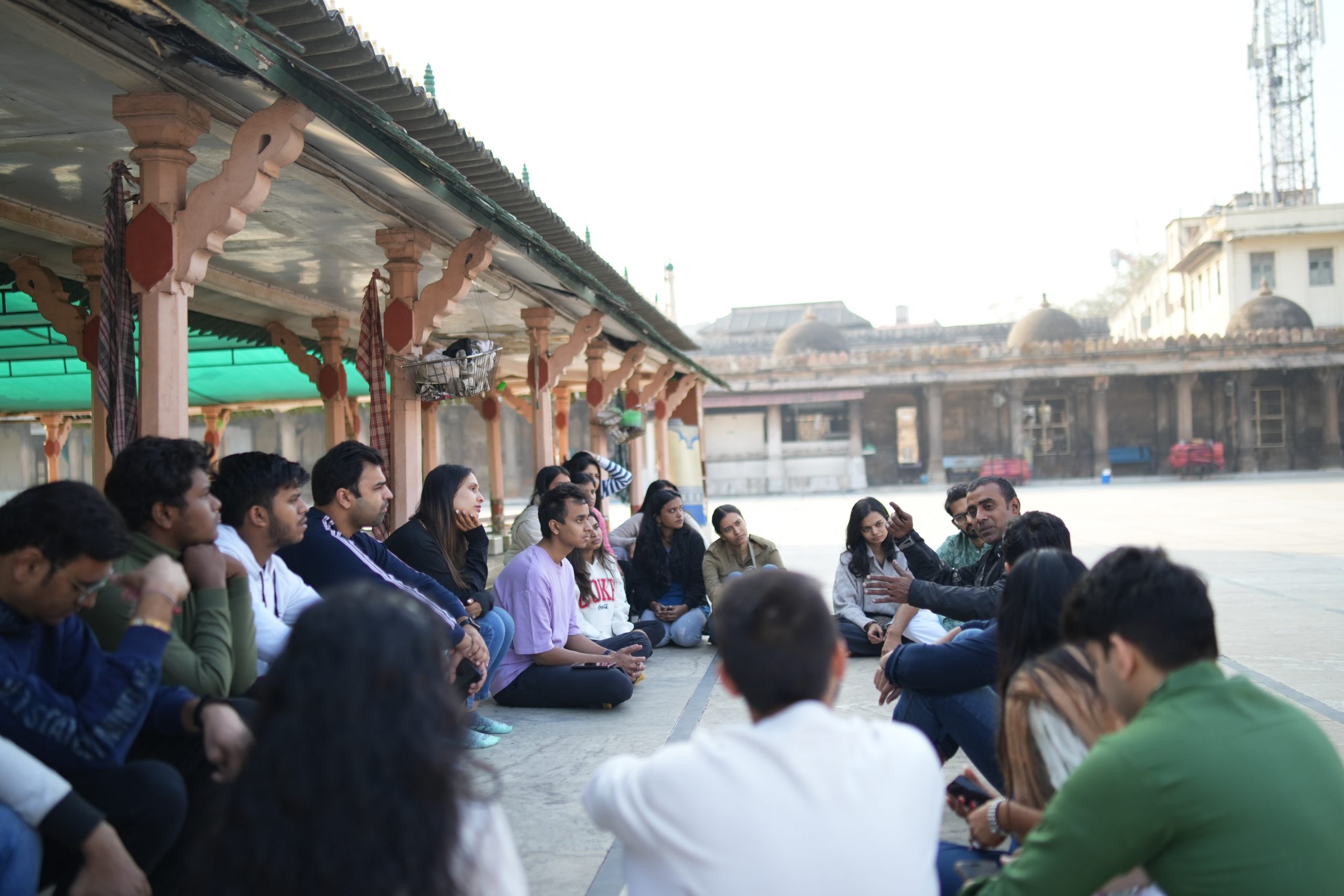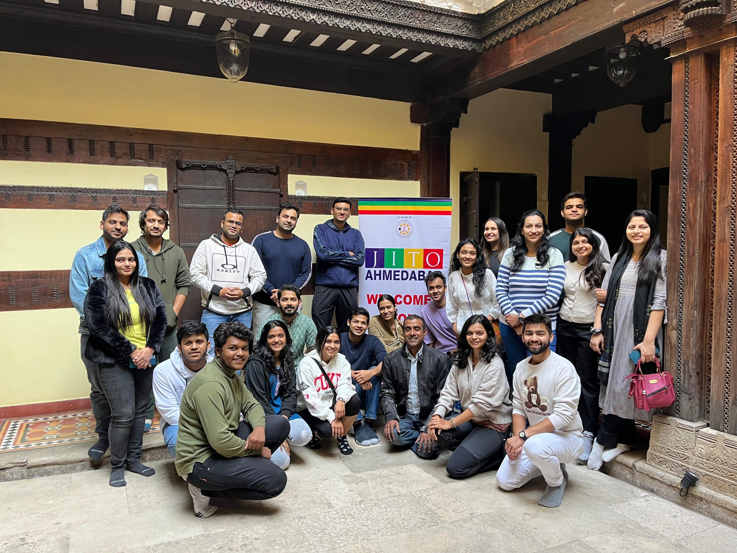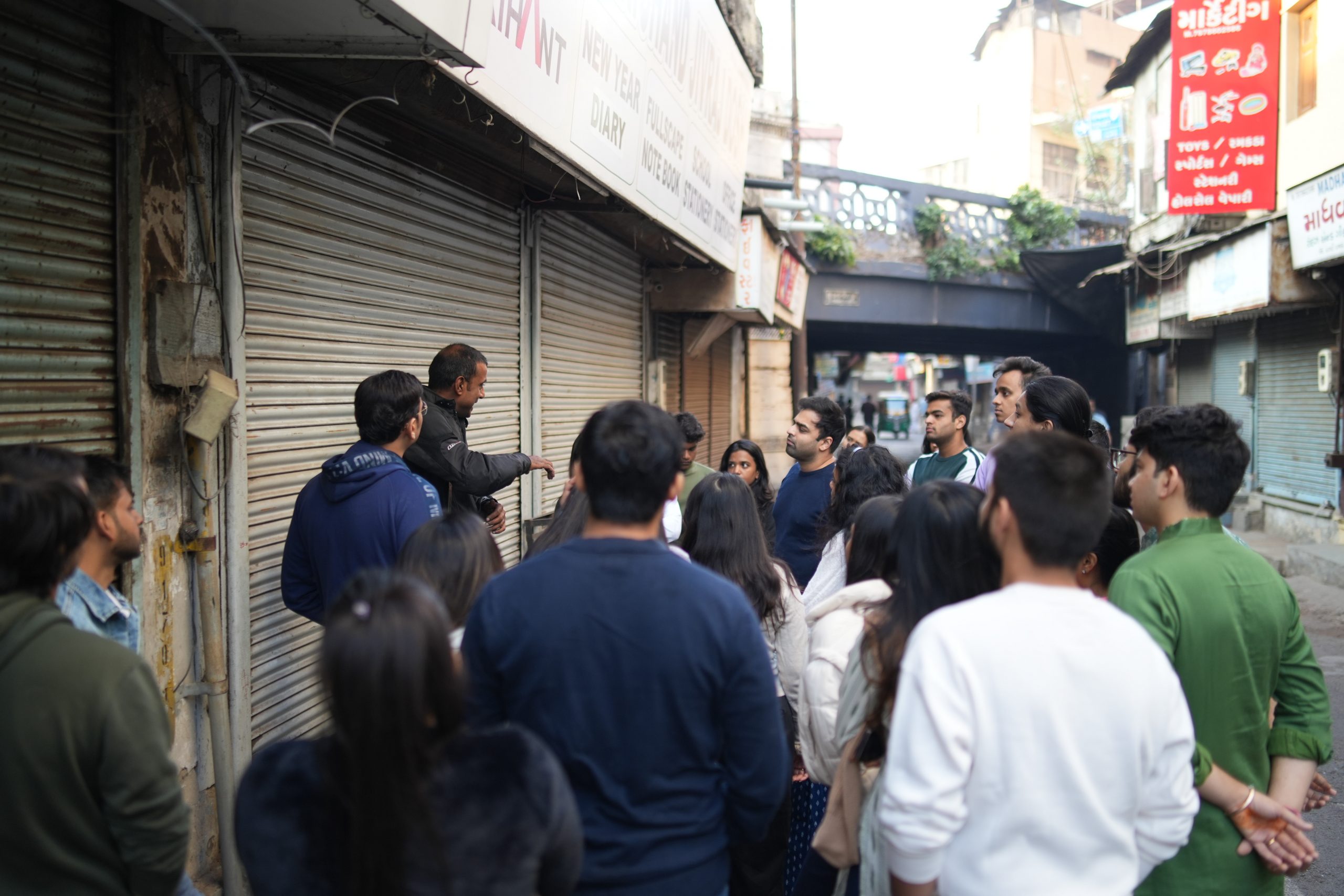 On 17th December, the Youth Wing organised a Guided Walk + Breakfast in the iconic gullies of Old Amdavad City. The event, Ateet Ki Subah, brought 35 energetic members together on a chilly winter morning, as they deep-dived into Ahmedabad’s cultural roots and explored its History, Architecture, Culture, Art, and Lifestyles.The walk was led by a highly experienced guide, Mr. Nirav Panchal, who infused each step with stories and insights that brought the city’s cultural tapestry vividly to life. The group visited several heritage monuments, namely Dalpatram Chowk, Kala Ram Mandir, Secret Passage, Shanthinath Pol, Ashtapad Derasar, Harkunwar Sethani Ni Haveli, Manek Chowk, Rani Ka Hajira, Jama Masjid, & Old Stock Exchange Building.The 2 hour walk finally concluded at Deewanji Ni Haveli with an all-included scrumptious & local breakfast spread of Methi Gota, Fafda, Jalebi, & Khaman! As a token of appreciation, all participants were gifted beautiful, hand sketched postcards with drawings of significant Ahmedabad monuments likeHutheesingh Jain Temple, Bhadra Fort, Jhulta Minar etc. on them.We received wonderful post-event feedback, concluding that everyone looks forward to more such informative & engaging experiences in the Youth Wing!