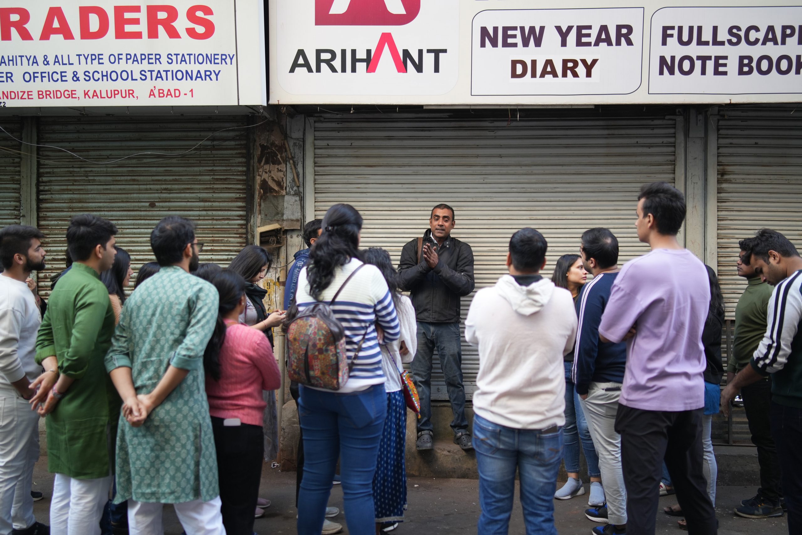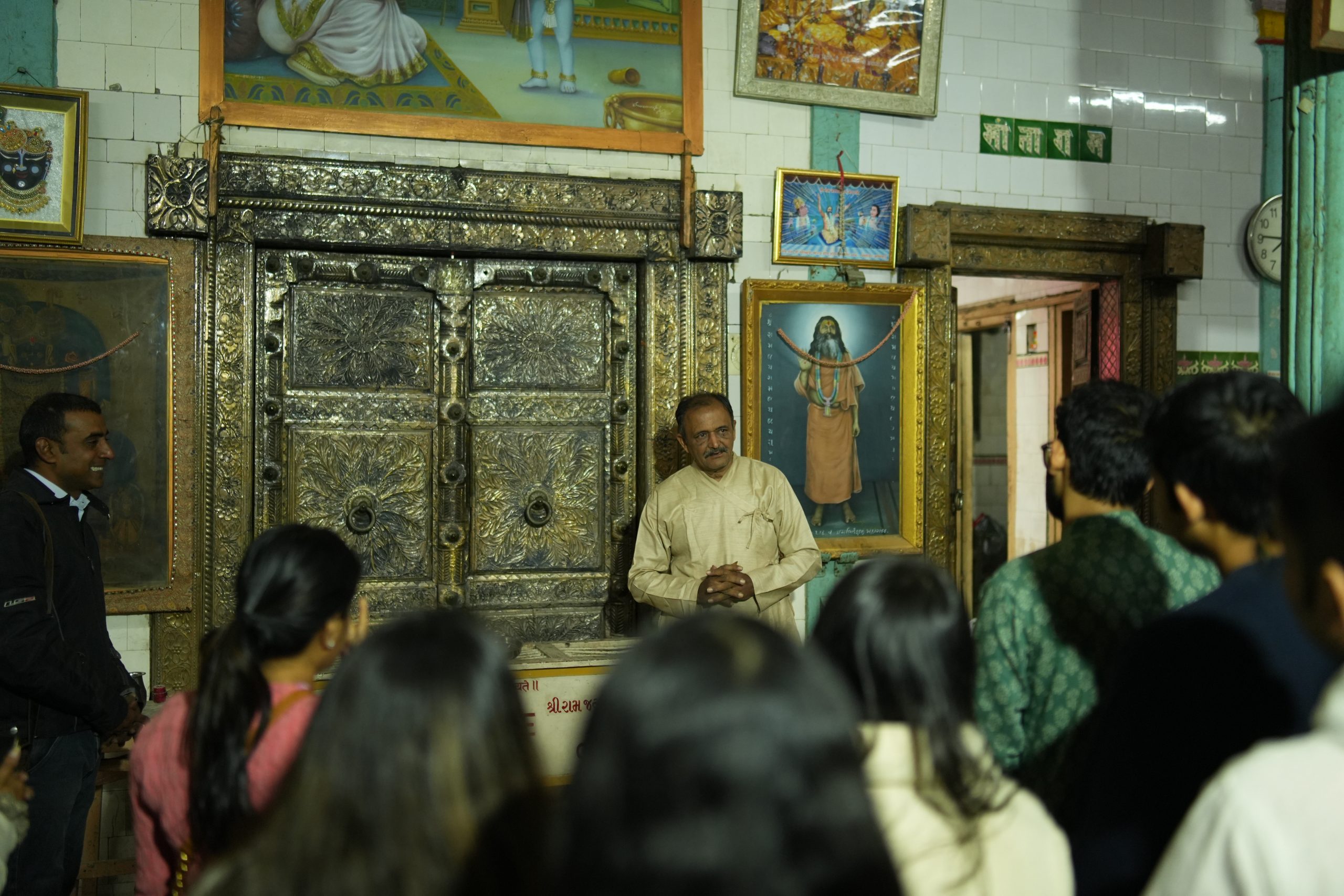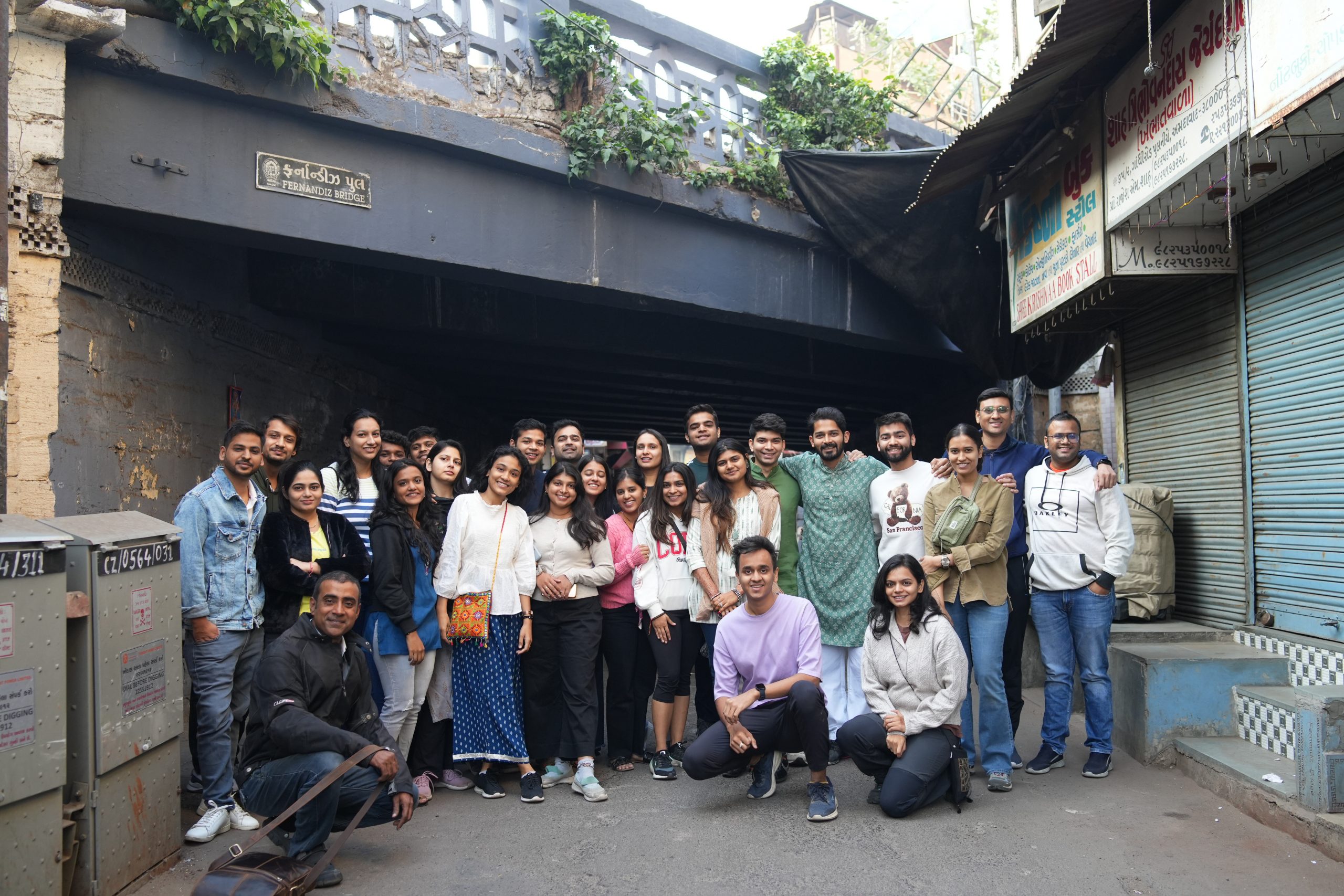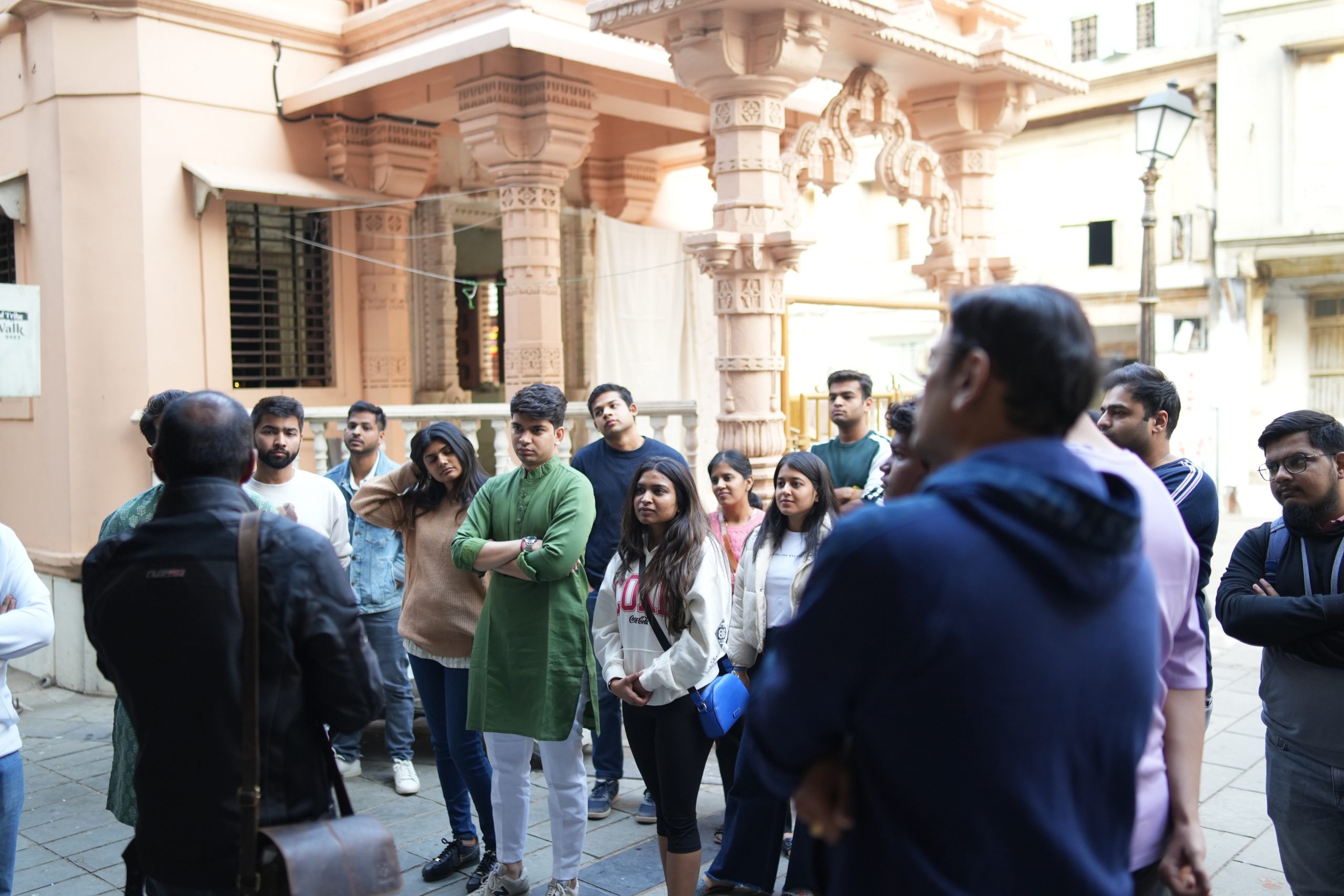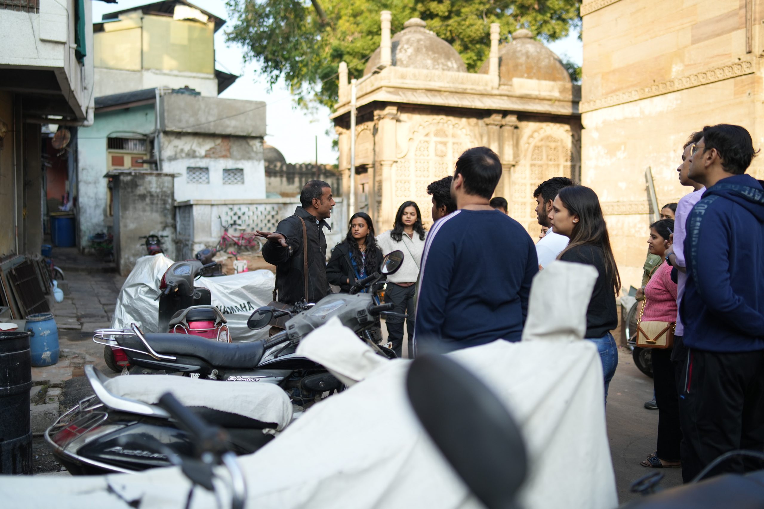 The walk was led by a highly experienced guide, Mr. Nirav Panchal, who infused each step with stories and insights that brought the city’s cultural tapestry vividly to life. The group visited several heritage monuments, namely Dalpatram Chowk, Kala Ram Mandir, Secret Passage, Shanthinath Pol, Ashtapad Derasar, Harkunwar Sethani Ni Haveli, Manek Chowk, Rani Ka Hajira, Jama Masjid, & Old Stock Exchange Building.