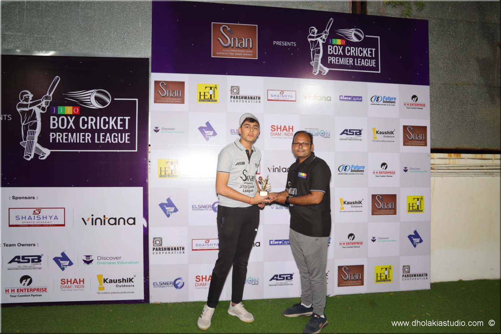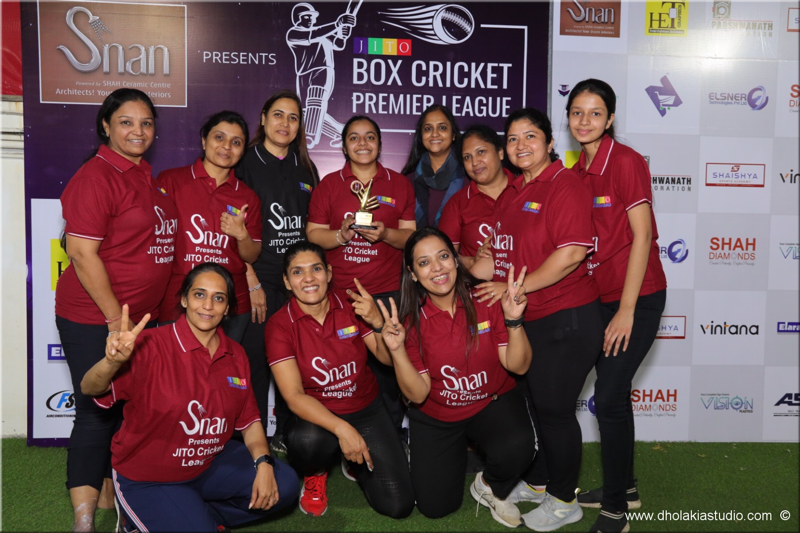 Convener ShriShitalbhaiShah accepted the responsibility of Box Cricket League and with the support of Youth wing led byRushabhShah andAayushVoraand JBN led byKushalDamani,MohitJain andIshanShah it was played for 5 days from 2nd January to 6th January 2022 atShaishyaAcademy.12 teams of Males and 4 teams of Females had enjoyed playing Box Cricket with full excitement and power puffed energy. A National level coach was hired to guide female players and train them for the match. Many practice sessions were conducted before the League matches and teams were made on the basis of their performance.Sponsors wereSnan,Shaishya,Parshwanath, Het andVinatana.Snanwas the Title Sponsor of the entire event due to which we received more than 140 registrations. JA takes this opportunity to thankSnanfor the unwavering support and guidance and we look forward to associating with it in future events too. For a nonprofit organisation like JITO, association with generous sponsors likeSnanmeans a lot to us.Winners and best players were felicitated with Trophies and Cups. JA is very thankful to all the sponsors and team owners of the event. The match scores were live onhttps://cricheroes.in/The matches were followed by enticing dinner every day. Life time memories were clicked by a professional photographer. Selfitis overloaded the social media with loads of images and clips.