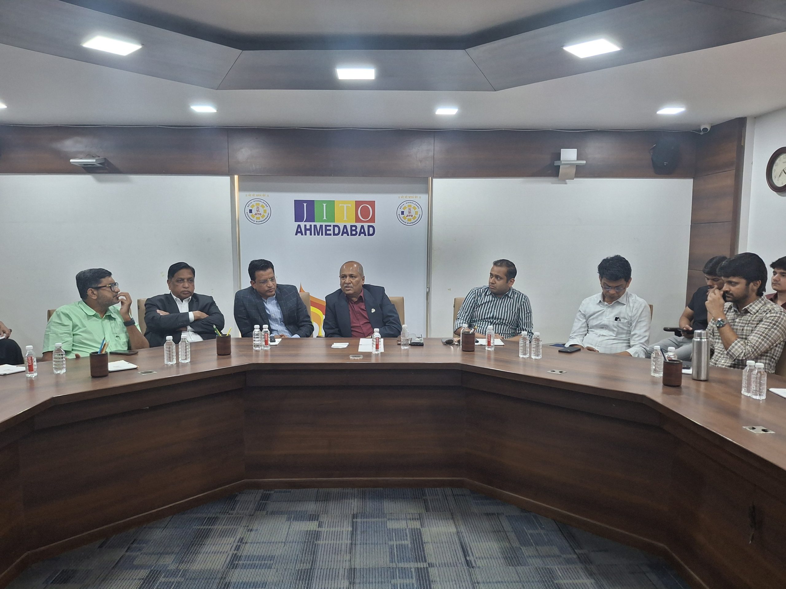 The JITO Ahmedabad Chapter organized a highly successful interactive session with Mr. Yashwant ji Lodha, FCP member from JITO Indonesia, at the JITO Ahmedabad office on 12th December 2025. The session drew an overwhelming response from enthusiastic JITO members eager to explore business opportunities in Indonesia and expand their global connections under the leadership of Chairman Shri Rajeev ji Chhajer & Team. Mr. Lodha was felicitated with a memento and Chief Secretary Shri Jainik Vakil provided a brief introduction.