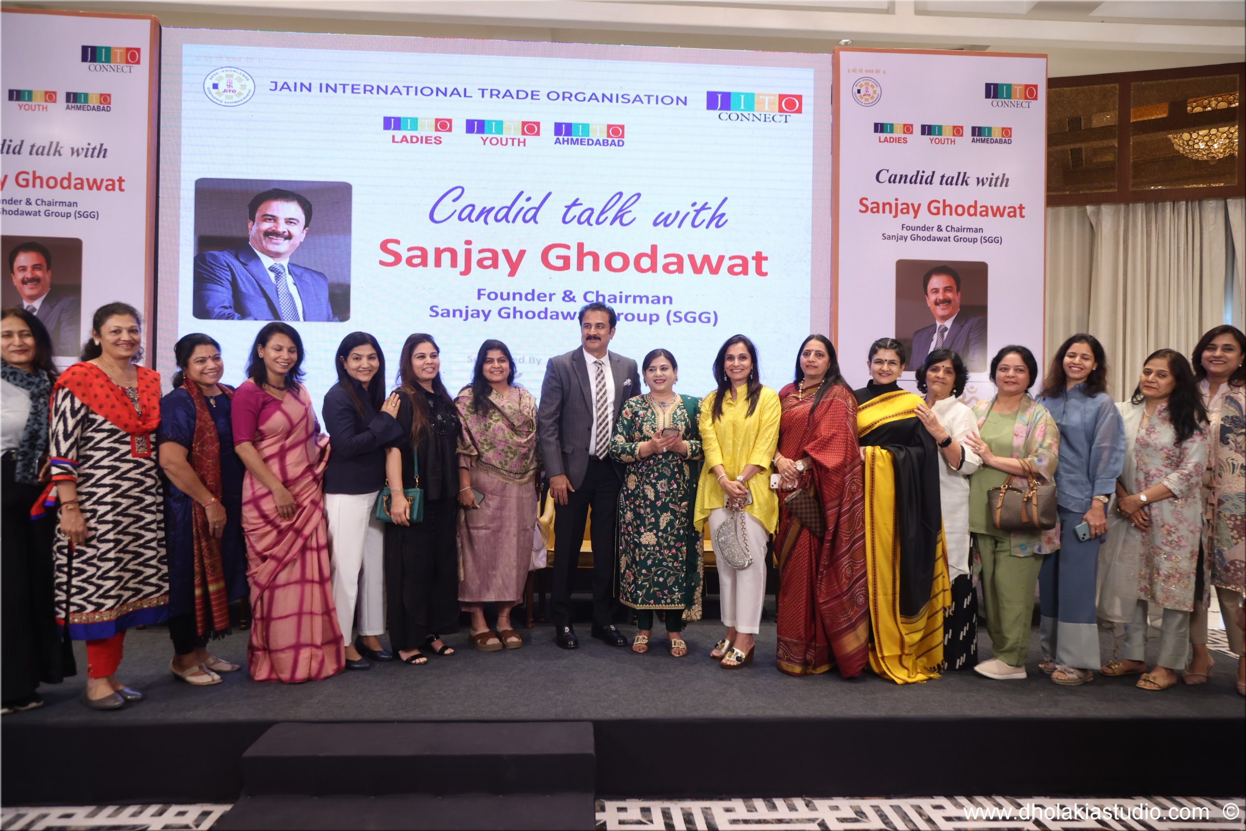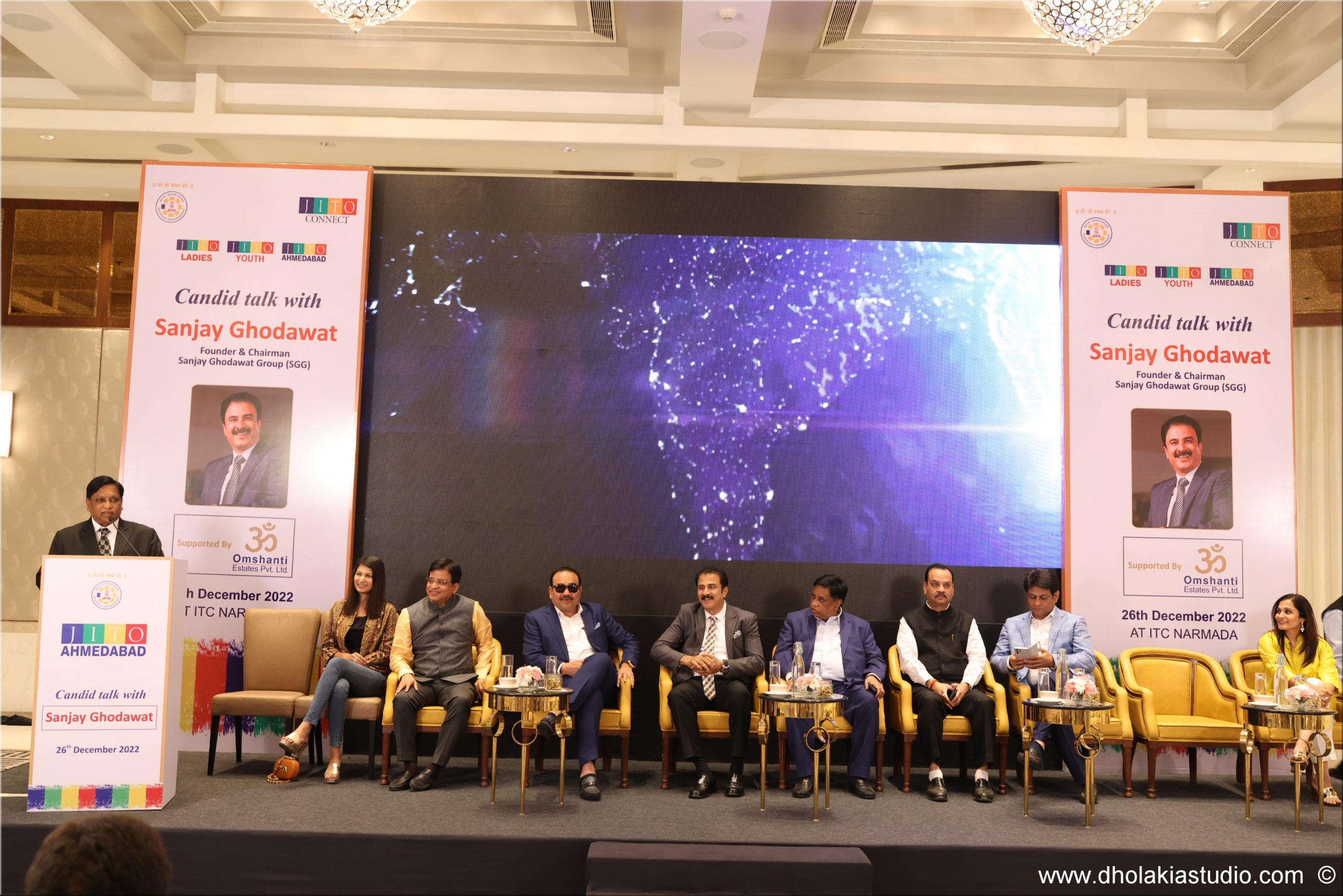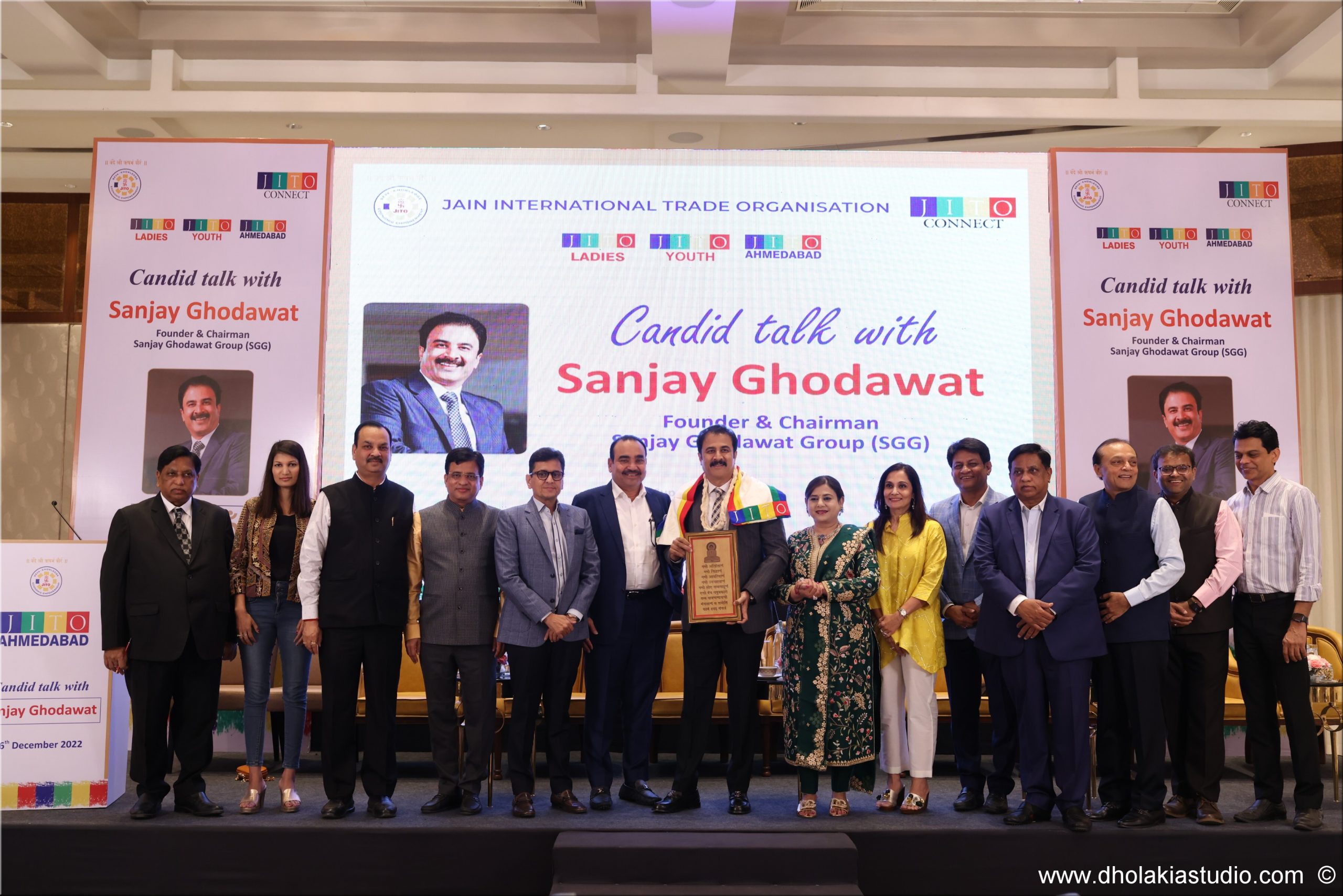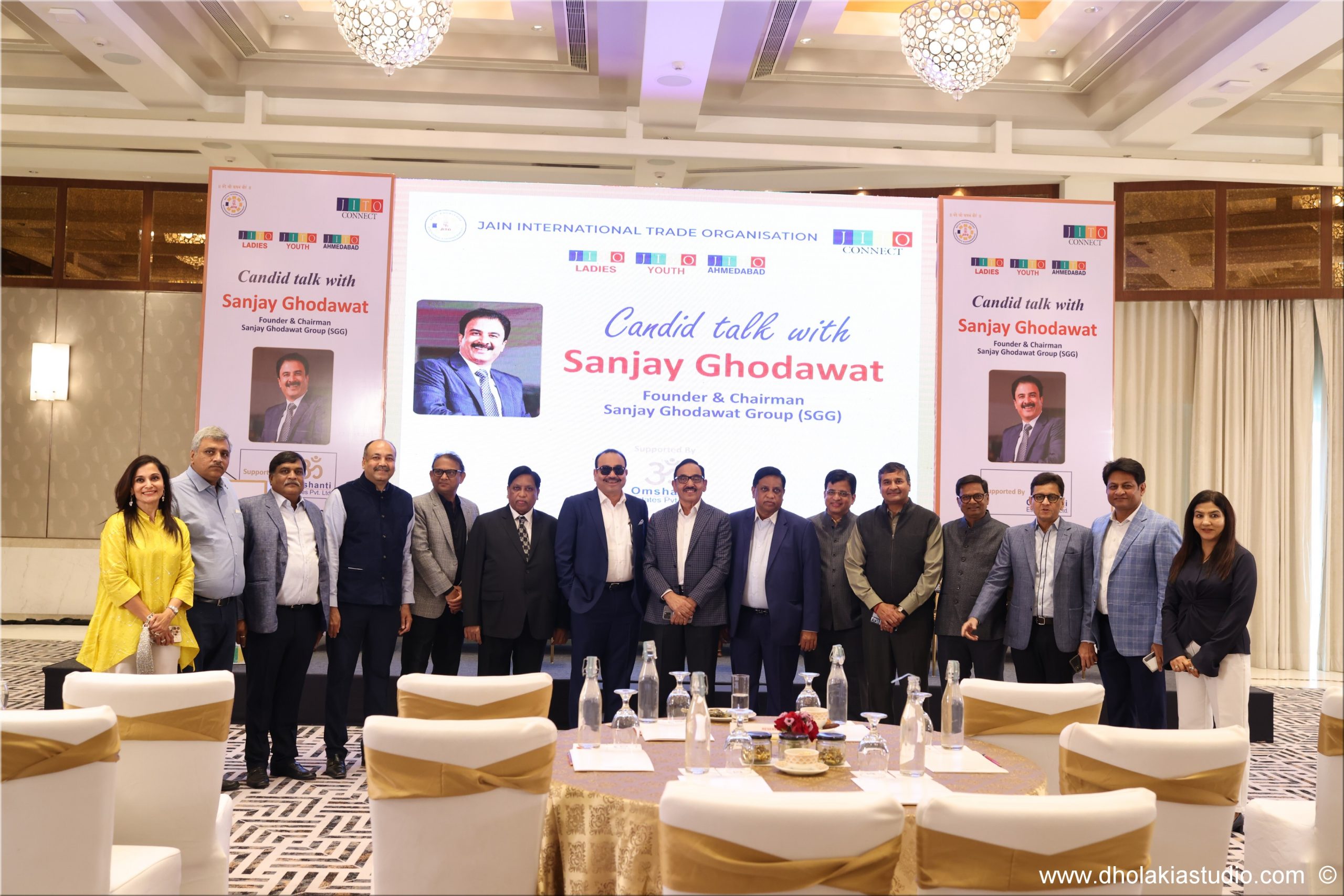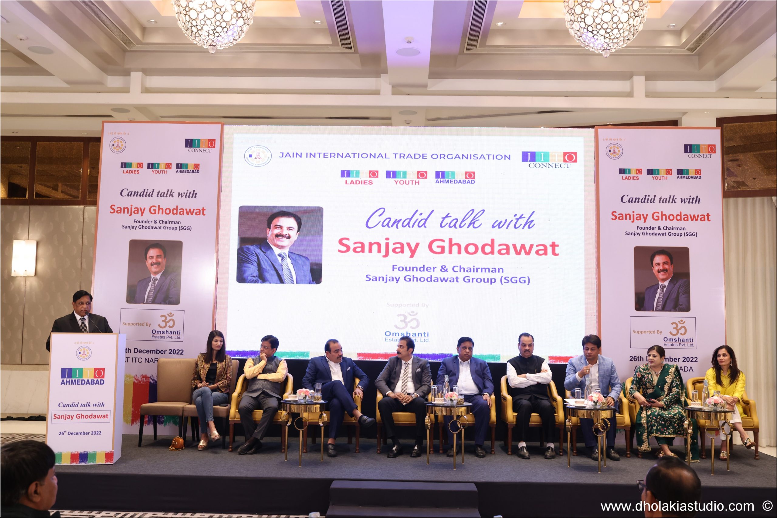 JITO Ahmedabad witnessed a grand success of one of its kind program, Candid talk with Sanjay Ghodawat (FCP member, JITO Kolhapur & Founder, SGG-one of the highest growing conglomerates), organised on 26thDecember 2022 at Hotel ITC Narmada. The event was convened by Vice Chairman Shri Rajeev Chhajer. Many JITO dignitaries like immediate Past Chairman Shri Ganpatraj Chowdahry, Apex Vice President Shri Kushal Bhansali, Apex Directors Shri Jigish Shah (JBN), Smt. Sushma Kanakaria (JIW Matrimony) and Shri Nirav Shah (JPoint), Zone Chairman Shri Amit Jain, managing committee members, office bearers and other JITO members remained present and graced the event.