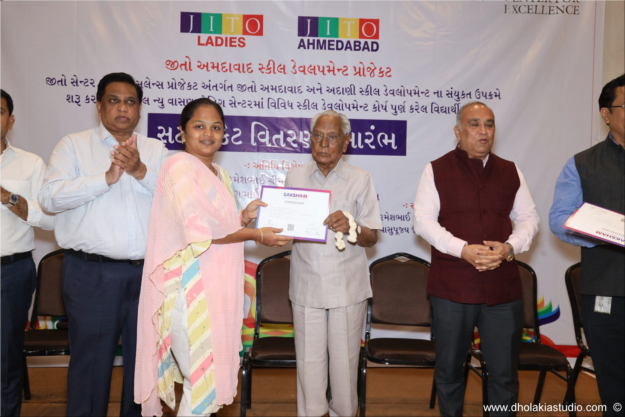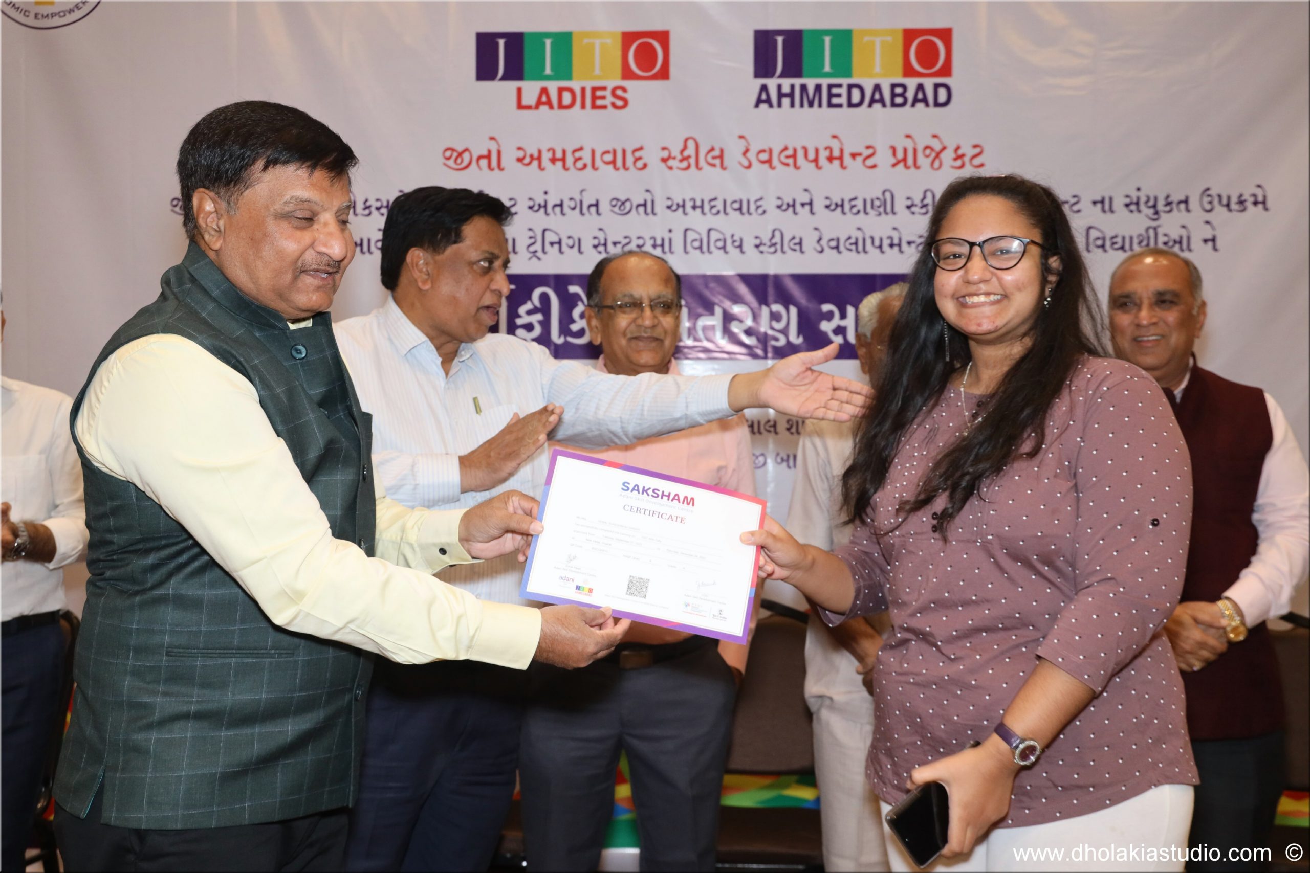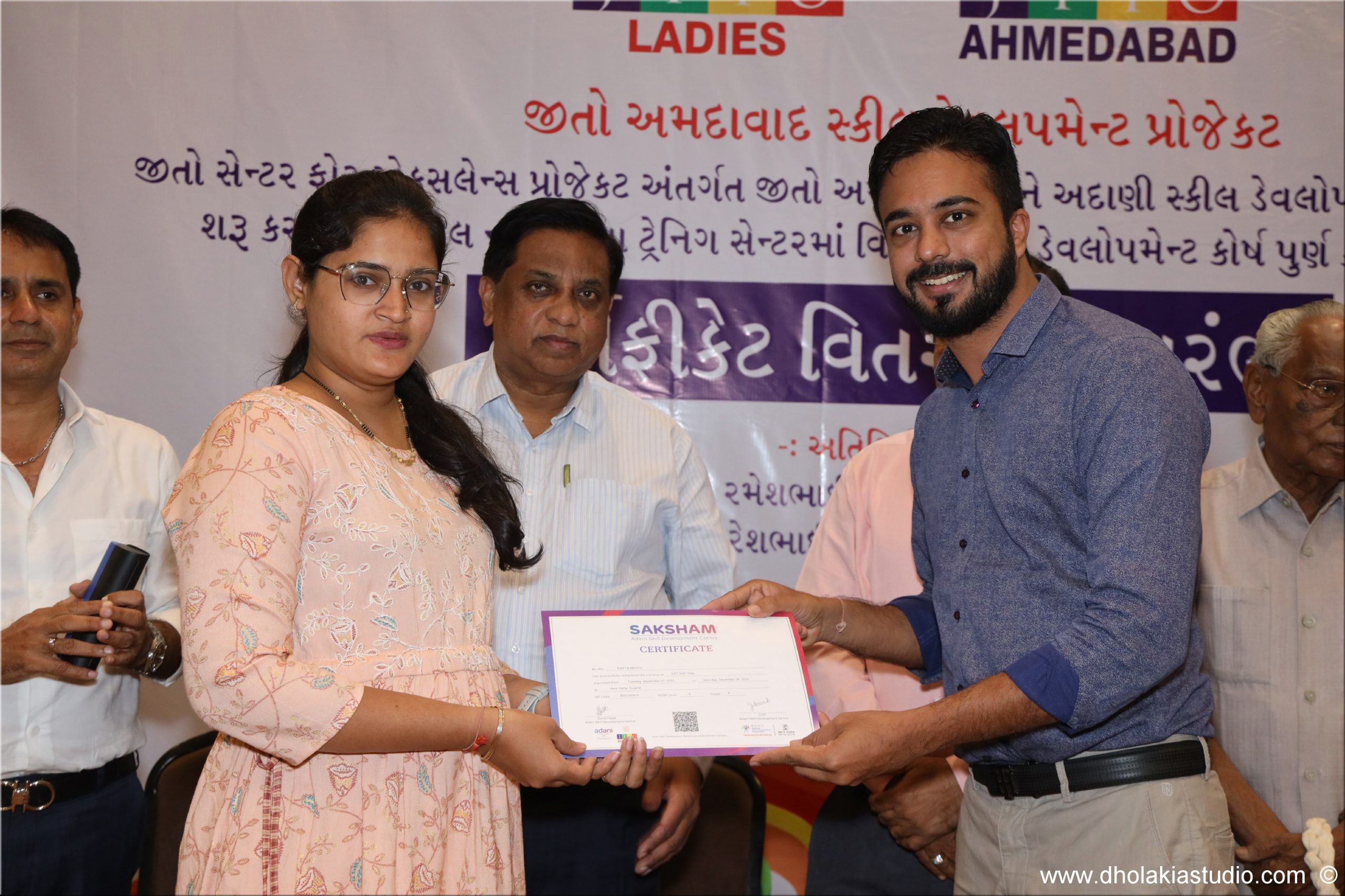 Jito Ahmedabad and Adani Skill Development Centre held a certificate distribution event for students who completed the Account with Tally course at Vasna centre on February 7, 2023. The event was attended by chief guests Rameshbhai Shah (Rajyash Group) and Sureshbhai Bagrecha (Komal Textile Group), officials from Jito Ahmedabad and representatives from Adani Skill Development Centre.