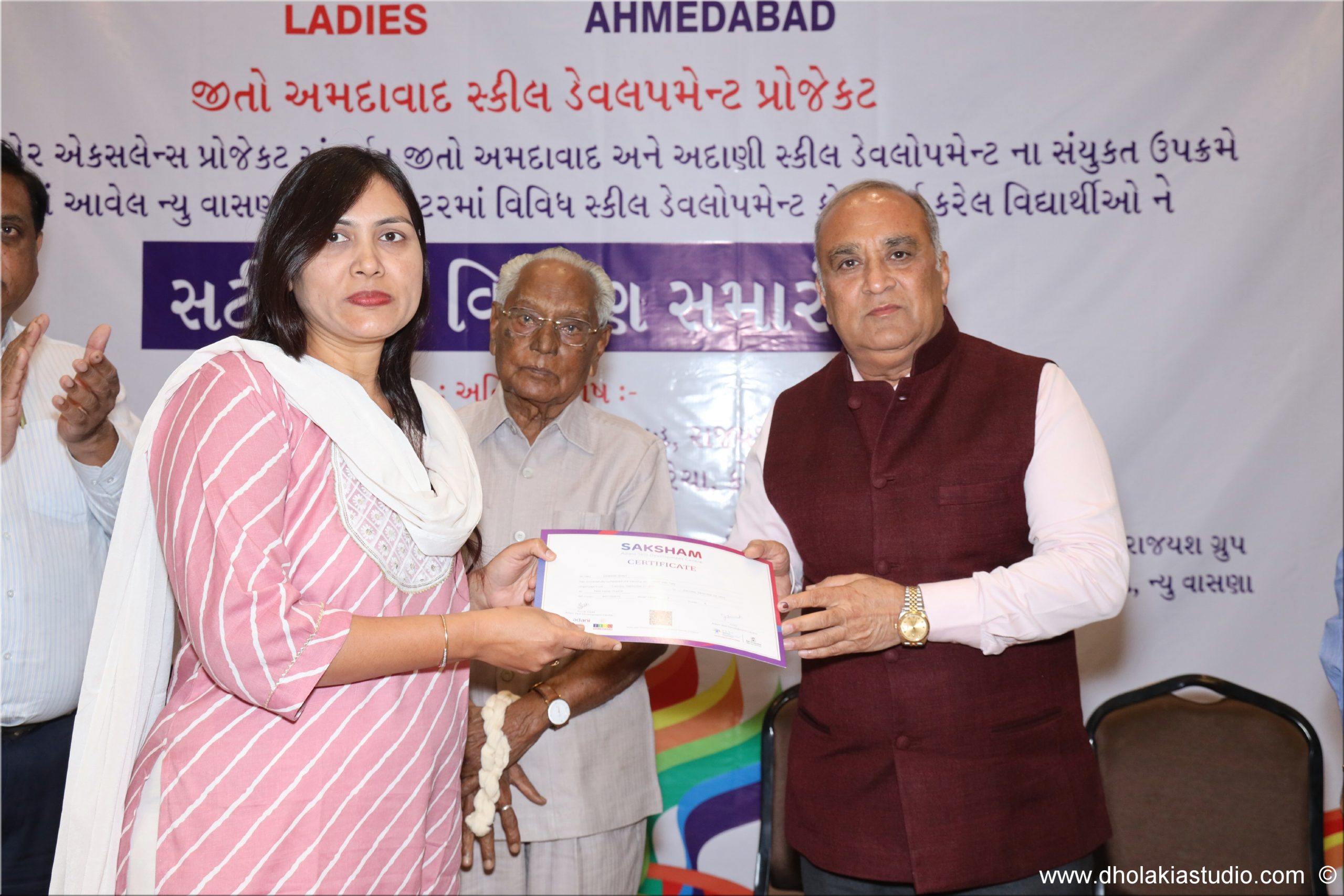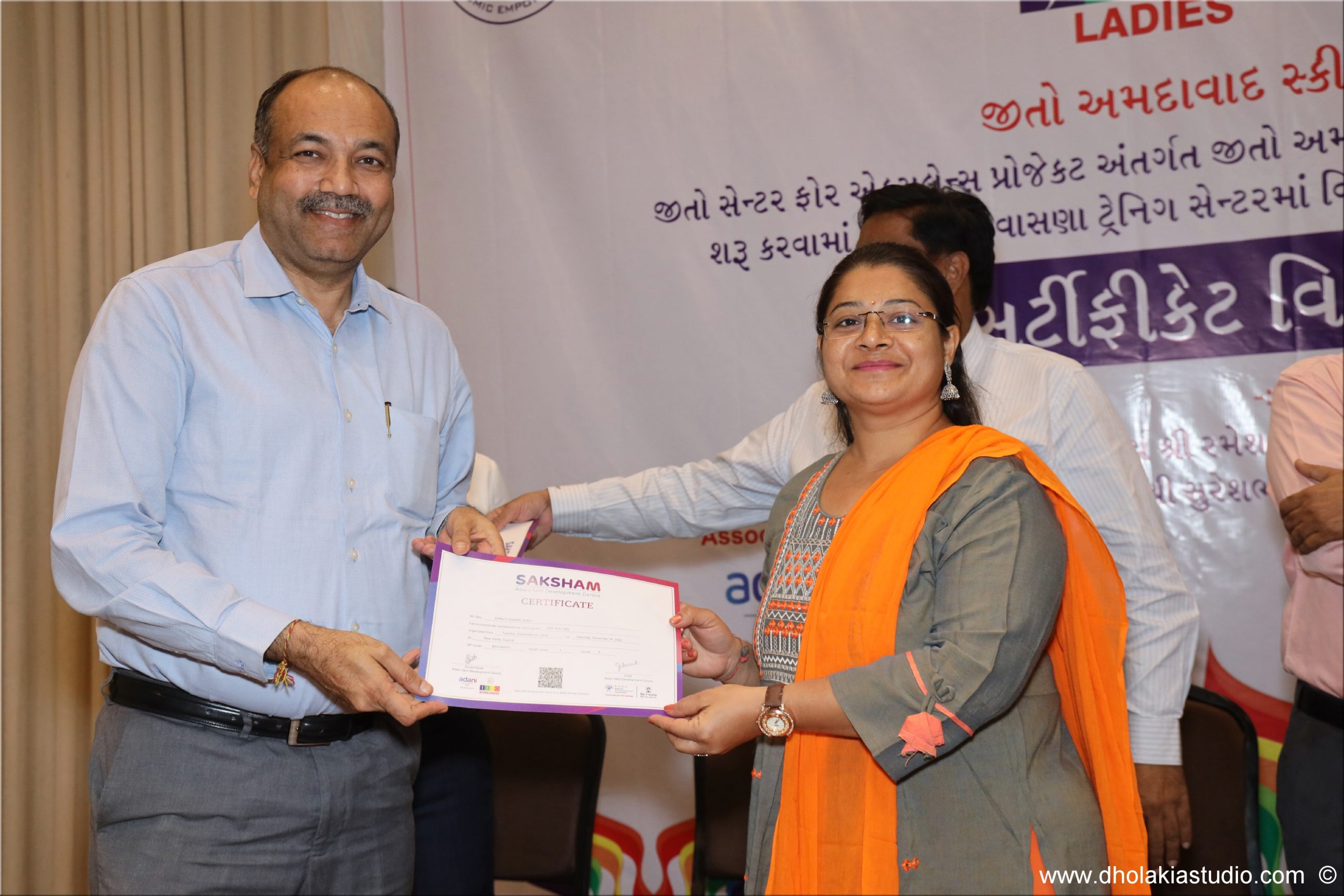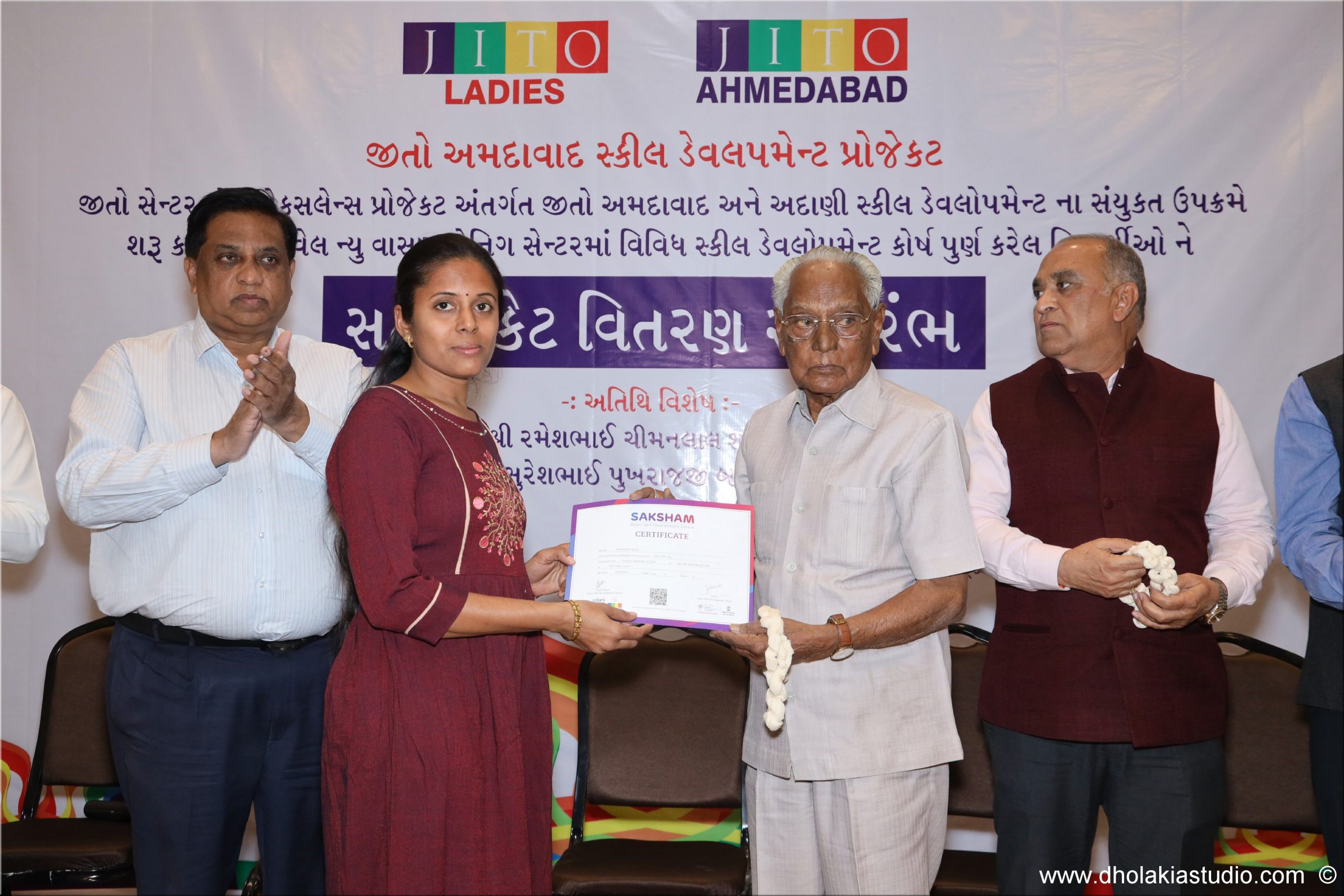 Jito Ahmedabad and Adani Skill Development Centre held a certificate distribution event for students who completed the Account with Tally course at Vasna centre on February 7, 2023. The event was attended by chief guests Rameshbhai Shah (Rajyash Group) and Sureshbhai Bagrecha (Komal Textile Group), officials from Jito Ahmedabad and representatives from Adani Skill Development Centre.