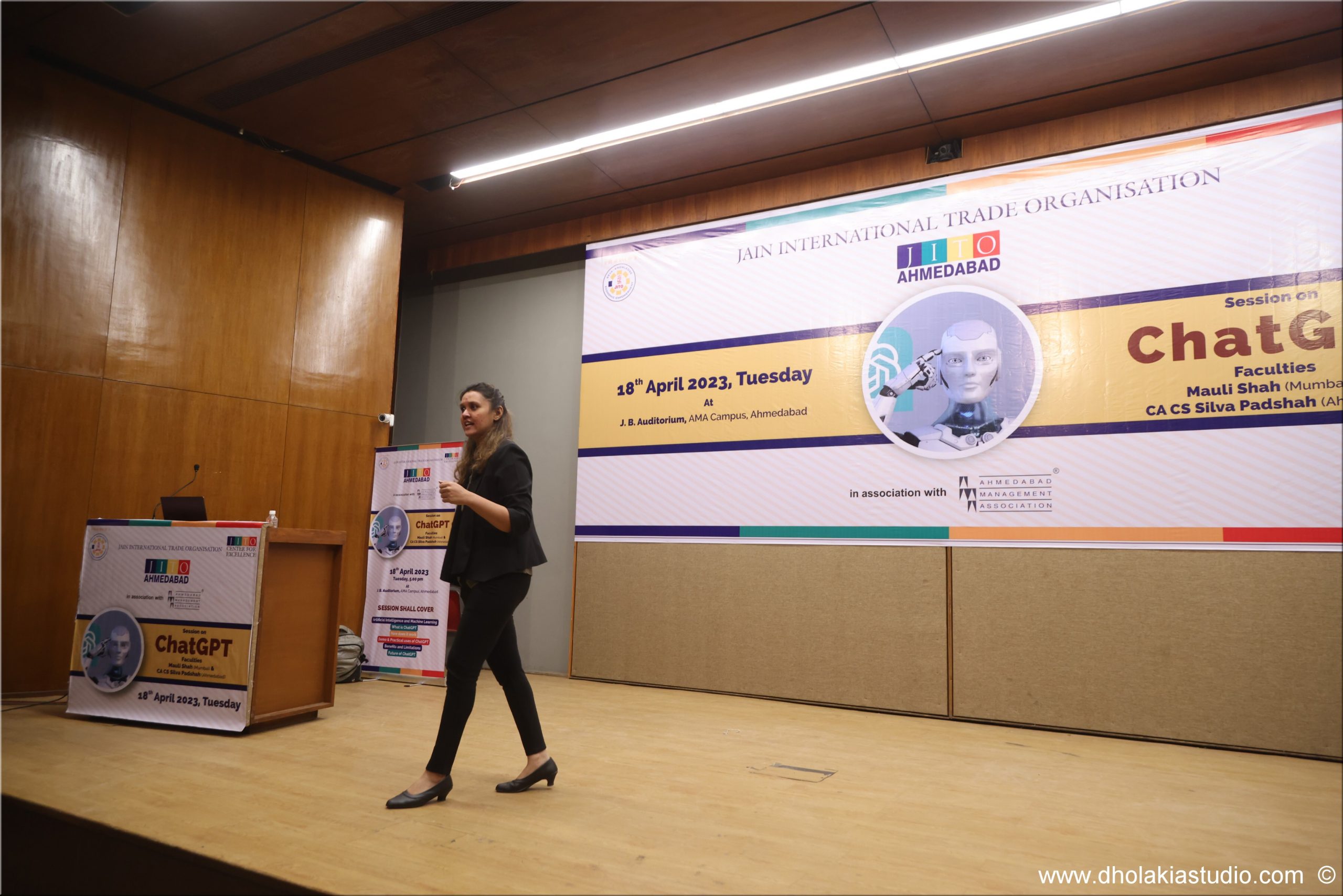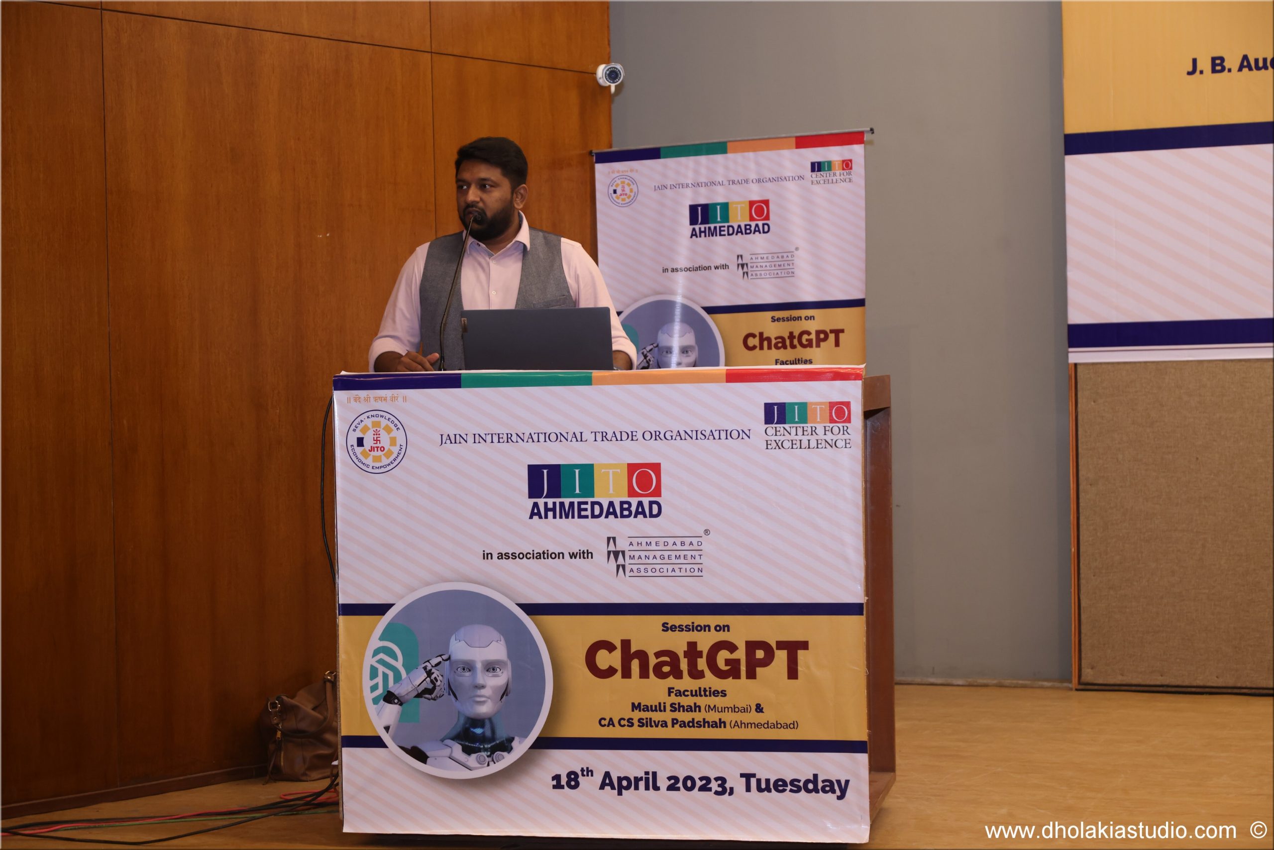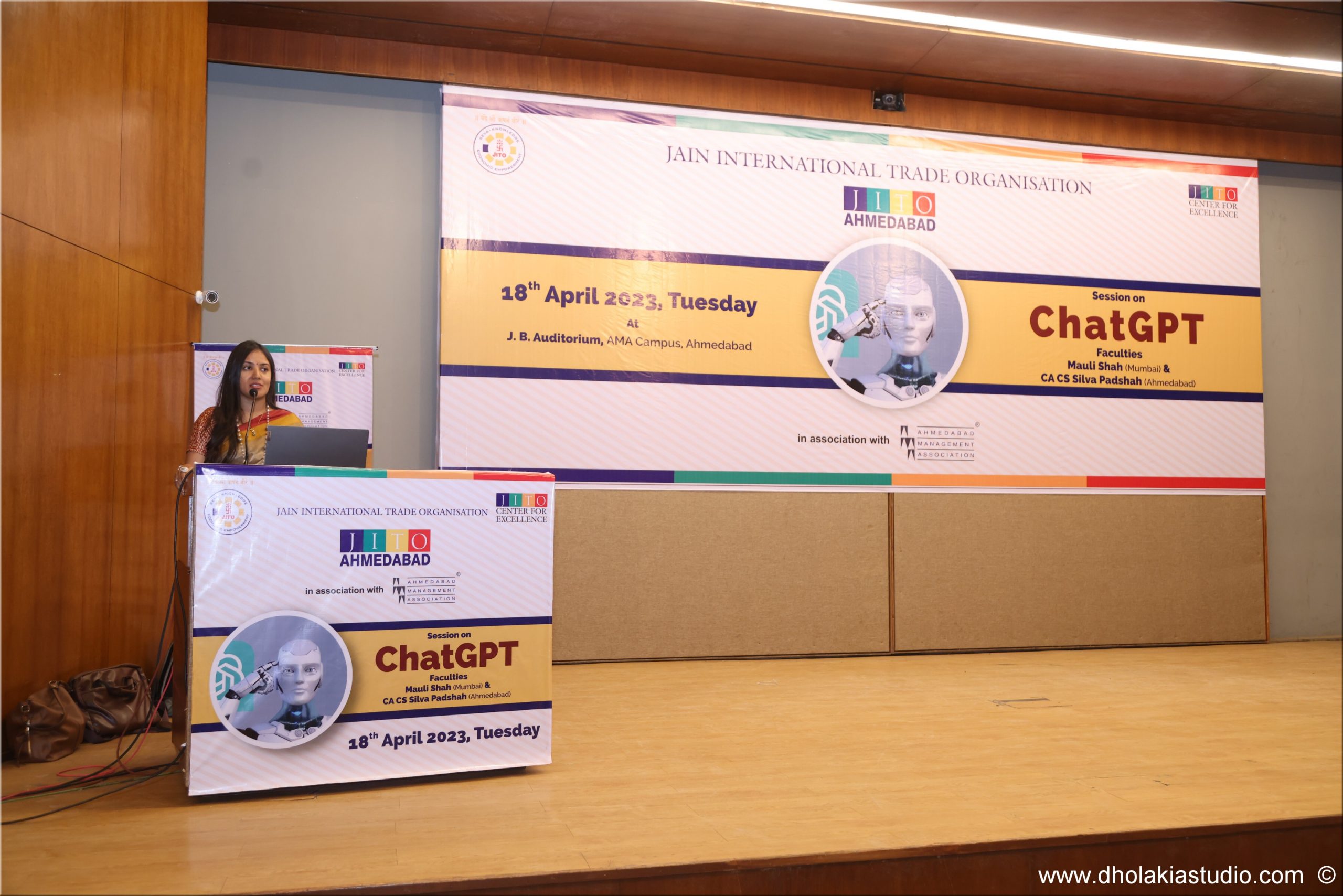 JITO Ahmedabad chapter on 18thApril 2023 organized an interactive session on ChatGPT and AI. This session had been attended by 300 people. The youths, adults, as well as senior citizens. Every age group was found on the seats of the JB auditorium, AMA, and everyone was actively engaging and participating in the session. The speakers and the audience were interacting with each other.CA CS SILVA SHAH helped us in learning about what is ChatGPT, how it works, how to use it, and more importantly, what are its pros and cons. As it is said you can have as much help from the technology as you need, but you have to be cautious about it. She did a great job in explaining all the benefits and limitations of ChatGPT.On the other hand, Ms. MAULI SHAH acquainted us with AI – Artificial intelligence. She explained us in technical language as well as layman’s language, how AI is present in our day-to-day life. How it evolves, how it is currently learning and what is the future of AI.What are the benefits and more of what are the limitations and how to be cautious about them?Summarising all the data of the event it is important to know about how technologies and AI have become an important part of our lifestyle and as said little knowledge is more important than no knowledge at all.