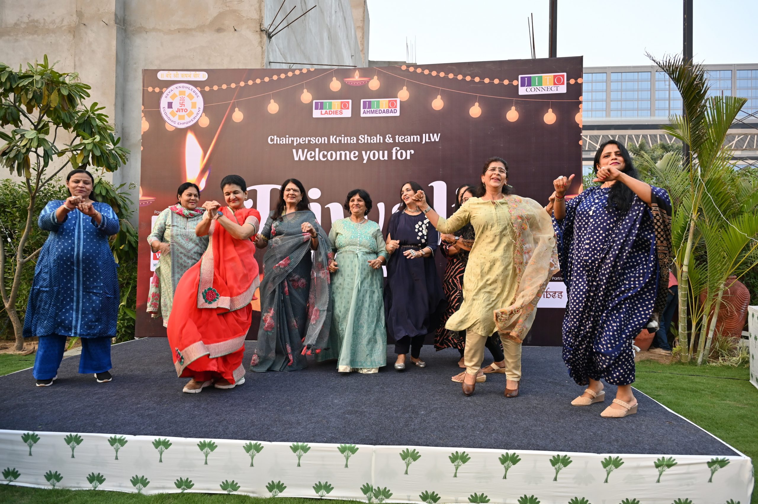 The ambiance was further enhanced by a beautifully crafted rangoli at the venue entrance, showcasing the artistic talent by one of our member Pinal ji. Chauvihar was arranged for those members who preferred an early dinner.