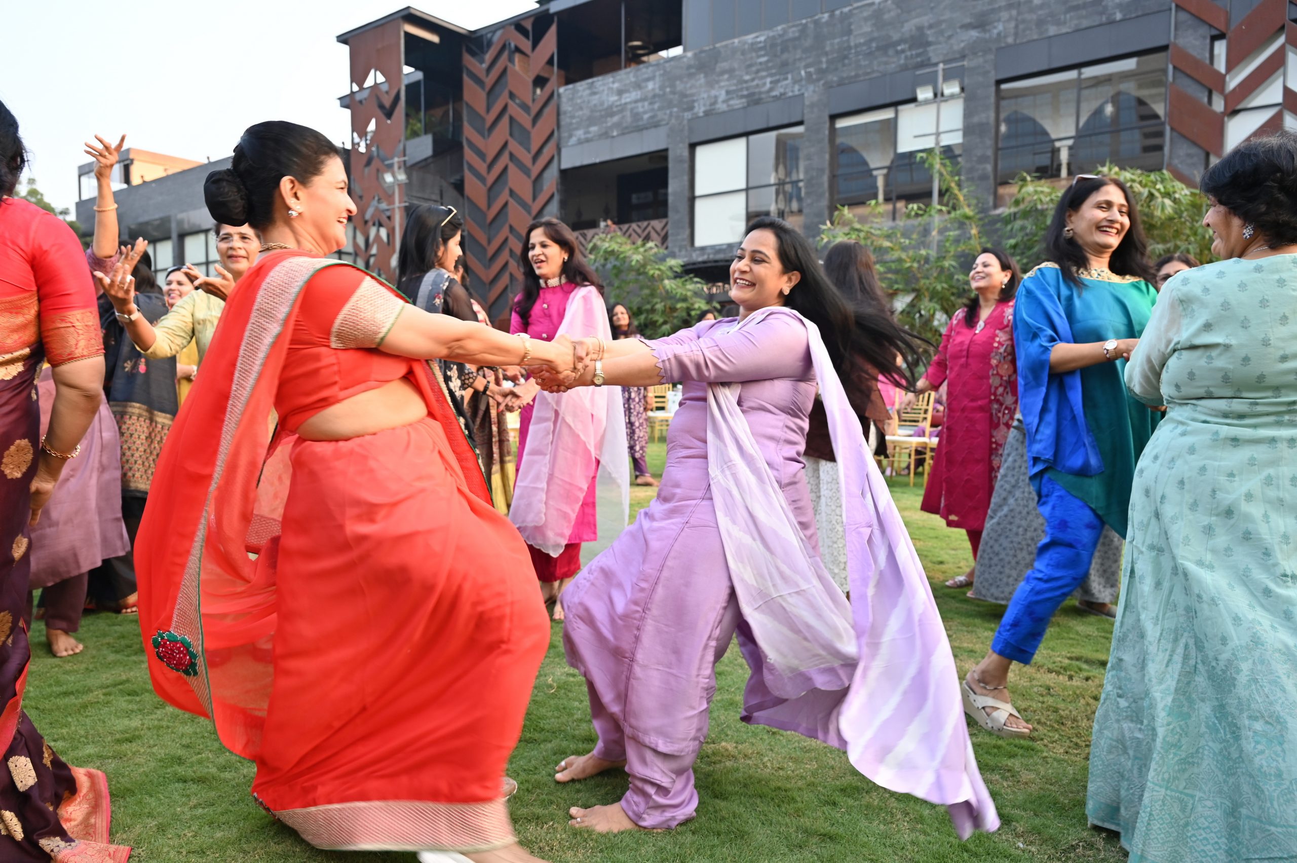 The ‘Diwali Utsav’ held on the 8th of November at Vintage Vibes was a resounding success, bringing together 225 members for an evening of joy and celebration. Mr. Vinay Pisat, the renowned sound frequency healer from Mumbai, infused the gathering with positive energy, connecting participants with Mother Earth and the Universe.Attendees received valuable tips on Diwali Vastu, guiding them on creating positivity and prosperity in their homes. The event featured an engaging two-and-a-half-hour session of diverse games orchestrated by Game Jockey Falguni, adding a lively touch to the festivities.A sumptuous dinner was served, providing a delightful culinary experience for all. Each member received thoughtfully curated gift hampers, containing a big jute bowl, organic jaggery, sweets, diyas, rangoli, rangoli colors, Kirtiraj Mathia, chorafali (Diwali snacks), and a scented candle.The ambiance was further enhanced by a beautifully crafted rangoli at the venue entrance, showcasing the artistic talent by one of our member Pinal ji. Chauvihar was arranged for those members who preferred an early dinner.Overall, the Diwali Utsav at Vintage Vibes was a memorable occasion, fostering connections, laughter and a shared sense of celebration under the open sky and breathtaking natural surroundings. The event was a testament to the spirit of community and joyous festivities.