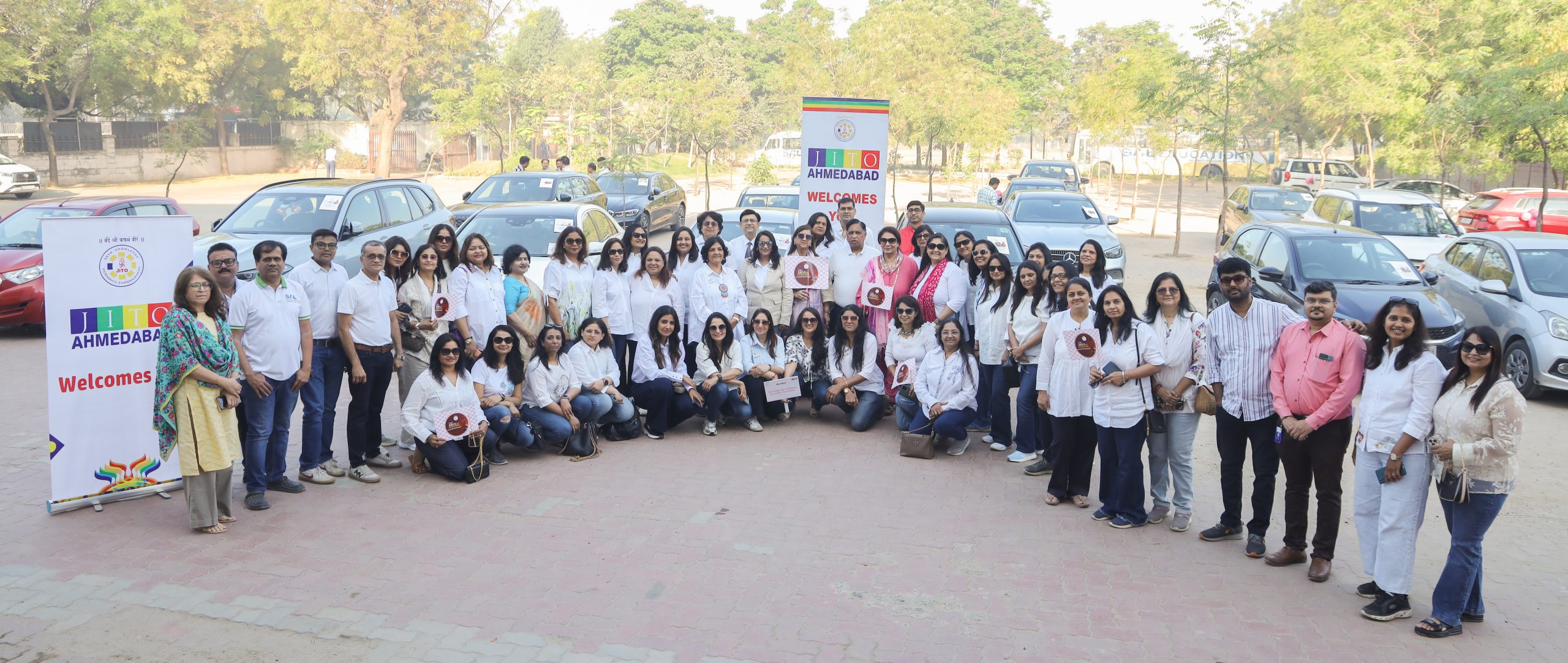 The Drive with Purpose – National Car Rally, a national initiative by JITO Apex, was successfully organized by JITO Ladies Wing with participation from all chapters across India, including Ahmedabad, on 8th March 2026, marking International Women’s Day. Hosted by the JITO Ahmedabad Ladies Wing under the Health & Nutrition initiative, the rally commenced at 7:00 AM from Karnavati Club and concluded at SAL Education Campus, Ahmedabad. The event was hosted with hospitality by Smt. Ragini Shah and Shri Rajendra Shah our eminent JITO members. All necessary creatives, drafts and guidelines for the event were centrally prepared and provided by the Apex Ladies Wing team, ensuring uniformity and impact across chapters. The initiative aimed to spread awareness about Thalassaemia and Cancer, turning a coordinated national effort into a powerful movement for health awareness.
