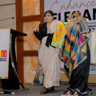 The sari styling workshop by Ashwini Narayan at Hyatt Vastrapur on October 18th was a remarkable event attended by 80 enthusiastic members. Ashwini not only showcased 9-10 innovative sari draping styles but also emphasized how the choice of fabric can significantly impact one’s appearance, even when wearing the same style.Ashwini explained that the sari allows individuals to express their desired look, whether it’s a slim silhouette or a more voluminous appearance, and that it’s largely influenced by the fabric. Thin saris create a distinct style, while thicker materials offer a unique impact.Accessories plays a pivotal role in enhancing the overall appearance of a lady, as Ashwini highlighted. The discussion included the fall of the sari, cowl, and terms like pallu and patli, all of which were integral in helping the audience grasp the various sari styles demonstrated.The event not only enriched our understanding of sari draping but also broadened our perspective on how fabric choices and accessories can transform one’s appearance. We extend our gratitude to Ashwini Narayan and all the attendees for making this event both informative and stylish.