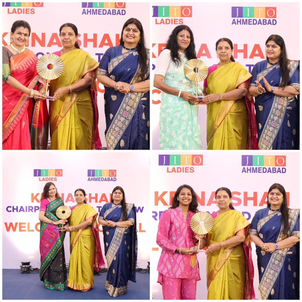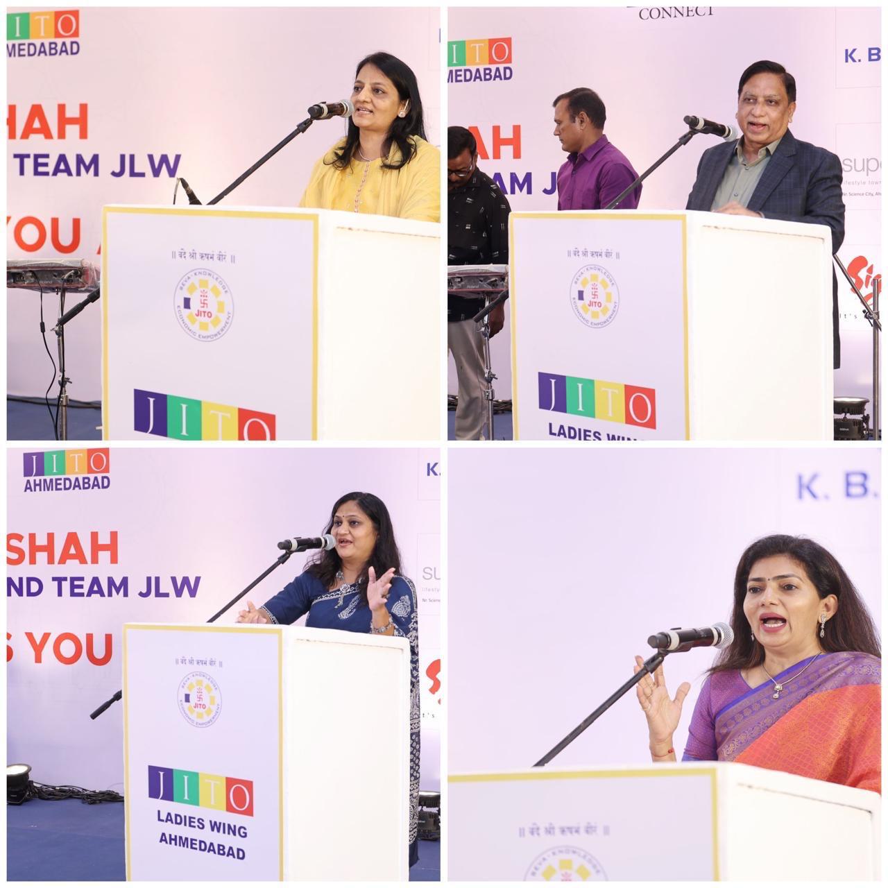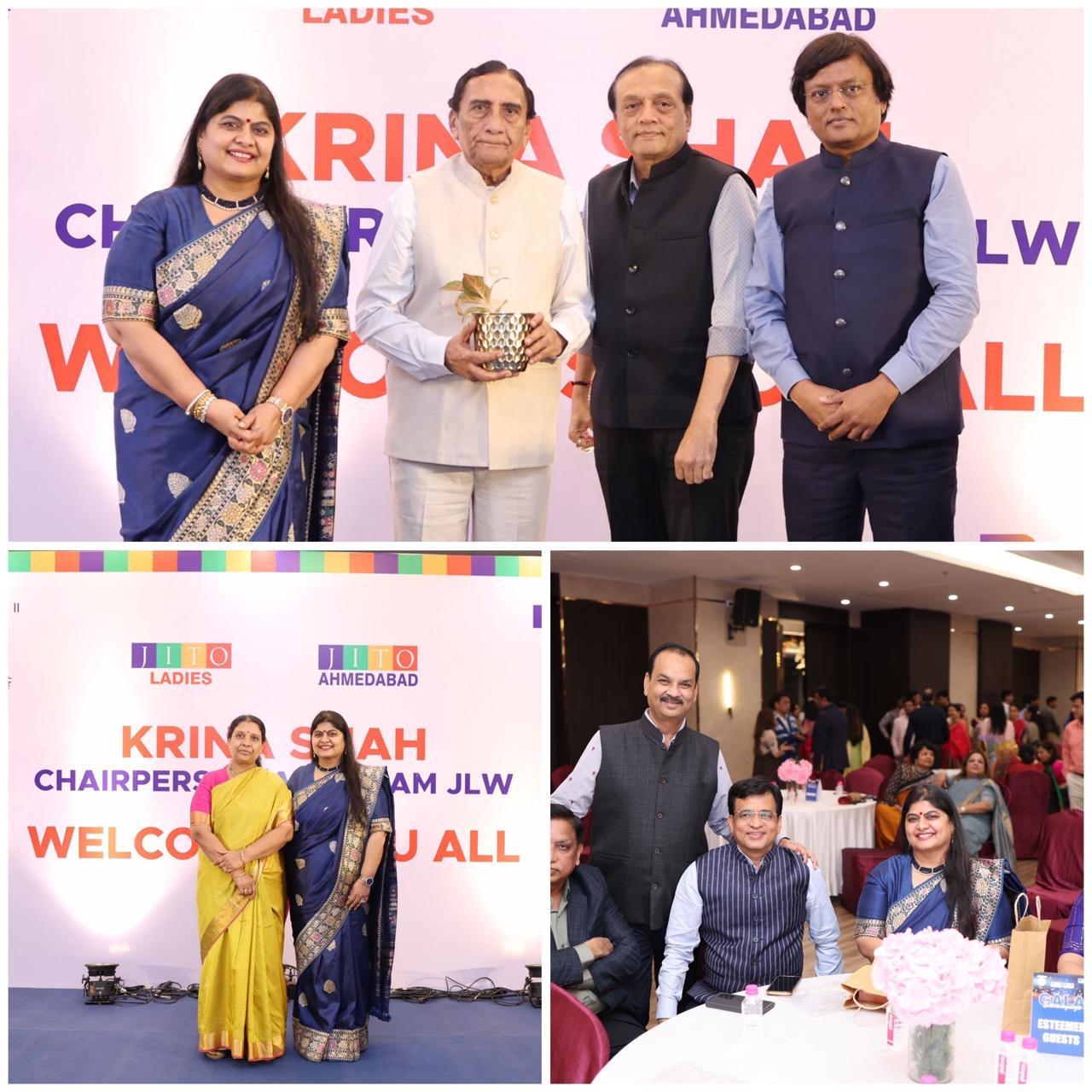 The Jito Ladies Wing (JLW) Ahmedabad held a memorable Gala Extravaganza on September 23, 2023, at the Kristar Banquet Hall. The event celebrated the achievements of its members and marked the culmination of a successful year. The dignitaries for this event were Padmashri Dr. Kumarpalji Desai, mayor Pratibhaji Jain, Jaina Lalbhai and Snehalben Nagar Seth.