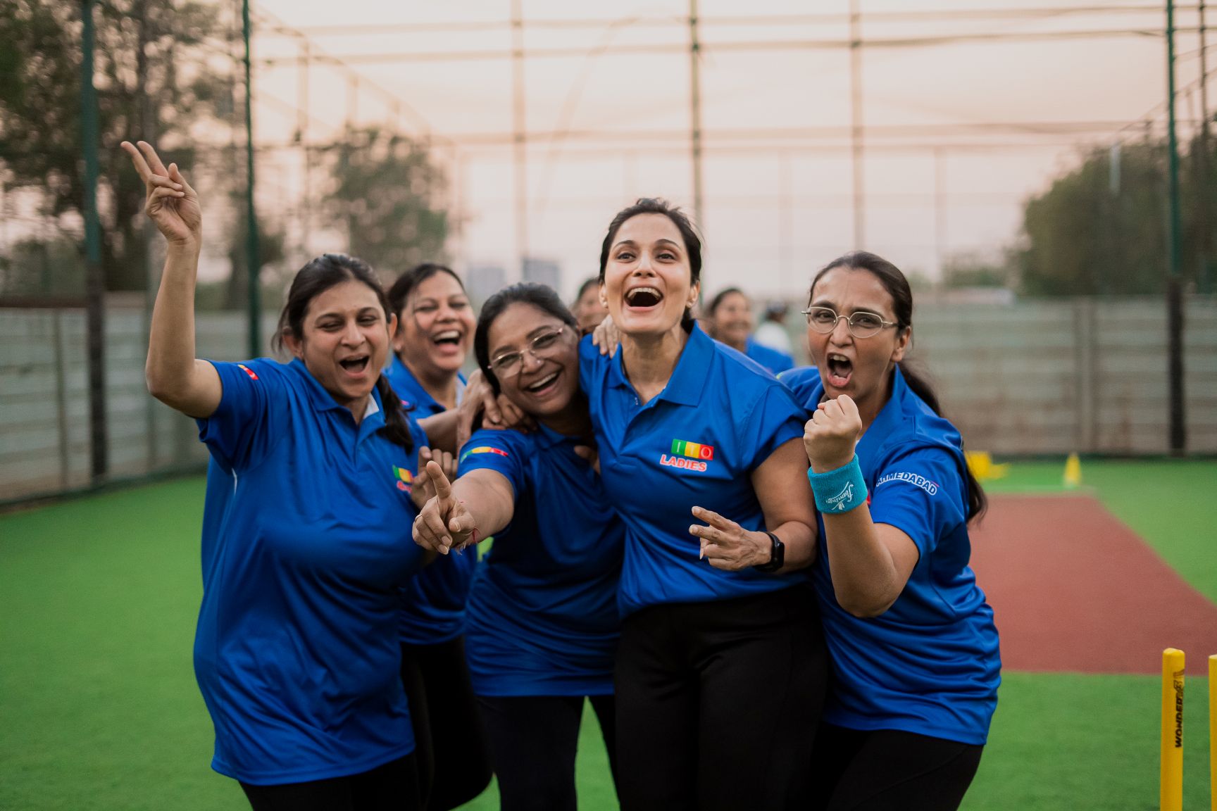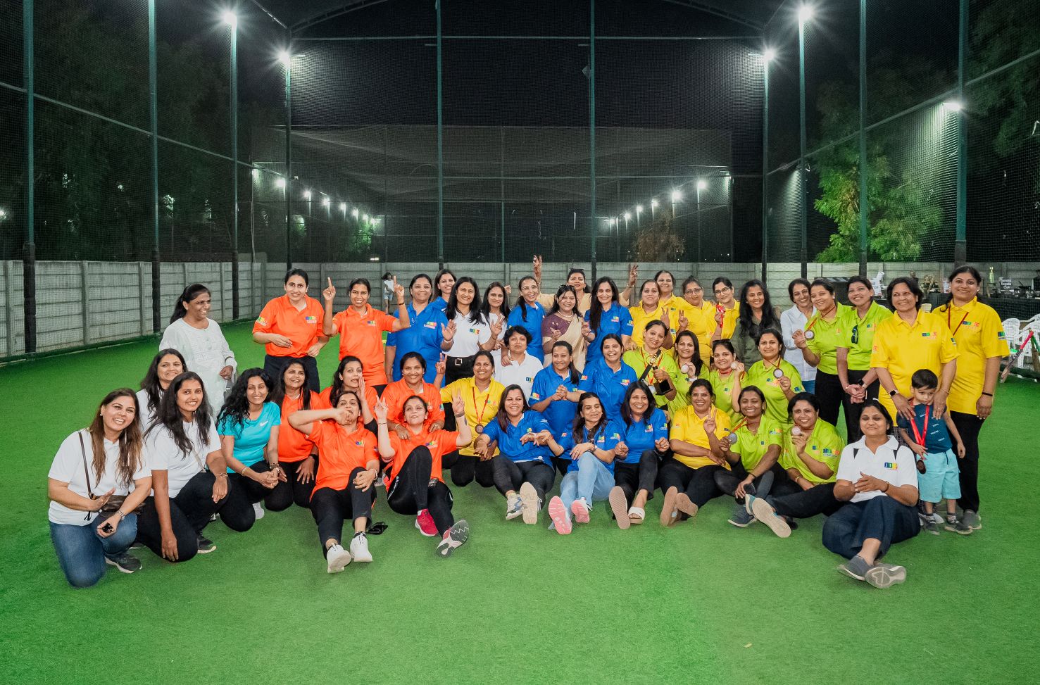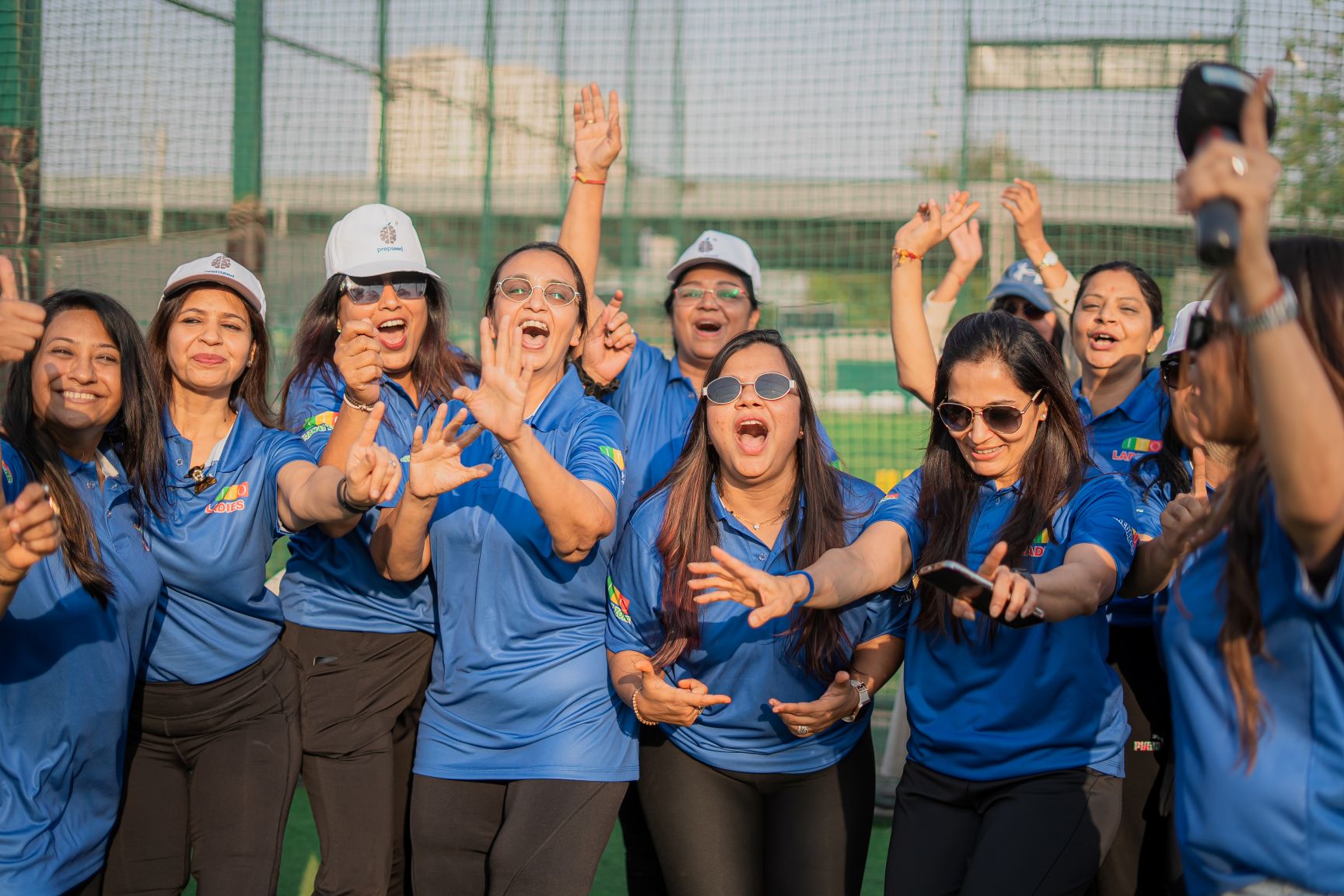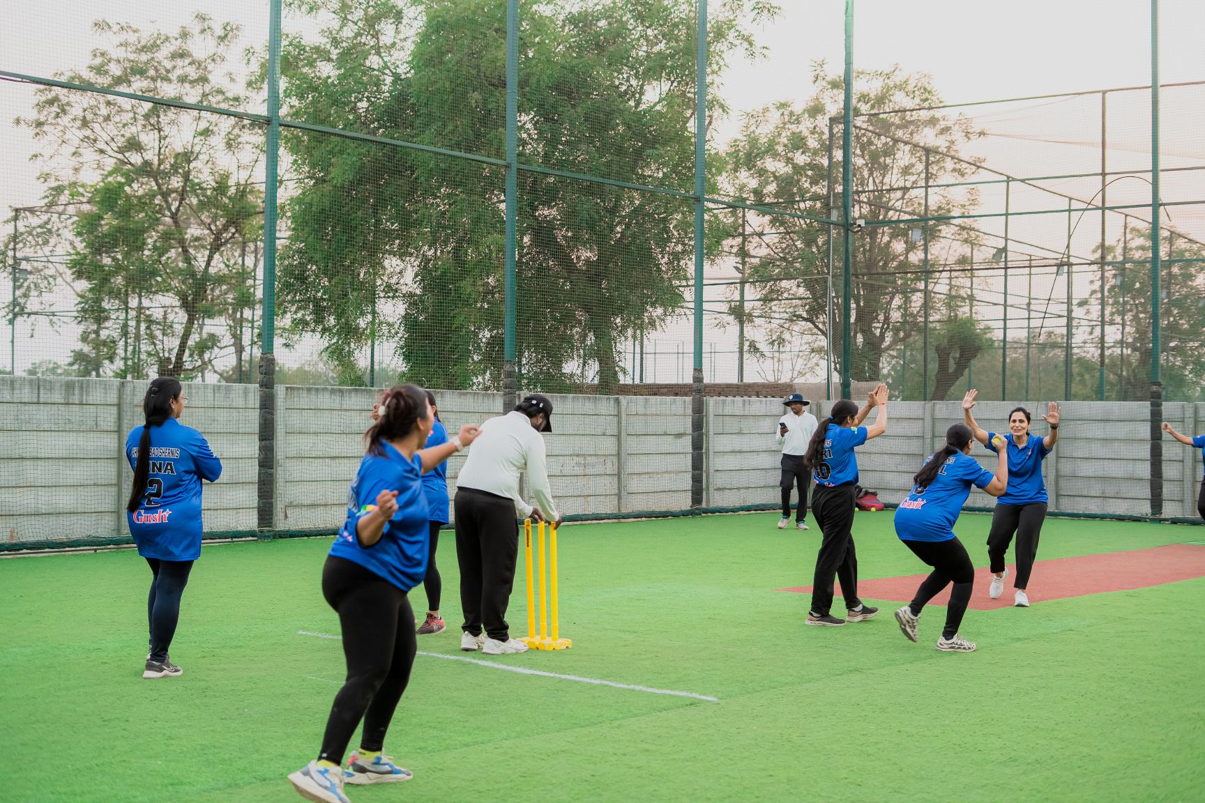 All teams arrived at noon and their stay was arranged at Rajpath club. To ensure a warm welcome, a delightful lunch was organized, where 120 people including players, mentors and members from the Ahmedabad chapter bonded over meaningful conversations, discussing future plans and forming new friendships. Before heading to the ground, each player received a special kit to help them stay protected from the sun and perform at their best. After a short rest, we moved to the venue, where a high tea was arranged. To energize the participants, we hosted a fun Zumba session, setting the perfect mood for an exciting evening of cricket.