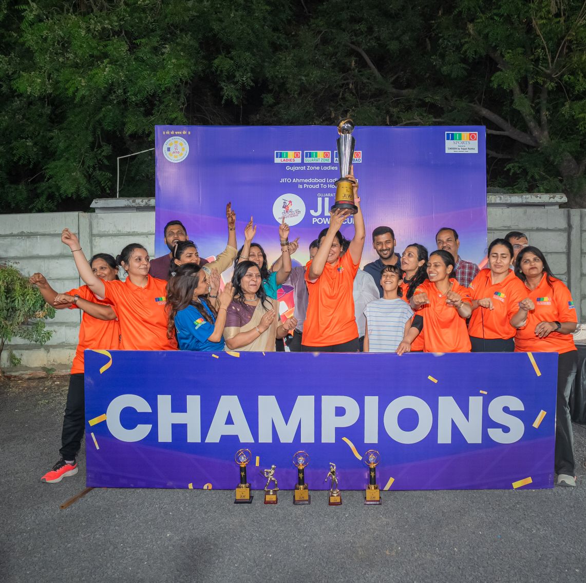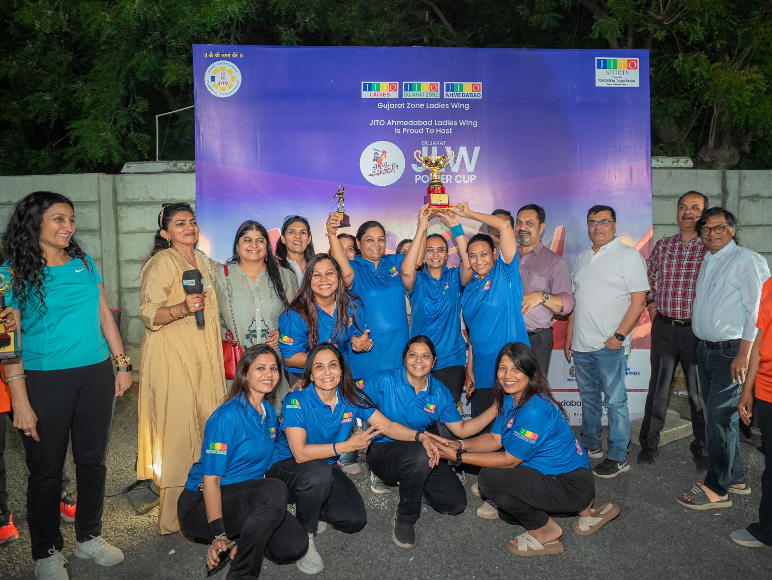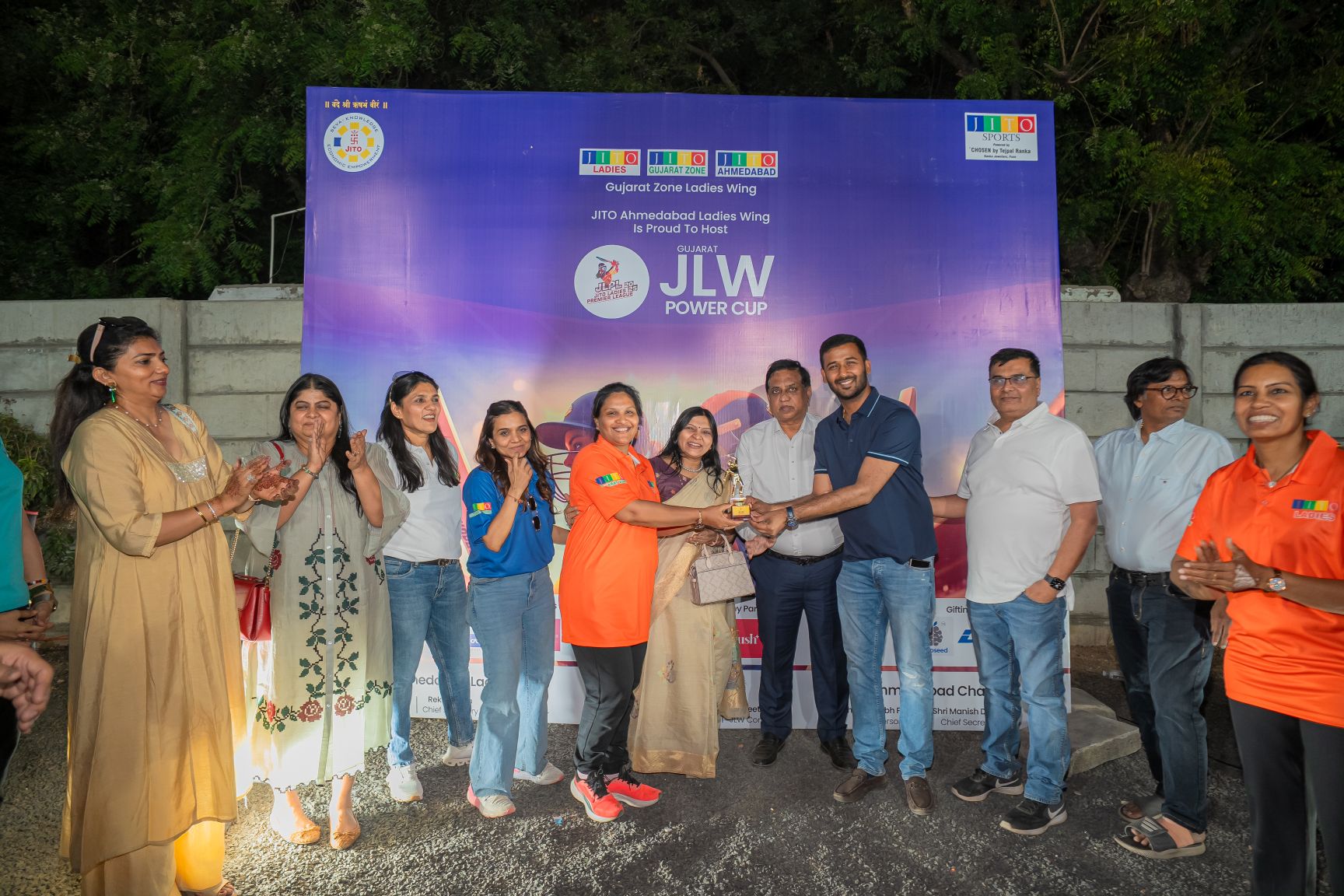 The JITO Ladies Wing Ahmedabad proudly hosted a thrilling Gujarat zone Box Cricket Tournament “Gujarat JLW Power Cup’ on21st March 2025, bringing together 65 players from eight teams from across Gujarat— Ahmedabad, Bardoli, Bhavnagar, Bhuj, Gandhidham, Surat, Vadodara and Vapi. The tournament was not just a competition but a celebration of sportsmanship, camaraderie and teamwork. Ahmedabad team was headed byConvener Smt. Priyanka Shahunder the leadership ofJLW chairperson Sharmila Shah & team and mentored by Smt. Sushma Kankaria.