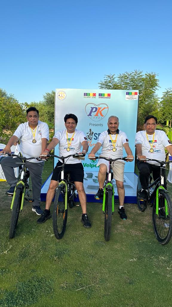 Cyclothon event was organized by Jito Ahmedabad and Gujarat Zone on 11th June 2023 from 5 Am onwards.The event was truly superb and we were delighted with the excellent arrangements made.The morning started with an energetic Zumba session, followed by cycling and invigorating exercises.The delicious and healthy breakfast provided was a delightful treat.Additionally, we were fortunate to have the opportunity to visit at the Shantigram Jain Derasar.We Thank our title SponsorPK Group , PK CaresShri Piyush ji JainSupport SponsorG2 by Rajratan ElectricShri Dinesh JainTShirt SponsorShrimati Shivani JainEvent Graced by JATF, Shraman Aarogyam TrusteeShri Prakashji SanghaviJBN APEX Director in ChargeShri Jigish ShahGujarat Zone ChairmanShri Amit JainGujrat Zone Vice chairmanShri Mahesh PujGujrat Zone Chief SecretaryShri Tejas ShahJito Ahmedabad ChairmanShri Sanjeev ChhajerJito Ahmedabad Chief SecretaryShri Ashok BhansaliJito Ahmedabad Vice ChairmanShri Malay ShahJito Ahmedabad Vice ChairmanShri Rajeev ChhajerJito Bhavnagar ChairmanShri Mitesh ShahSports Zone Convener,our very own Ishanbhai Shahalong with Akash Kamdar and Rushabh Shah