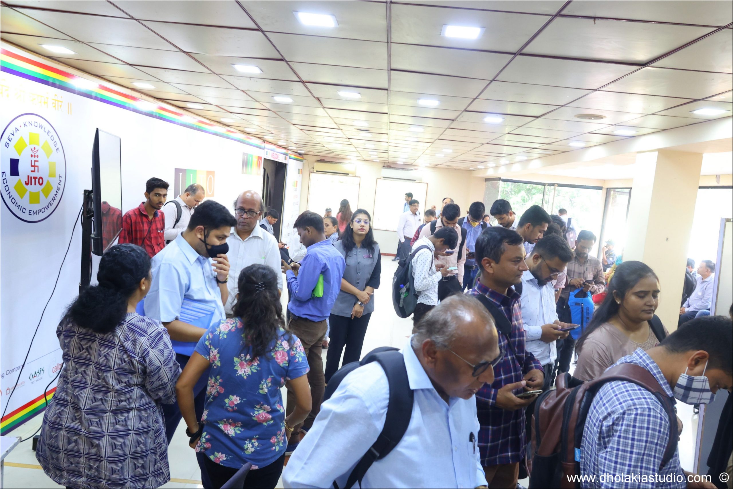 With profound happiness we are pleased to report successful completion of“JITO Maha Maha Job Mela”on24th September 2022.The economic empowerment event saw2259interviews being conducted by35companies such as Reliance, Star Health Insurance, Navneet, Vishakha, Navin Group, etc.The tech driven and seamless interviews conducted; witnessed27on spot job confirmations and326prospective employees were selected for second round interview.The event was conceived under visionary guidance of Shri Chetan Shah (Chairman, JITO Ahmedabad) and Shri Asit Shah (Chief Secretary, JITO Ahmedabad) and executed by Shri Jagrit Sanklecha (Convenor, JITO Jobs Ahmedabad) in the esteemed presence of JITO dignitaries like Shri Jigish Shah, Shri Kushal Bhansali, Shri Nirav Shah, Shri Tejas Shah, Shri Malay Shah, Shri Pravesh Mehta, Shri Bhadhresh Shah, Shri Nitesh Shah and Shri Fenil Shah.The dynamic JITO Jobs team included Shri Siddharth Chovatia, Shri Ashish Doshi, Shri Nitin Jain and Shri Vishal Shah who worked tirelessly to bring Companies and Job aspirants on the same platform.
