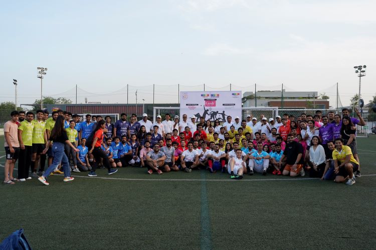 The excitement continued on day two with football and badminton tournaments held at ARA, Sindhu Bhavan Road. From 3:00 PM onwards, participants demonstrated exceptional prowess and determination in high-intensity matches. Badminton was structured in a manner where each team fielded 5 players each, 4 for men’s doubles and 1 for women’s single. While Football was a 6-a-side tournament, with a compulsion to have at least 1 woman on the field at all times. The 10 teams were divided into 2 groups, where each team played 2 league stage games and then the top 2 teams from both the groups advanced to the semis, and then the winners competed in the finals. The league stage matches were kicked off by Shri Amit Jain, Shri Sanjeev Chhajer, Shri Asit Shah, and Shri Pravesh Mehta. The finals were kicked off by Shri Kushal Bhansali, Shri Jigish Doshi, Shri Samir Sheth, and Smt. Kavita Jain. After the finals, all the sponsors and 10 team owners were invited to share their thoughts and experience of the tournament. The day concluded with a closing ceremony, honoring the exemplary sportsmanship displayed throughout the event.