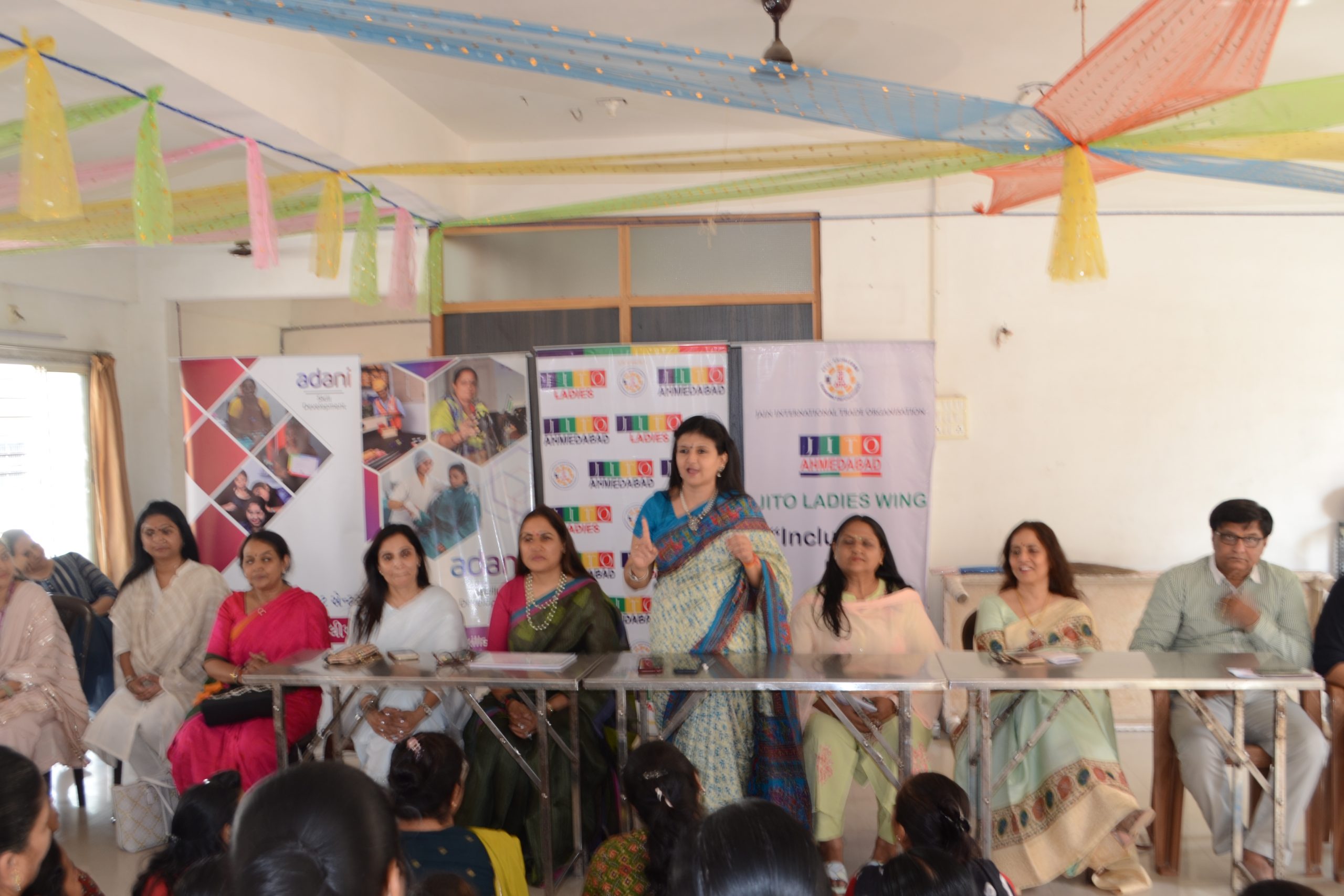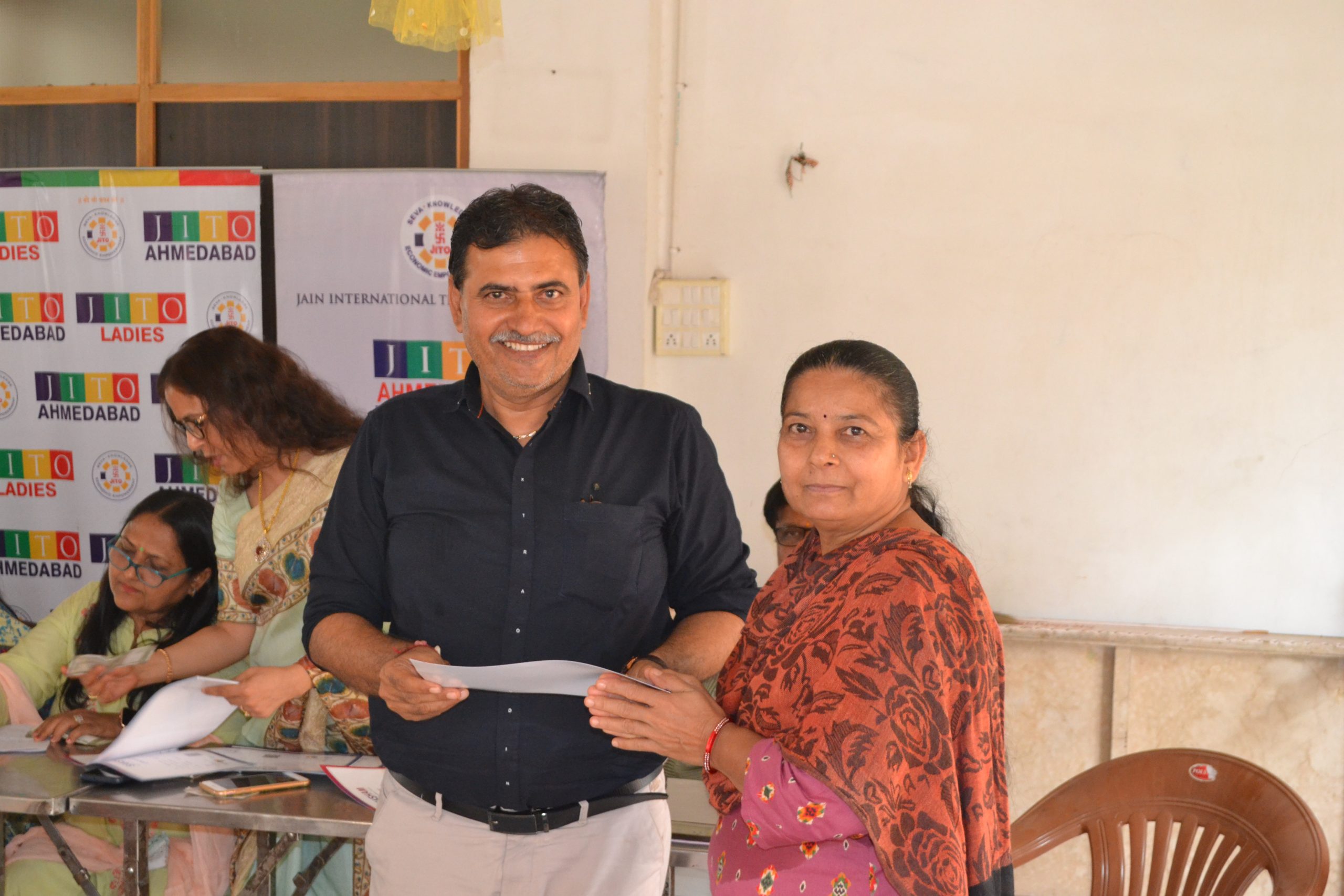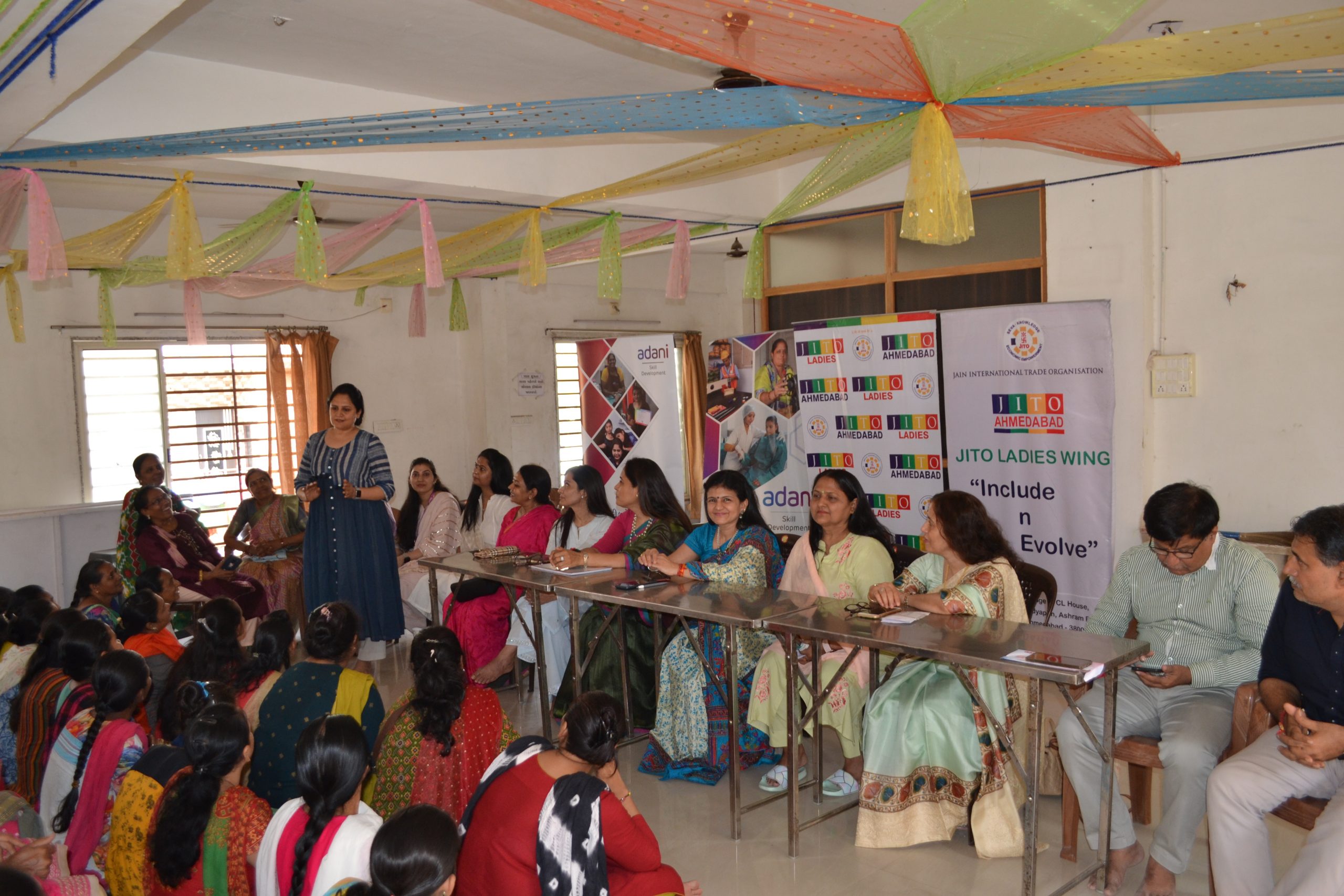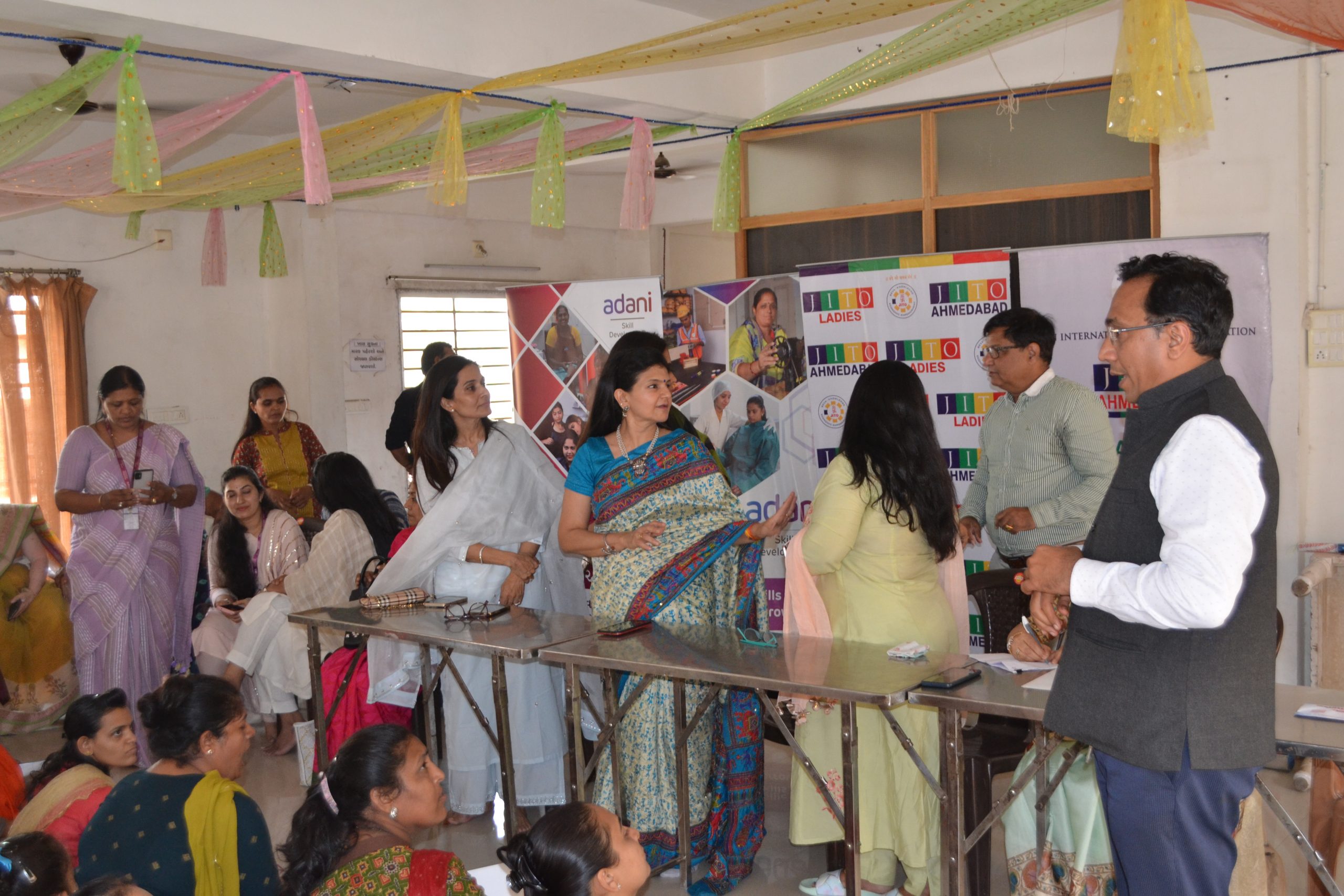 Another feather in our cap as we have started another centre for ladies Tailoring class under the Project Roshni at Krishna nagar , Naroda .The inauguration ceremony was held on 25th June at the center itself. Smt Liza shah, Smt Shweta Hundia, Smt Rajeshwari Jain & Shri Bhadreshbhai from JITO were there to motivate and inspire the ladies . A well known fashion designer Ms Deepali Jahanara also gave her suggestions and tips to new students.