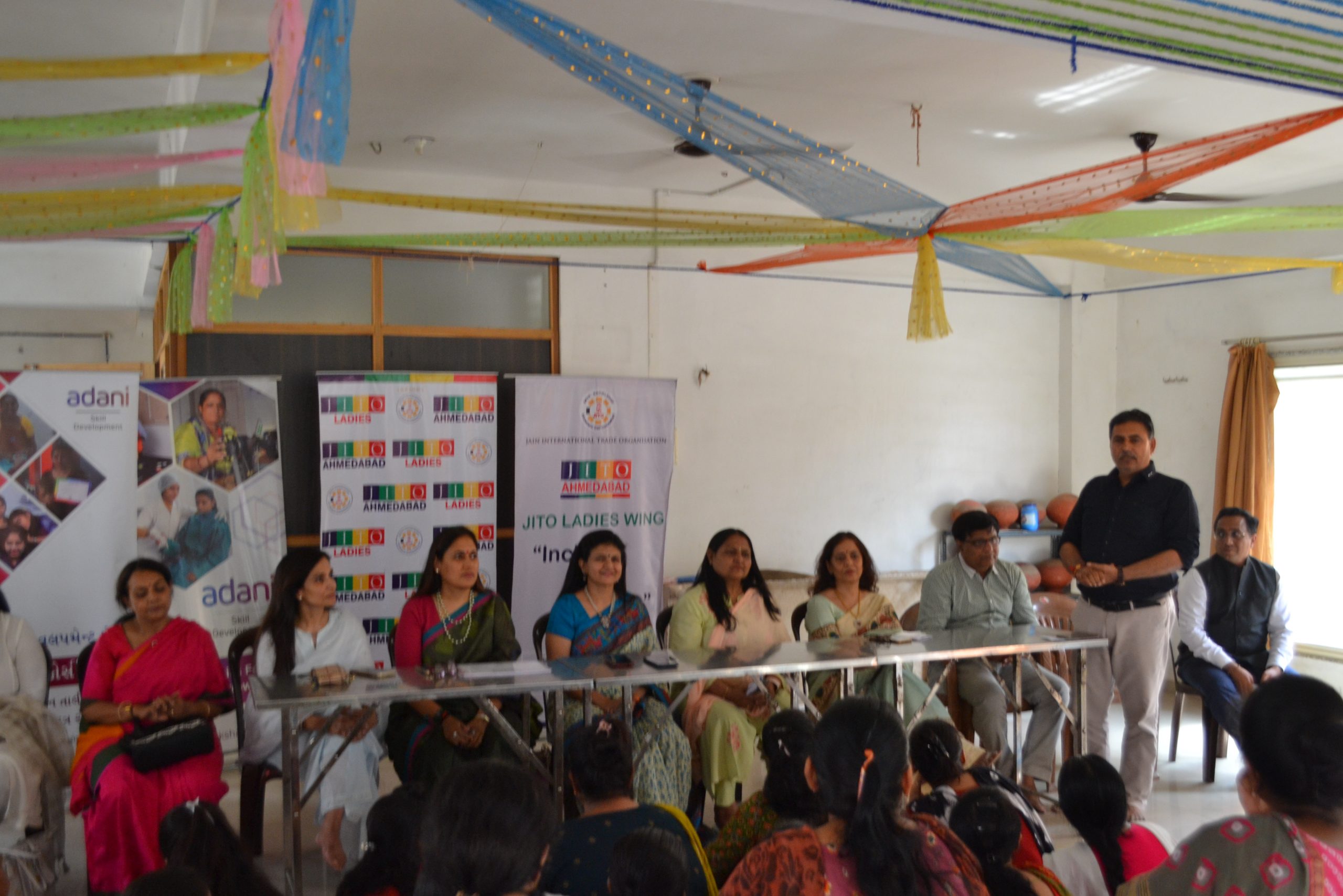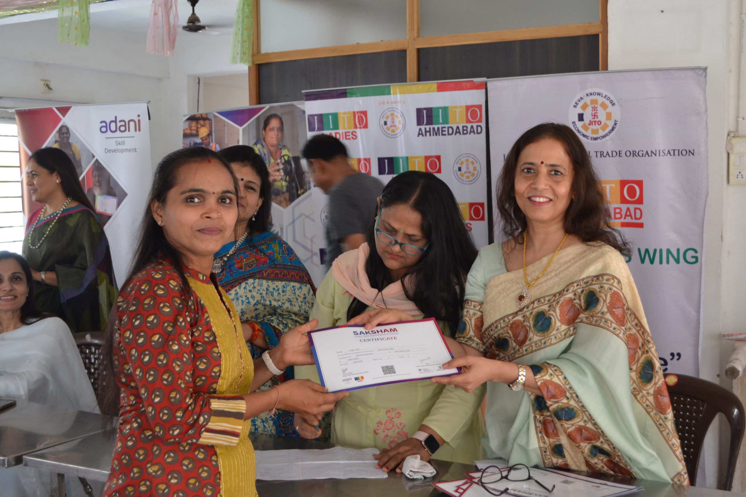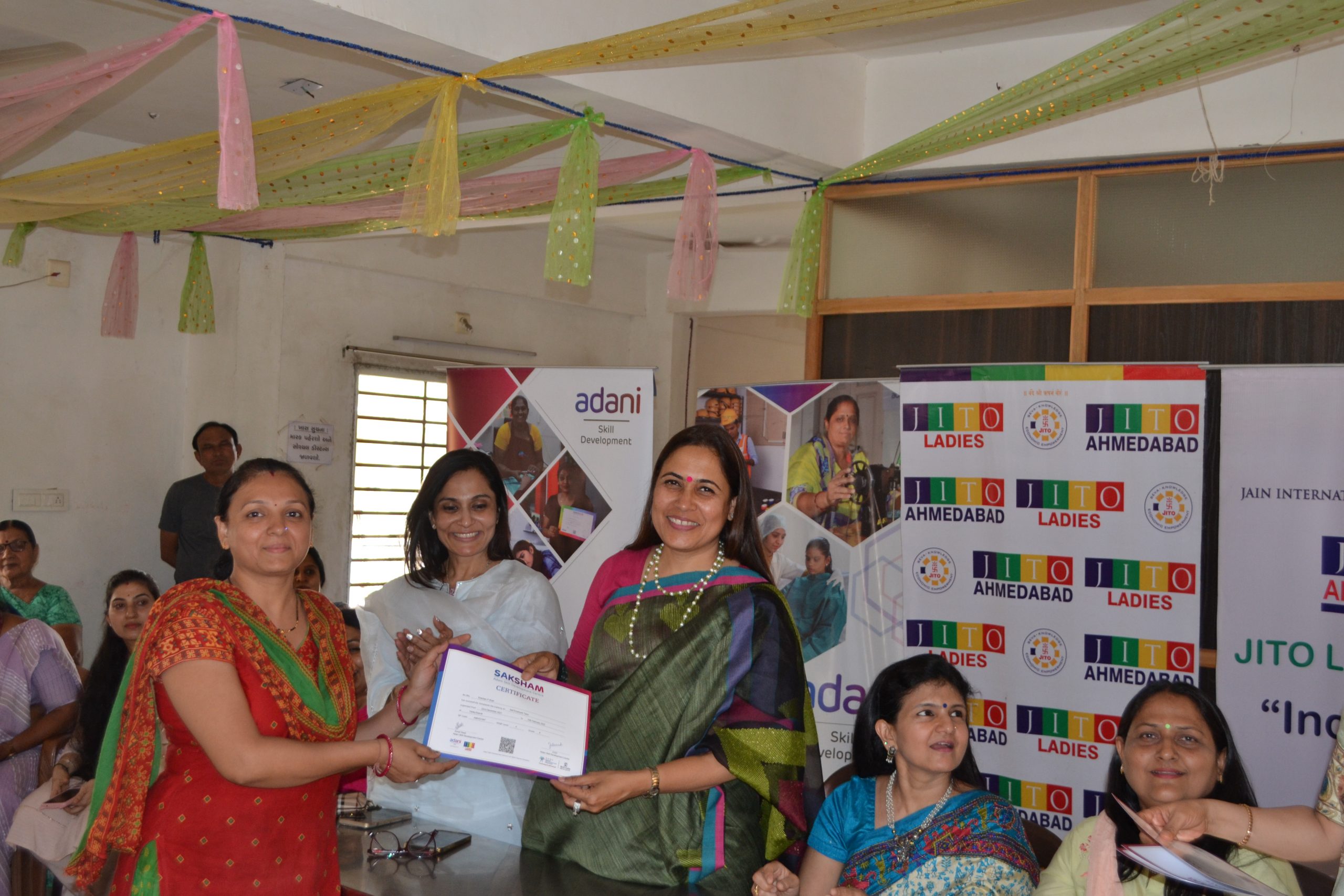 Another feather in our cap as we have started another centre for ladies Tailoring class under the Project Roshni at Krishna nagar , Naroda .The inauguration ceremony was held on 25th June at the center itself. Smt Liza shah, Smt Shweta Hundia, Smt Rajeshwari Jain & Shri Bhadreshbhai from JITO were there to motivate and inspire the ladies . A well known fashion designer Ms Deepali Jahanara also gave her suggestions and tips to new students.