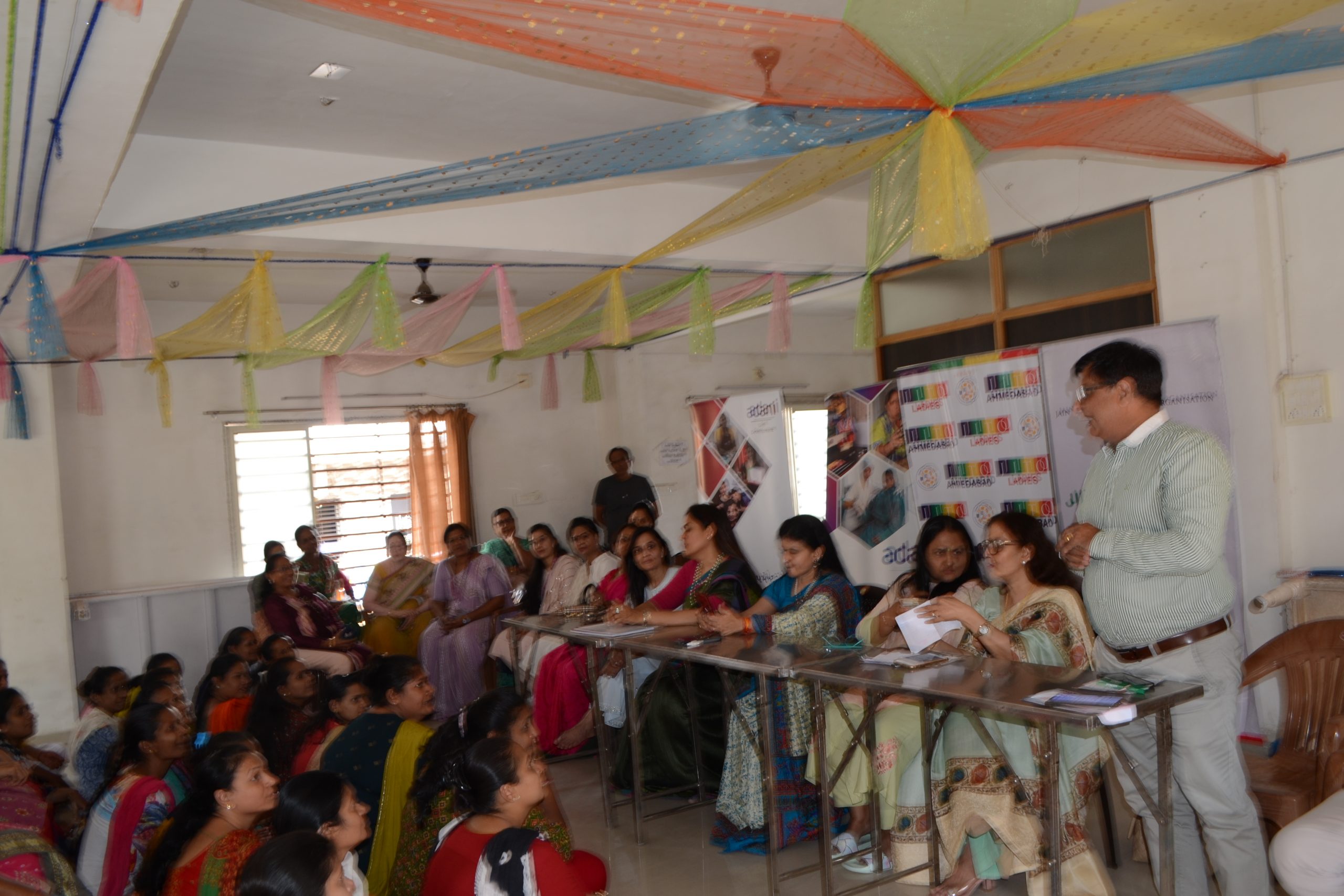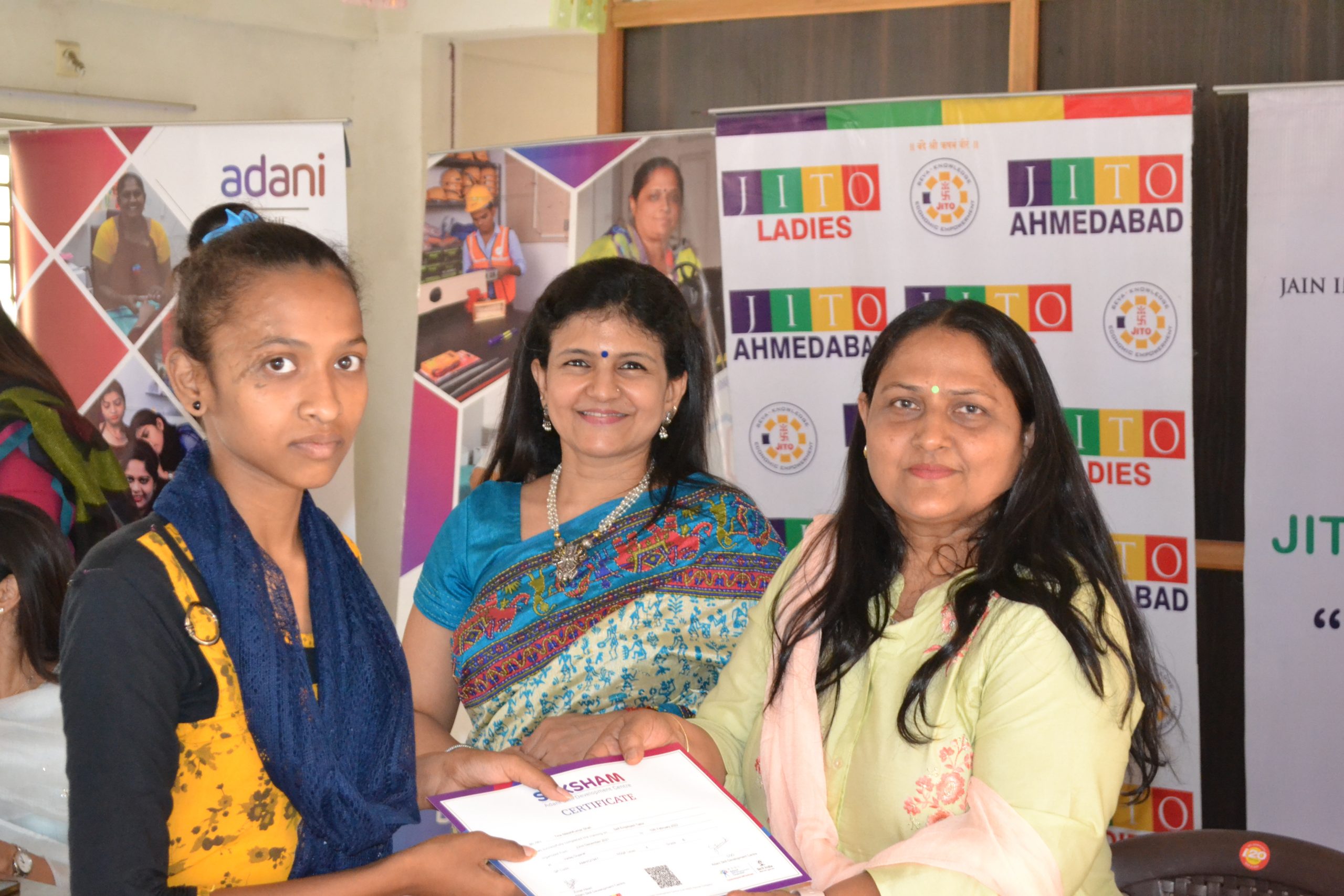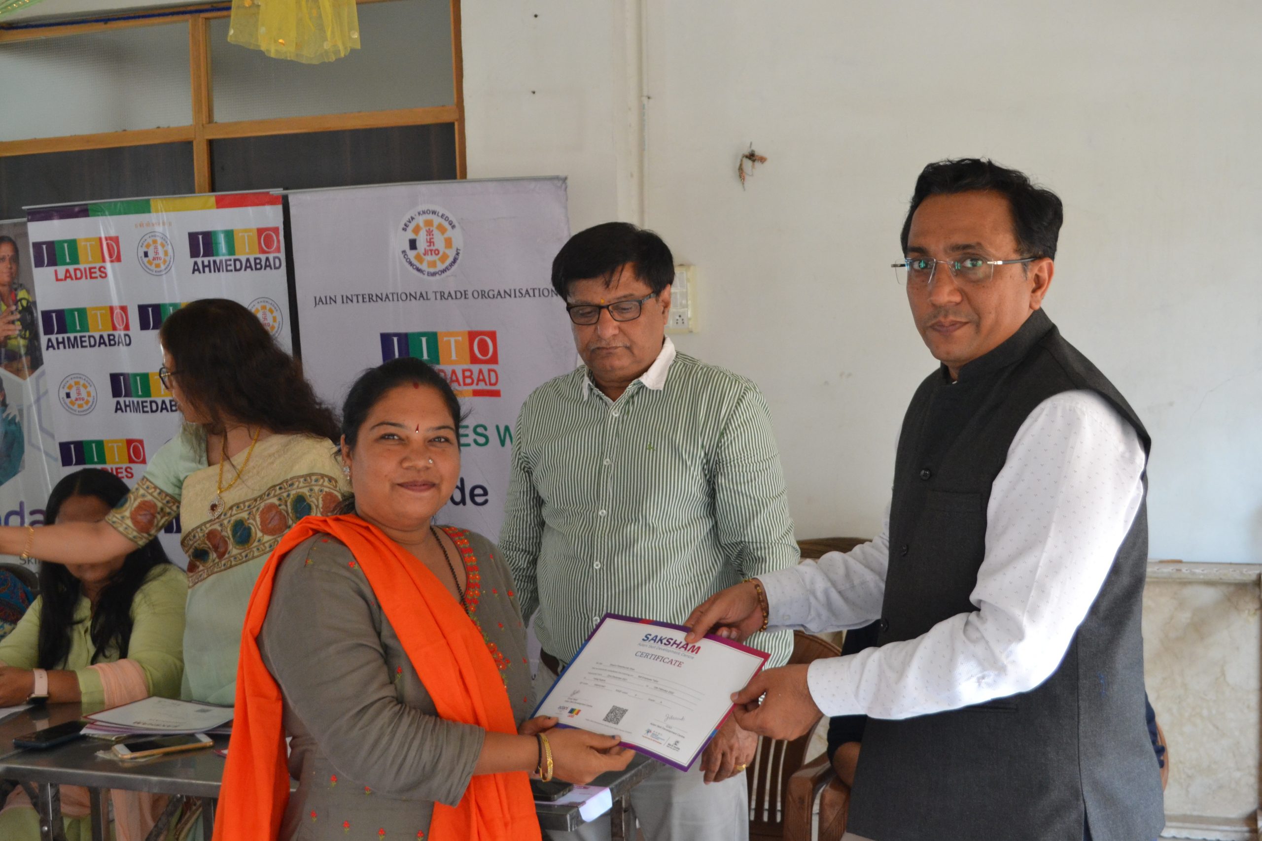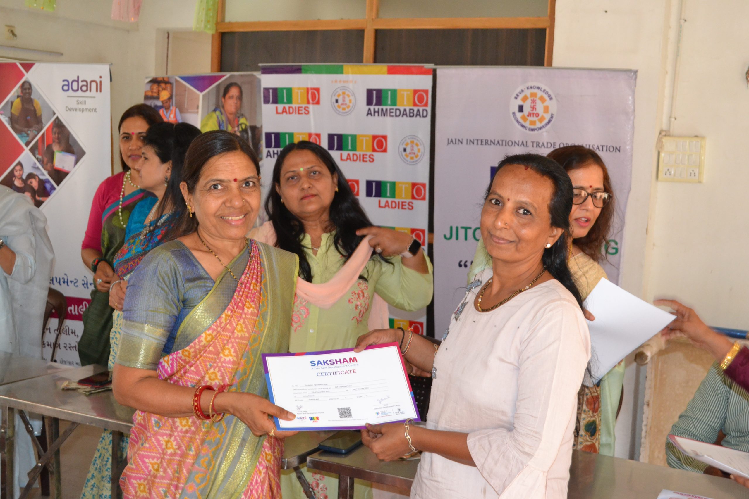 Another feather in our cap as we have started another centre for ladies Tailoring class under the Project Roshni at Krishna nagar , Naroda .The inauguration ceremony was held on 25th June at the center itself. Smt Liza shah, Smt Shweta Hundia, Smt Rajeshwari Jain & Shri Bhadreshbhai from JITO were there to motivate and inspire the ladies . A well known fashion designer Ms Deepali Jahanara also gave her suggestions and tips to new students.