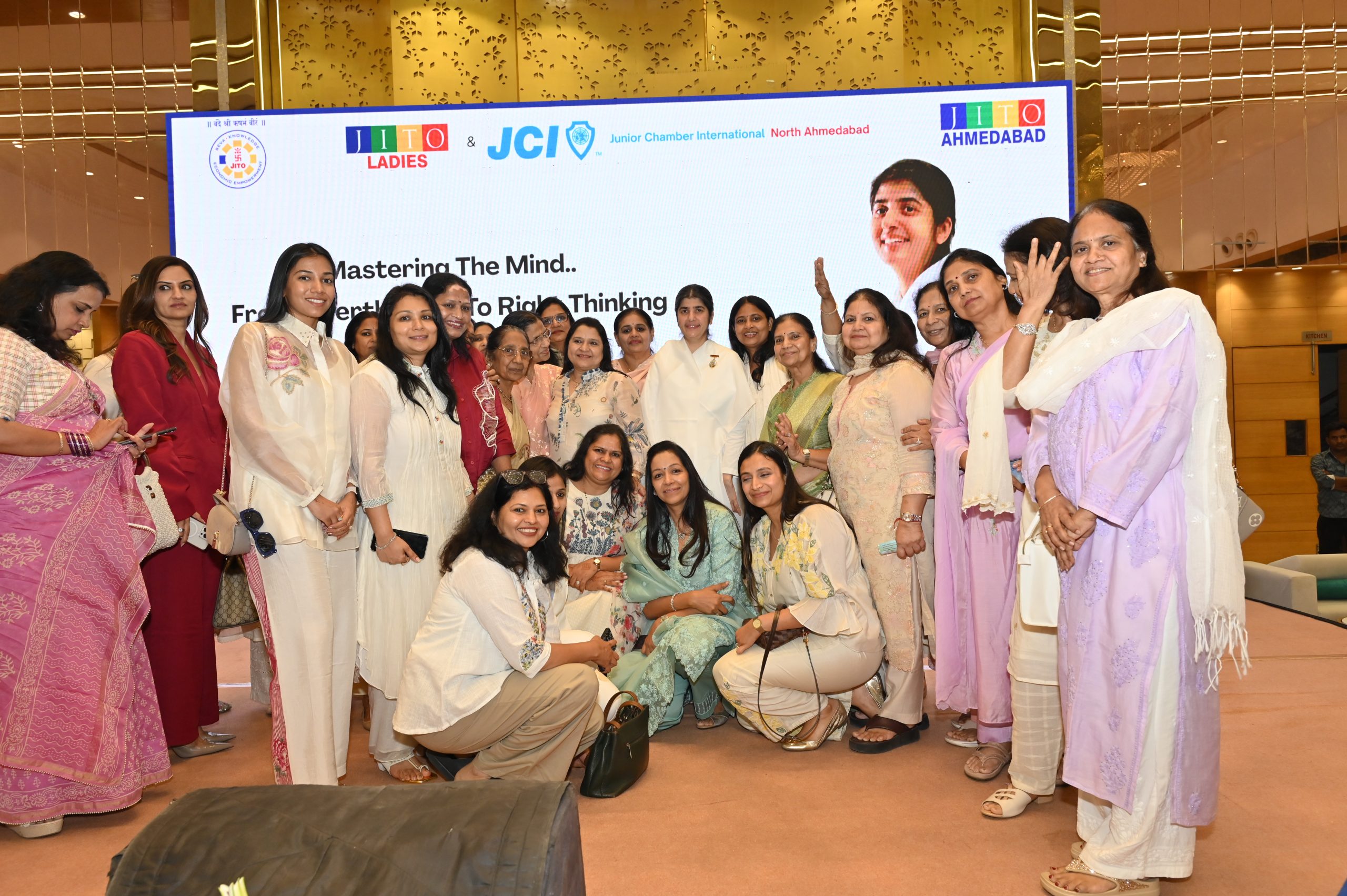 The Mastering the Mind – From Overthinking to Right Thinking session organized by JITO Ladies Wing Ahmedabad, in collaboration with JCI North Ahmedabad, unfolded as a truly enriching and reflective morning. Held under the leadership of Chairperson Anuja Shah, with the support of Chairman Rajeevbhai Chhajer, the event brought 100 members together an inspiring gathering eager to explore the power of the mind.