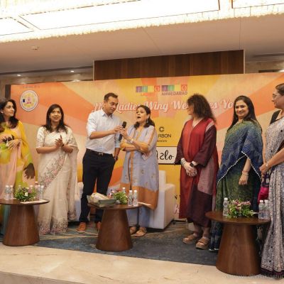 The event also featured an engaging panel discussion moderated by Mrs. Sushma Kankaria, with an esteemed lineup of speakers – Dr. Bhaviniben Shah (Director, Supratech), Mrs. Radhikaben Shah (Entrepreneur, Pankh – Day Care Centre), Mrs. Manisha Lavkumar (Senior Advocate), and Mrs. Nayanaji Soparkar (Artist and Sculptor). Each shared their personal journeys, challenges, and insights, offering a deeply motivational and enriching experience for all.