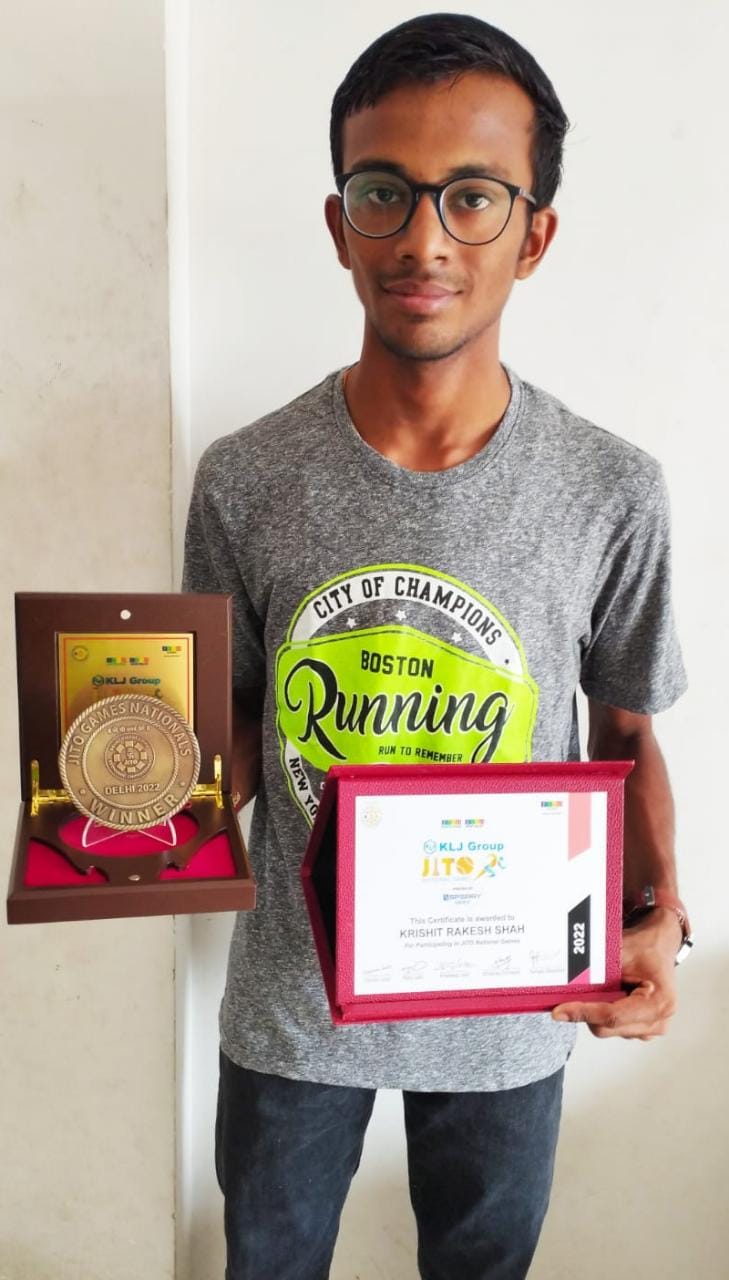 JITO National Games, Greater Noida -Hosted by JITO Delhi31 players from JITO Ahmedabad had participated and has Won 17 medals1.6 Gold medals each with cash prize Rs. 10,000/-2.4 Silver medals each with cash prize Rs. 5,000/-3.7 Bronze medalsJITO Ahmedabad Rocks!Congratulations to all the players and all those who have motivated them to show their best performance!GameCategoryWinner NameMedalATHLETICSGirls Under 14100 MtrHardi G ShethGOLDBoys Under 16100 MtrYash ShahSILVERBoys Under 19100 MtrKrishit ShahGOLDBoys Under 14200 MtrAadi Kamlesh BhandariSILVERGirls Under 14200 MtrPahel Devang MehtaGOLDBADMINTONGirls Under 15DoublesSiddhi Jain & Prisha ShahGOLDGirls Under 15SinglesSiddhi JainBRONZECHESSGirls Under 20Vrushti Binoy ShahBRONZELAWN TennisGirl Under 16SinglesPrisha VoraBRONZEBoys Under 14SinglesHem ShahGOLDSWIMMINGBoys 12-14 Year50 M Back StrokeRishin ShahSILVERBoys 15-17 Year50 M Back StrokeRiyan ShahBRONZEBoys 12-14 Year50 M Butter FlyRishin ShahSILVERBoys 15-17 Year50 M Butter FlyRiyan ShahBRONZEBoys 12-14 Year50 M BreastStrokeRishin ShahBRONZEBoys 12-14 Year50 M Free StyleRishin ShahGOLDTABLE TENNISBoys Under 17SinglesPiyush R BaidBRONZE