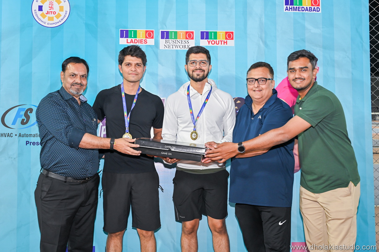 We are delighted to share that the JITO Pickleball Tournament, held on 7th February 2025 at Ballers, Sindhu bhavan Road, was a resounding success.The tournament featured three categories based on age groups: 18–36 years, 36–50 years and 50+ years. Within each category, participants competed in Men’s Singles & Doubles, Women’s Singles & Doubles and Mixed Doubles.With an enthusiastic turnout of 90 members from JITO, JBN, JITO Ladies and the Youth Wing, the tournament was played in the true spirit of sportsmanship. The matches, held from 6:00 PM to 11:30 PM, were filled with energy, excitement, and competitive spirit.A heartfelt thank you to Aakash Kamdar, Rushabh and Aayush for their dedicated efforts in organizing this fantastic event. Their meticulous planning and execution ensured a seamless and enjoyable experience for all participants.We also extend our gratitude to Chairman Shri Rushabhbhai Patel, Chief Secretary Shri Manishbhai Shah, Treasurer Shri Shitalbhai Shah, Chief Secretary, Gujarat Zone, Shri Alpesh Dholakia and other esteemed dignitaries for their presence and unwavering support to the players.Winners and runners-up were felicitated with Paddle Racquets, medals and YABA gift vouchers as a token of appreciation for their outstanding performances.A special thank you to M/s. Future Solutions for their generous sponsorship, which played a vital role in making this event a grand success.We are pleased to share some highlights and photographs from this memorable tournamenthttps://youtube.com/shorts/aoT2gVLQfbM?feature=shareThank you all for your participation and support.