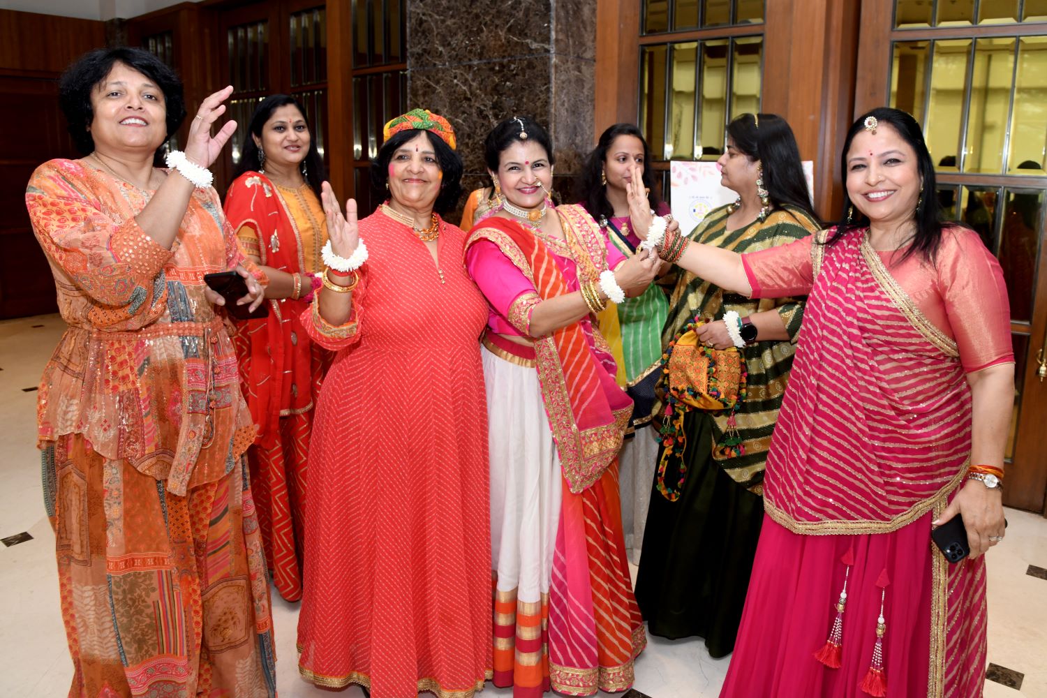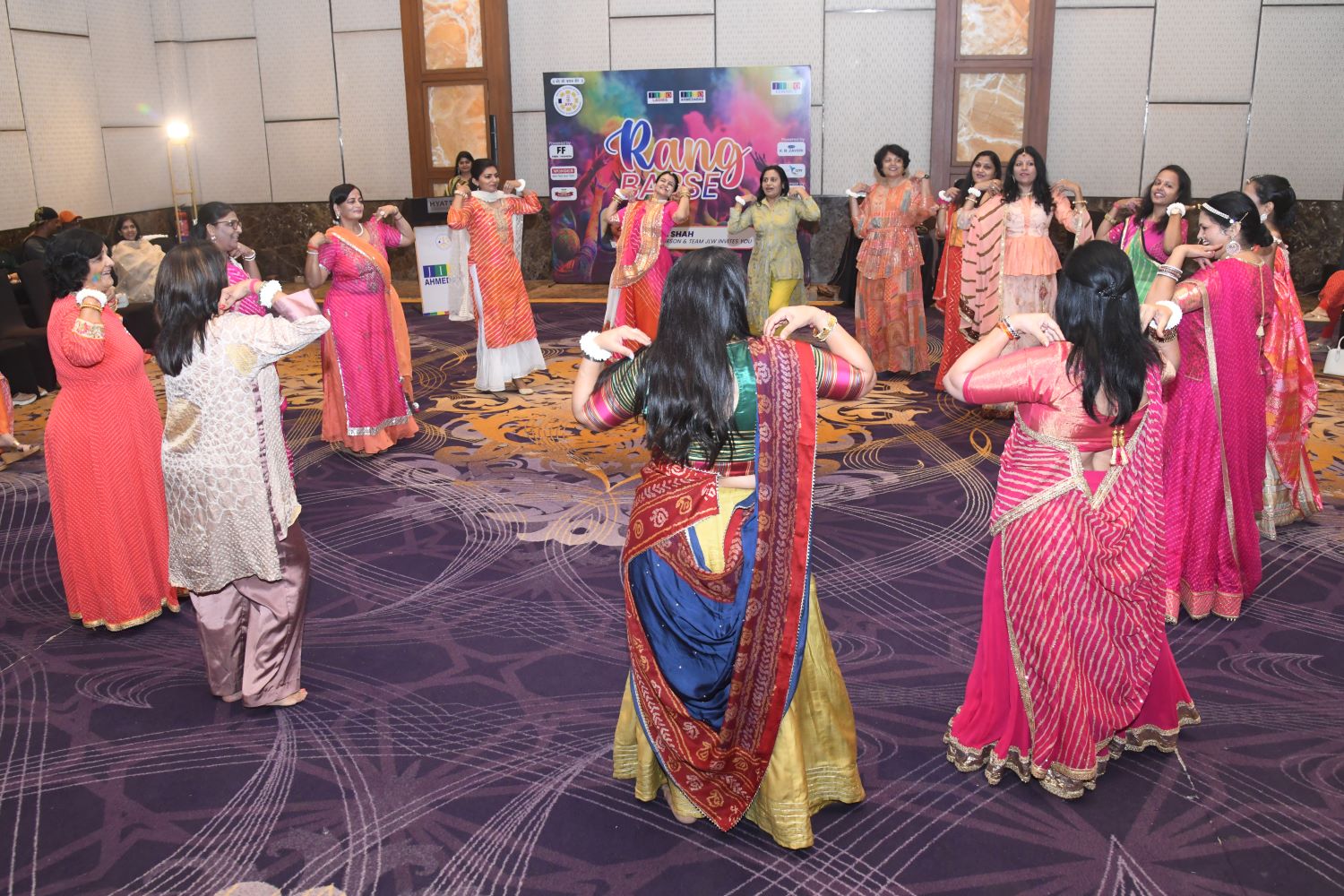 On March 21, 2024, the Holi celebration took place at Hyatt Ahmedabad, Vastrapur. “Rang Barse” transcended beyond mere festivity; it served as a platform for showcasing the diverse talents of our JLW members.Four members were given the opportunity to exhibit and sell their products, providing budding women entrepreneurs with visibility among the 225-plus attendees. Shopping, fun activities, and delectable delicacies enriched the experience for all.Every attendee received a warm welcome with Dhol nagara, shagun adorned with a vermilion red dot, and artificial flower bracelets. The customary “Holi ka muh mitha” featured natural, healthy sweets.A group of seven members recited the Navkar Mantra and Stuti. Additionally, a special instructor, accompanied by two assistants, imparted traditional Rajasthani Ghoomar dance steps to the attendees.This event was a resounding success, marked by several key takeaways:1.Providing stalls for the four members bolstered their businesses by expanding their customer base.2.Members took charge of event decorations, showcasing their creative prowess.3.Participating in recitations and stage appearances empowered members to overcome stage fright.4.Members were encouraged to assume roles as convenors and co-convenors, fostering confidence and leadership skills.5.Above all, the event fostered camaraderie among members, facilitating interactions and strengthening bonds.6.The afternoon was a delightful blend of celebration, entrepreneurship, skill development, and community building.