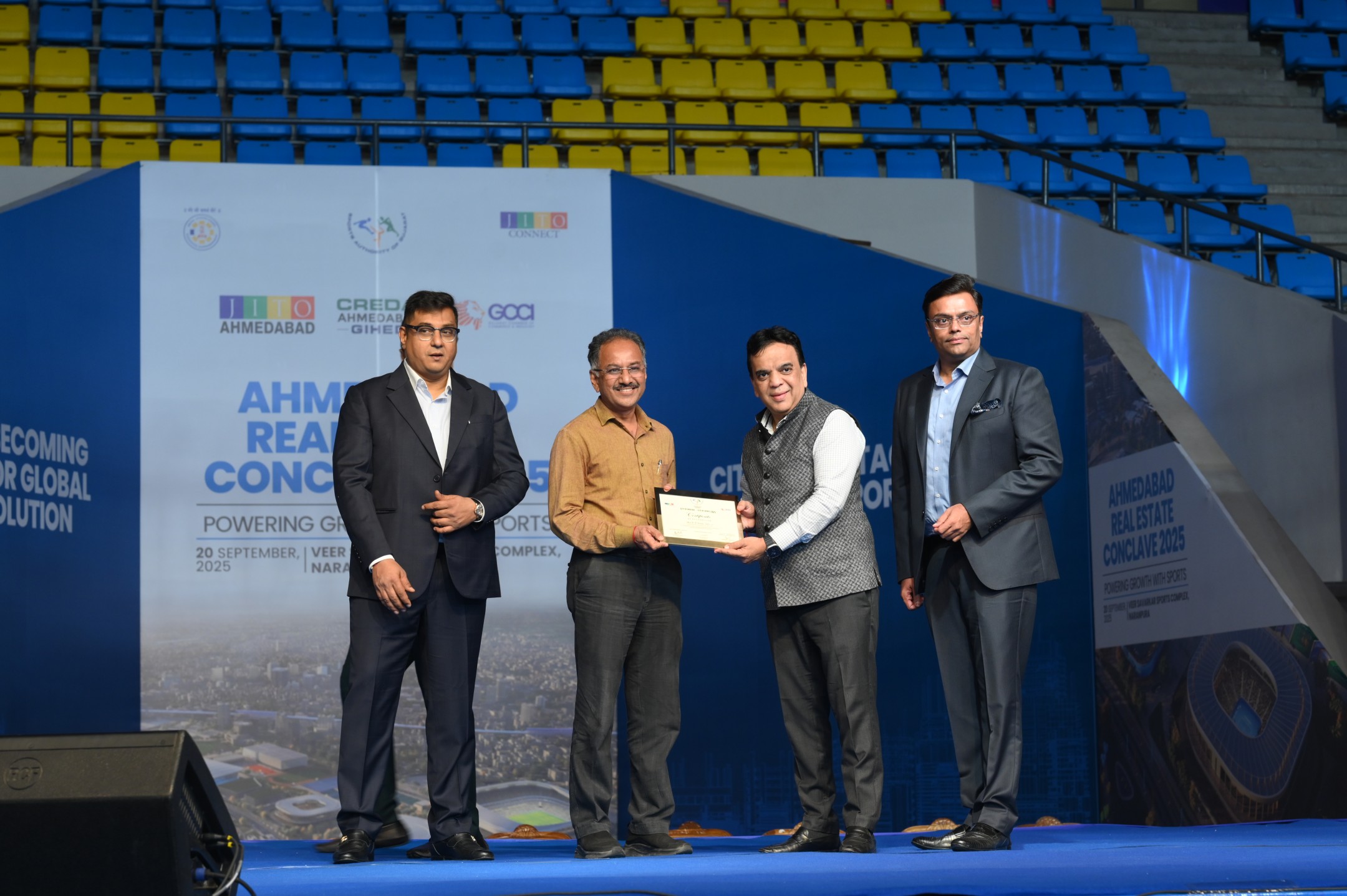 The Real Estate Conclave, jointly organized by JITO Ahmedabad Chapter, GCCI & CREDAI Ahmedabad, was successfully held on 20th September 2025 at the Veer Savarkar Sports Enclave, Naranpura, themed “Ahmedabad – From World Heritage City to City of World Sports.” The event drew leading developers, investors, policymakers and thought leaders from the real estate and urban development sectors. Jito Apex Vice Chairman Shri Himanshu Shah graced the event with his presence and also acknowledged the Chairman Shri Rushabh Patel and the keynote speakers for organizing this event.