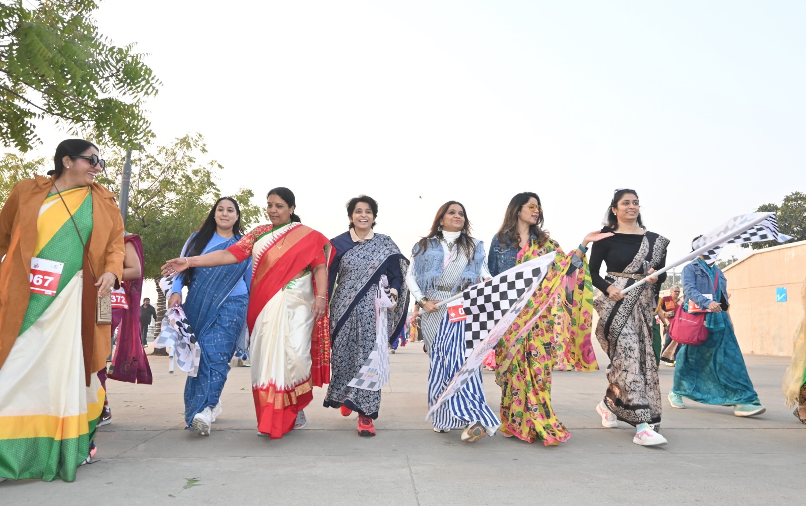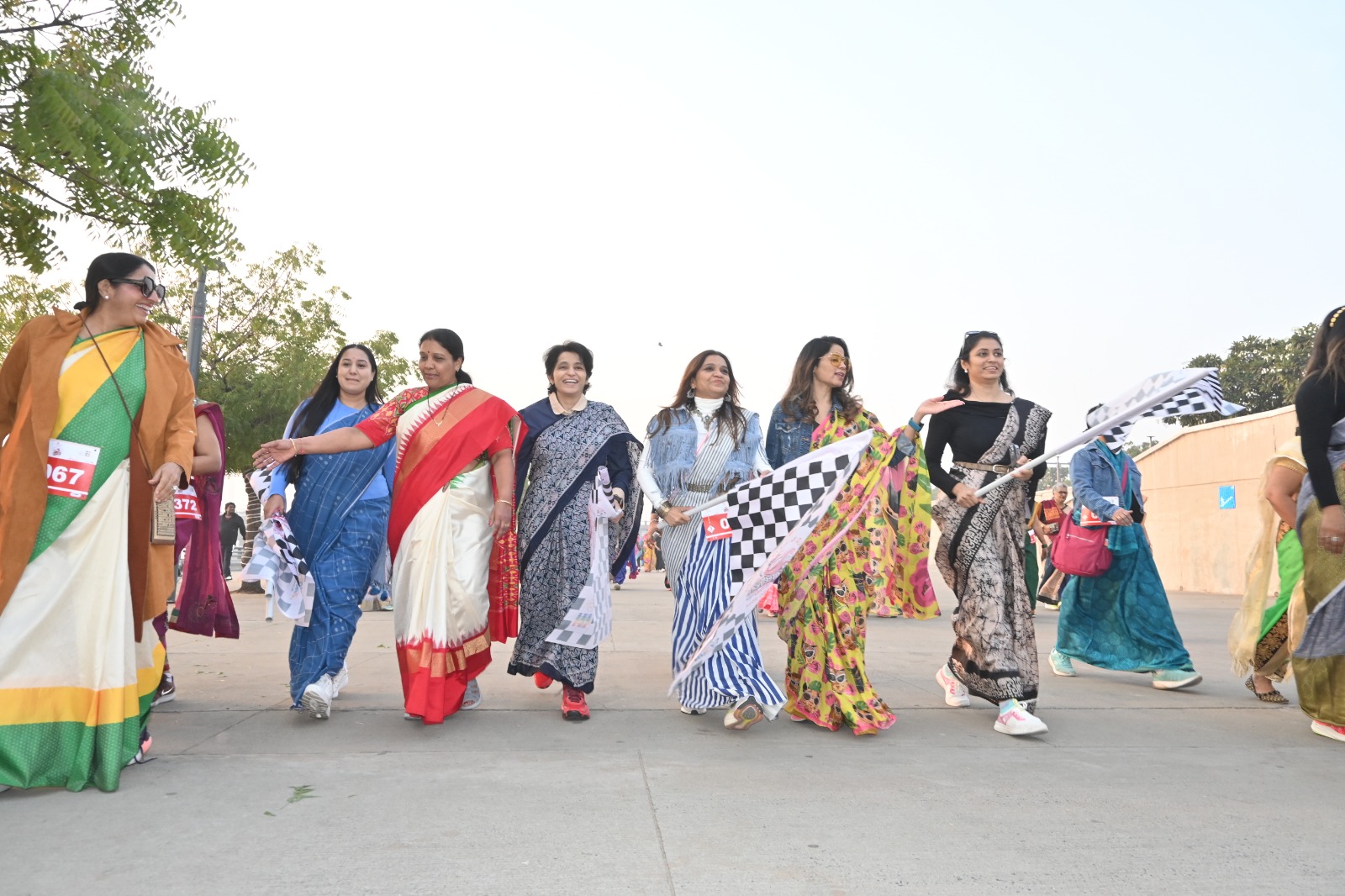 The Sareethon saw enthusiastic participation from over 500 women, who walked gracefully adorned in sarees, showcasing the timeless charm of India’s traditional attire. The event was a vibrant celebration of heritage and health, filled with enthusiasm and energy.