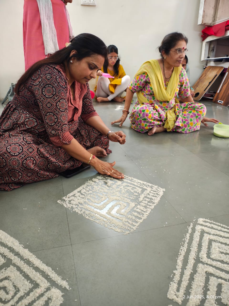 Jito Ahmedabad Ladies Wing successfully conducted a Skill Development Program from 1st June to 31st August 2025, aimed at empowering our Sadharmik ladies towards Atmanirbharta (self-reliance). A total of fifty women participated in the program, choosing courses such as Stitching, Rangoli, Computer Skills, Gahuli Art, and Mehndi. The fees were generously sponsored by donors from the Ladies Wing, ensuring equal access for all.