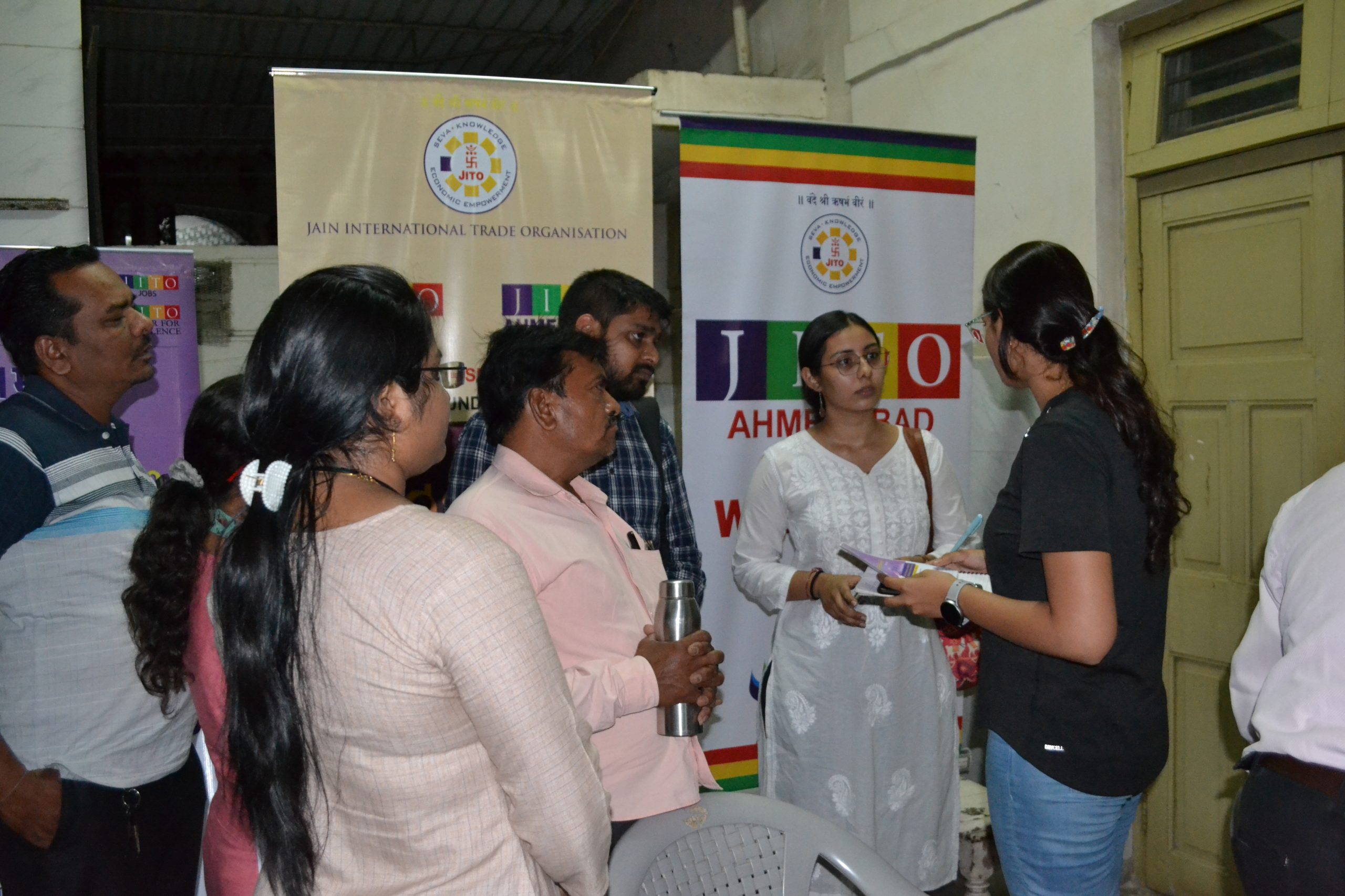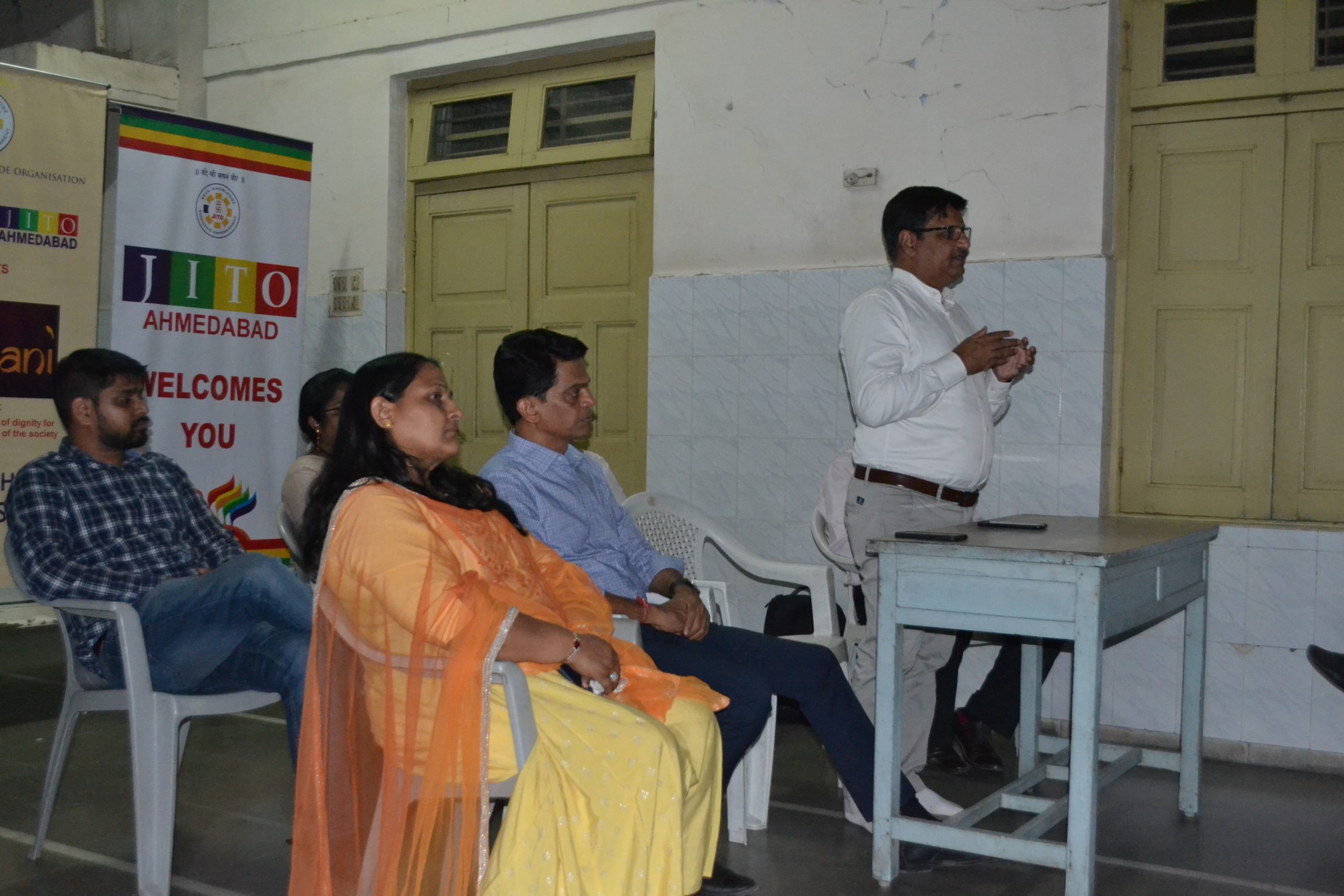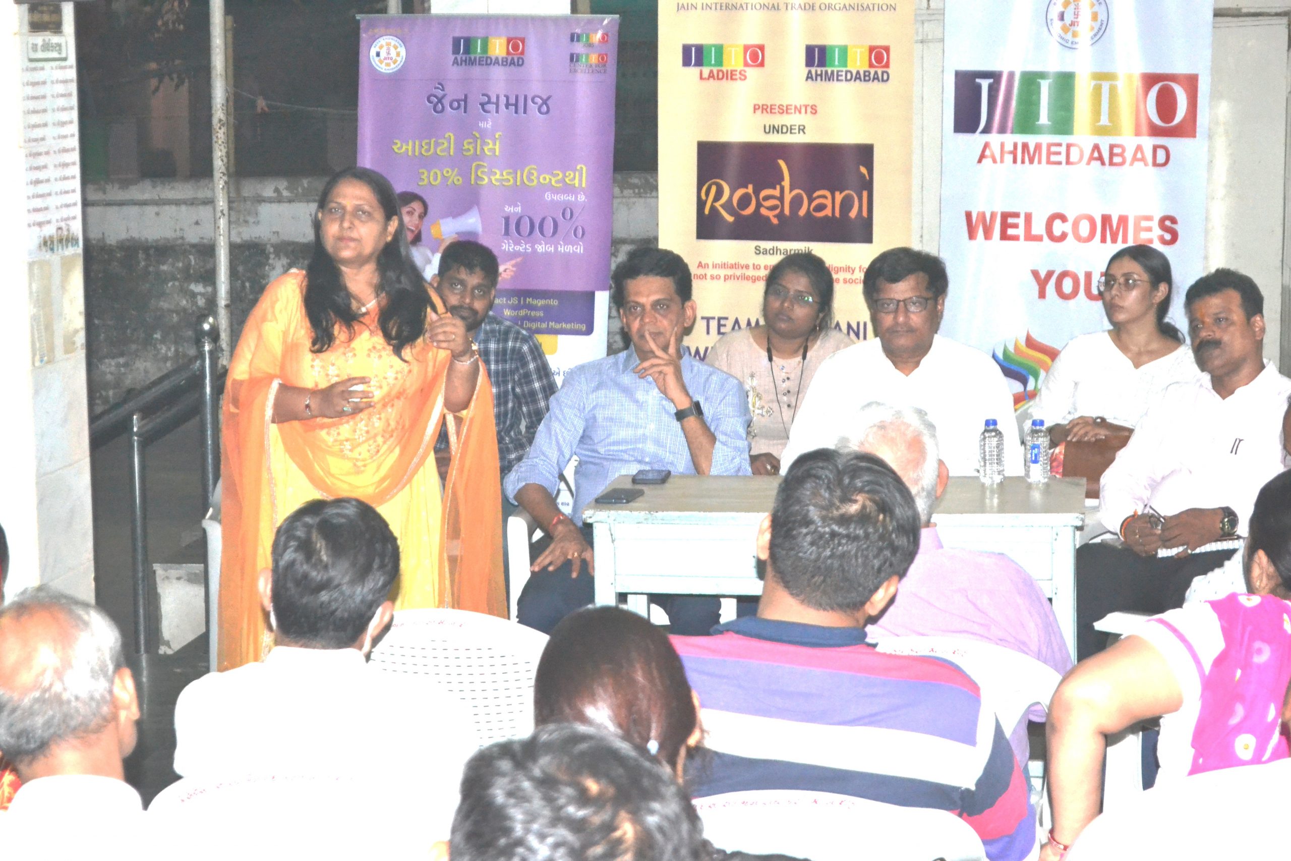 ShriBhadreshbhai, Convener of JITO Ahmedabad “Centre for Excellence”, ShriNiravbhai, Convener of Gujarat Zone, Mrs.Falguniben, Convener of JITO Ladies Wing-RoshniCommittee and ShriSanjaybhaiof Adani Skill Development Centre andElsnerTechnology team were present to provide information.Shreshthisof JainSanghsfromSaraspurandBapunagarareas and about 50 Jain people were present and were given information about skill development and job opportunity. An open Q&Asession was also held after the meeting.