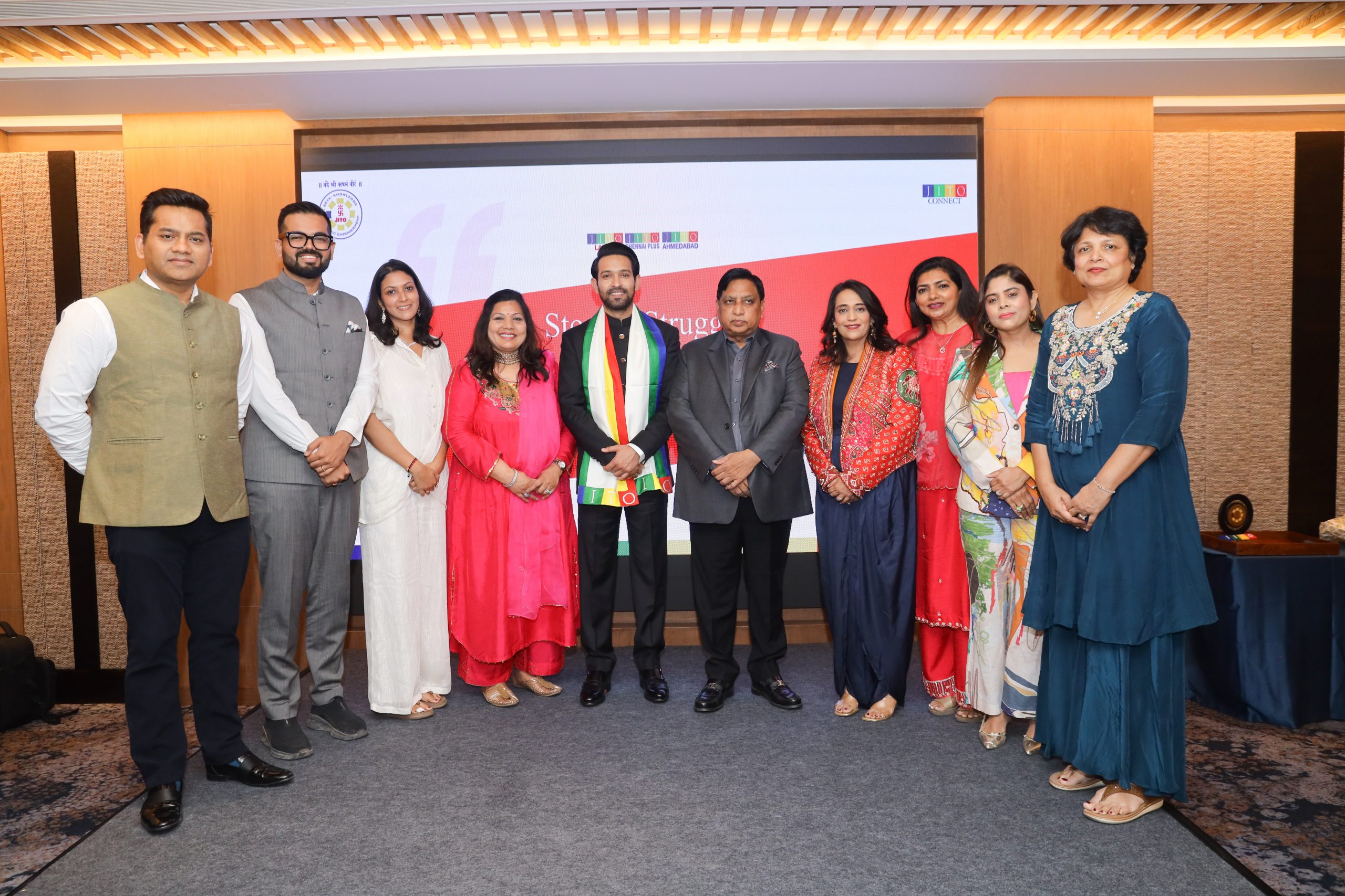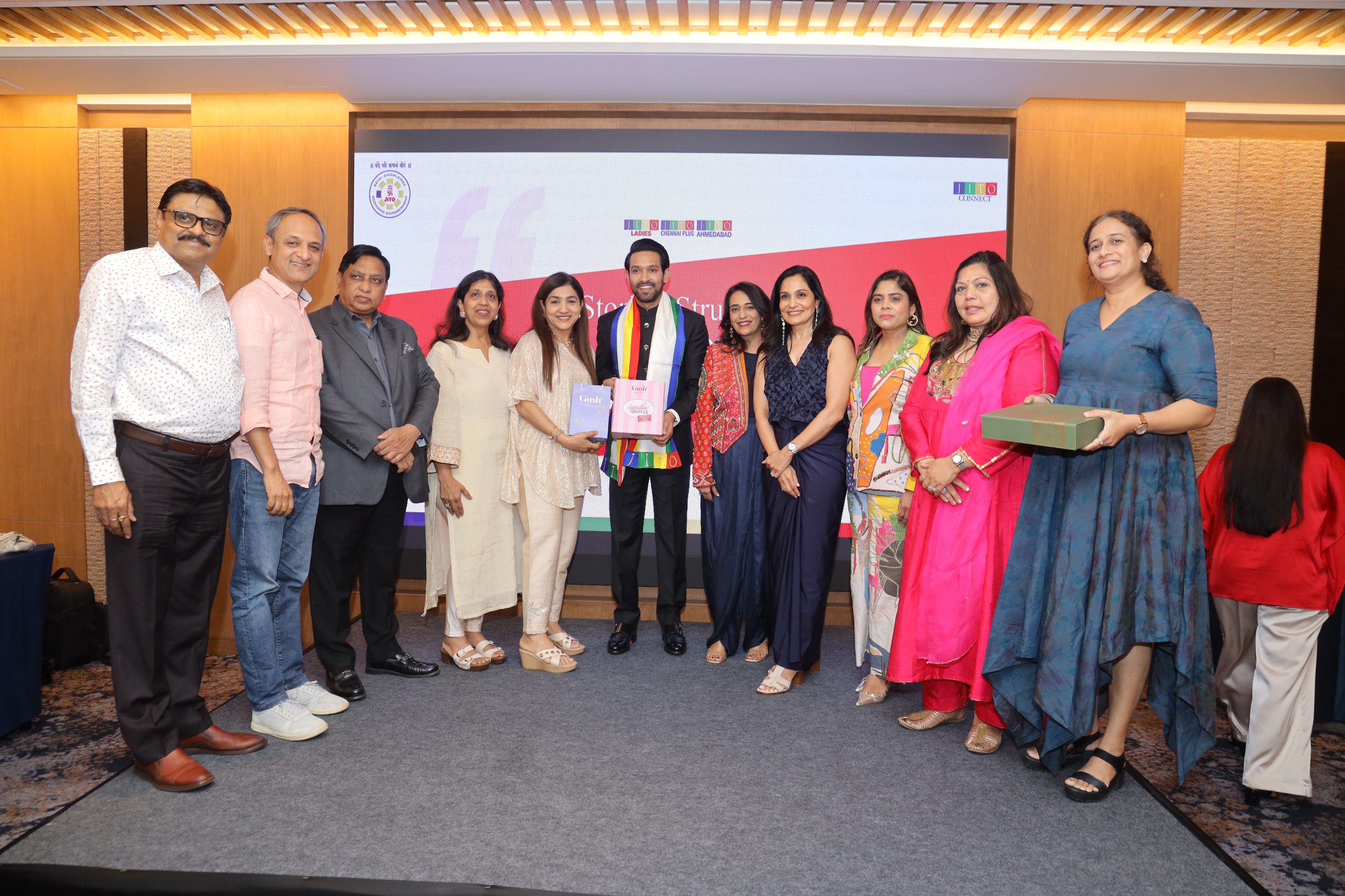 The JITO Ladies Wing Ahmedabad, under the leadership of Chairperson Smt. Anuja Shah, in association with JITO Ladies Wing Chennai Plus, successfully hosted an inspiring and engaging session titled “Stories, Struggle & Stardom” on 15th April 2026 at Hyatt Regency, Ahmedabad.