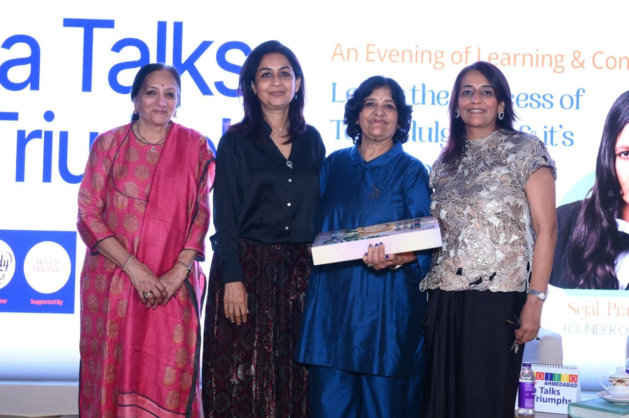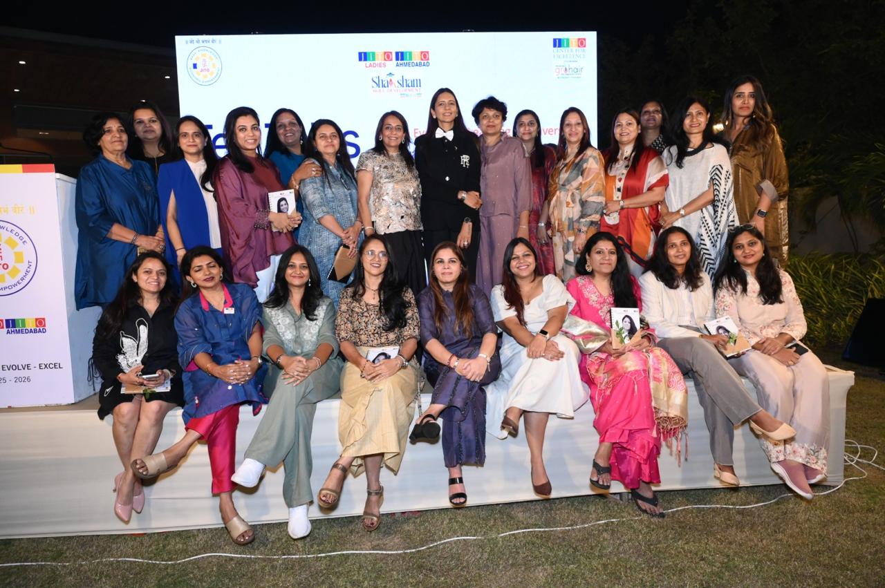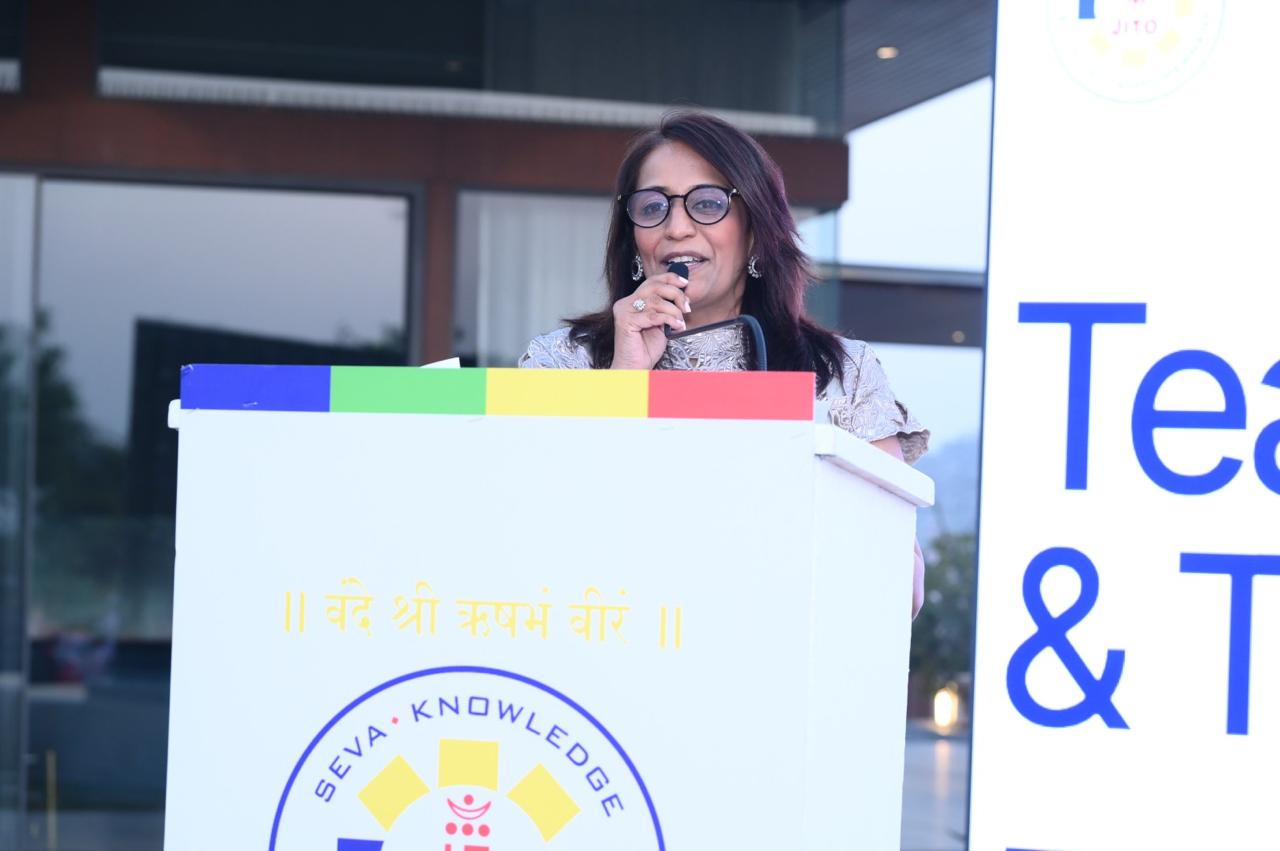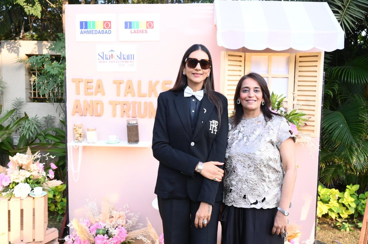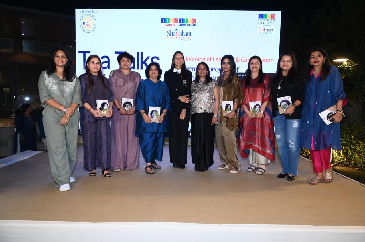 Jito ladies Wing Ahmedabad hosted Tea Talks & Triumphs, held on 18 November 2025 under the leadership of Chairperson Anuja shah and Chief Secretary Ami Hapani at the beautiful residence of Ladies Wing member Beena Shah. It was a truly soul-soothing evening that brought together around 250 members and special invitees. The serene “Pinterest-in-real-life” venue was elevated by elegant décor and a high-energy atmosphere, made even more special with the gracious presence of Chapter Chairman Shri Rajeev Chhajer and Sr. Vice Chairman Shri Vaibhav Shah and many other dignitaries. Apex JLW Saksham Convener Smt. Sangita Chhajer and Zone JLW Convener Smt. Sangita Shah, Smt. Radhika Shah, Smt. Preeti Patel and JLW Ahmedabad Past Chairpersons Smt. Sushma Kankaria, Smt. Liza Shah and Smt. Shweta Hundia whose participation inspired all . The highlight of the evening was the talk by Sejal Pravin Purohit, a first-generation entrepreneur and founder of Seven Spring, renowned for crafting twelve varieties of infused teas with hand-picked herbs, spices and flowers. Sejal shared her entrepreneurial journey with honesty and grace, delivering a visually engaging keynote that truly resonated with everyone present. The session’s seamless flow was ensured by skilful moderation from Ahmedabad Ladies Wing Chairperson Anuja Shah, whose insightful, well-crafted questions deepened the dialogue’s relevance and impact.