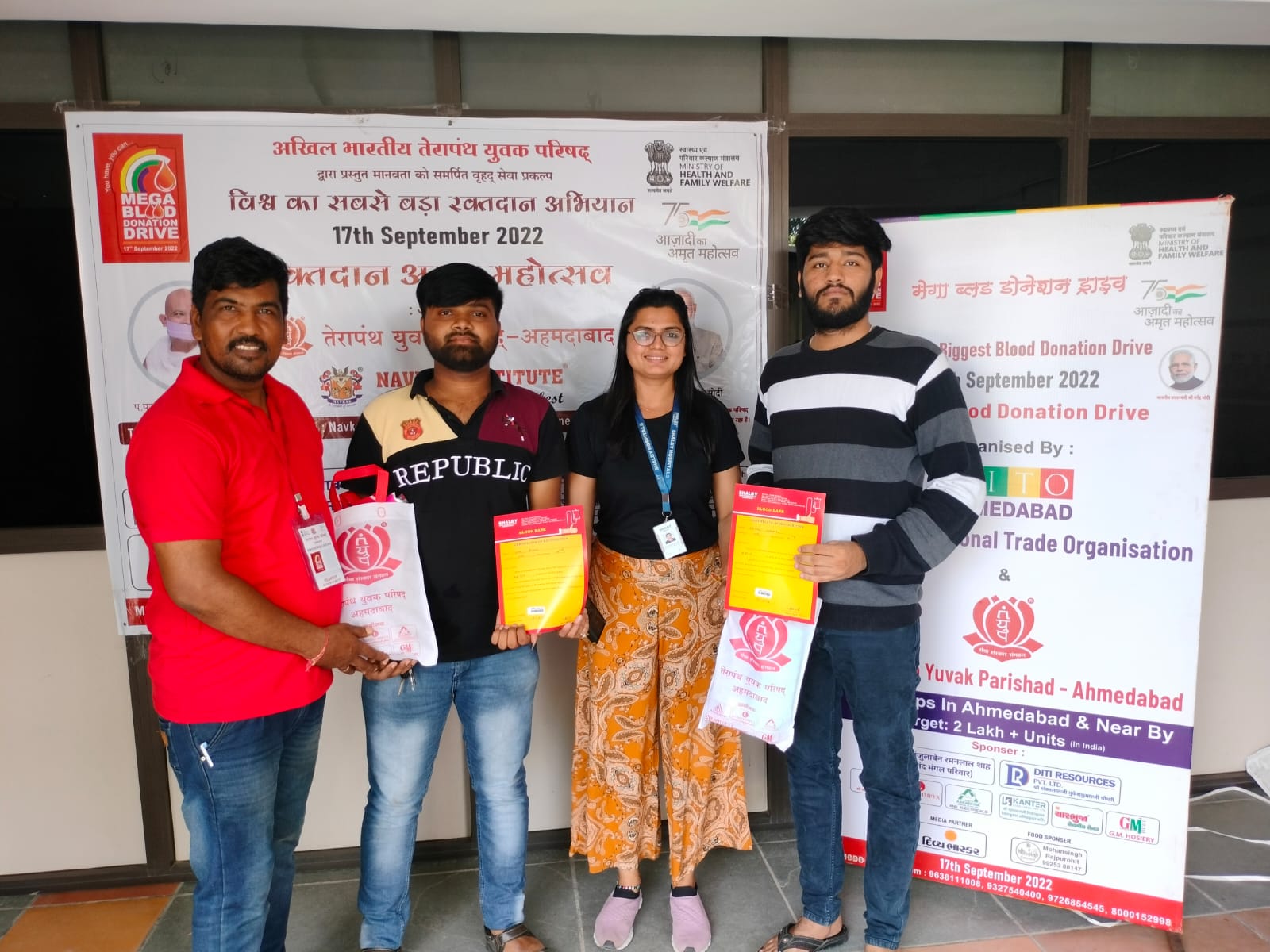 A joint initiative of Terapanth Youth Council Ahmedabad and JITO Ahmedabad organized a mega blood donation camp at more than 60 places in Ahmedabad and nearby areas on Saturday, September 17 with the support of various organizations.