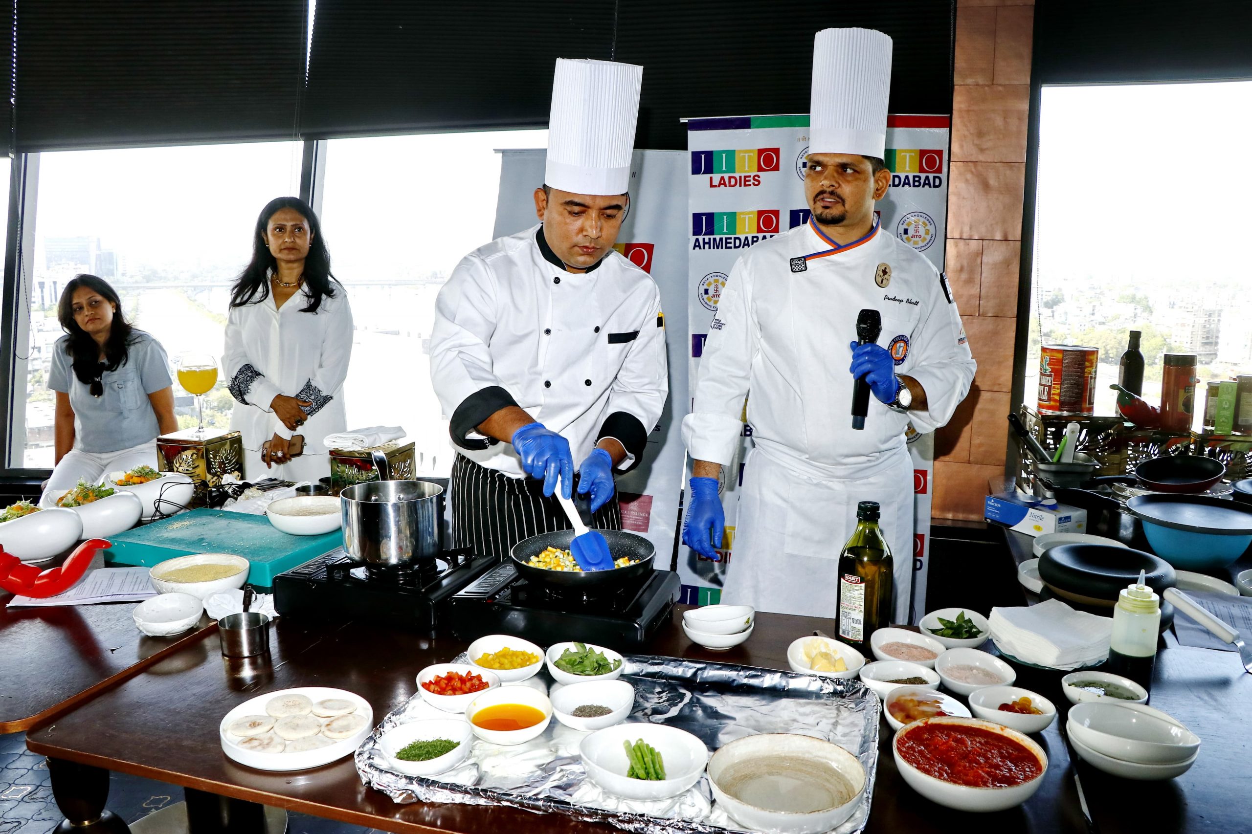 The JITO Ladies Wing Ahmedabad, under the dynamic leadership of Chairperson Sharmila Shah, organized The Culinary Soirée on 3rd May 2025 at Patang Re-Evolve, Ahmedabad. Drawing an enthusiastic gathering of 80 members, the event was a vibrant celebration of health-conscious and Jain-friendly gourmet experiences. The afternoon unfolded with an engaging culinary session led by Chef Pradeep Bhatt, who demonstrated a series of refreshing, easy-to-make recipes tailored for the summer season and aligned with Jain dietary values. The curated menu featured a delightful array of dishes, including Kesariya Shikanji Sparkler, Mango & Kokum Fattoush, Couscous with Ratatouille, Almond Rose Paneer Kofta in Saffron Gravy, and a decadent Pista & Rose Ghewar with Coconut Rabdi.Participants gained hands-on exposure to seasonal and nutritious Jain cuisine, while the relaxed and elegant setting fostered camaraderie and sisterhood among the attendees. The event not only strengthened the bonds within the community but also reinforced the JITO Ladies Wing’s mission of enrichment through lifestyle and learning. Members left inspired to incorporate healthy and creative cooking techniques into their daily lives. The event concluded with heartfelt gratitude extended to all members for their enthusiastic participation and to Sharmila Shah for her inspiring leadership, which continues to unite and motivate the women of JITO Ahmedabad.
