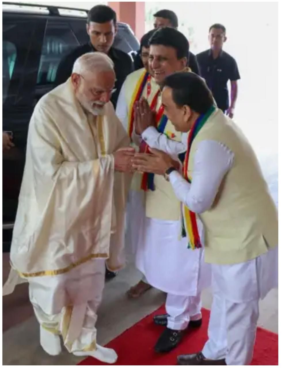 Specialized committees managed VIP arrangements, food, prabhavna, parking, transport, medical and emergency services, security, kalash, press & media, decoration and kitchen. All required legal permissions were secured in advance. Security arrangements included fire fighters, cyber security and volunteers.